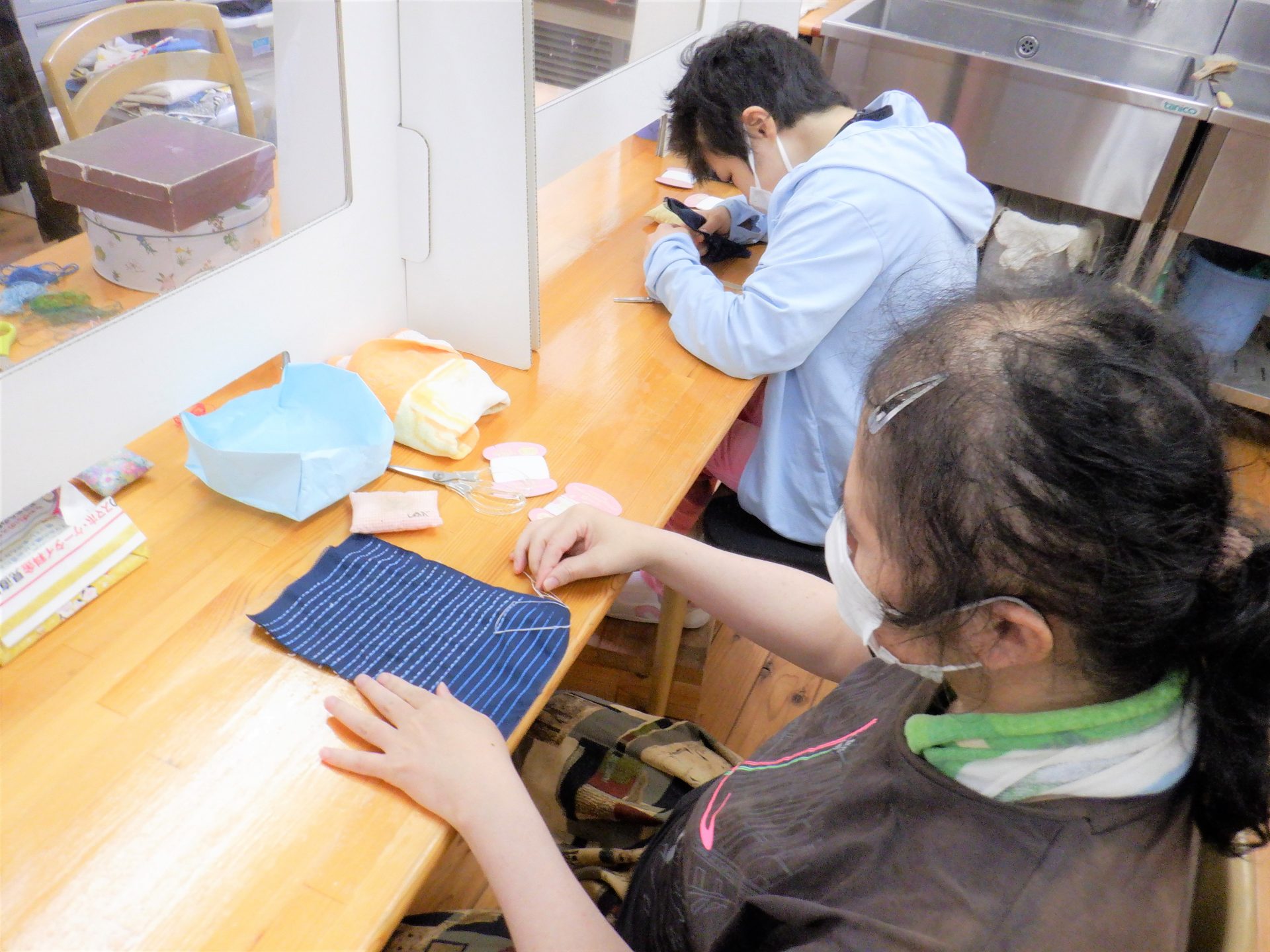 加工班で石けん注文入ったなや~紐切りしねまね~!