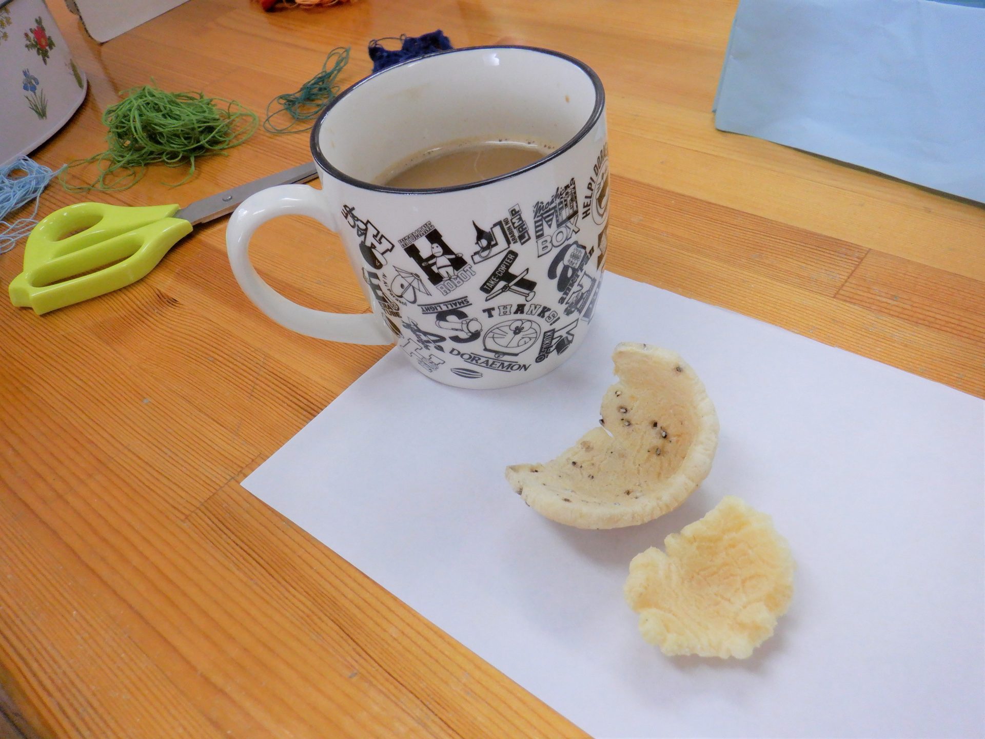 - はい、コーヒーと堅餅せんべい~