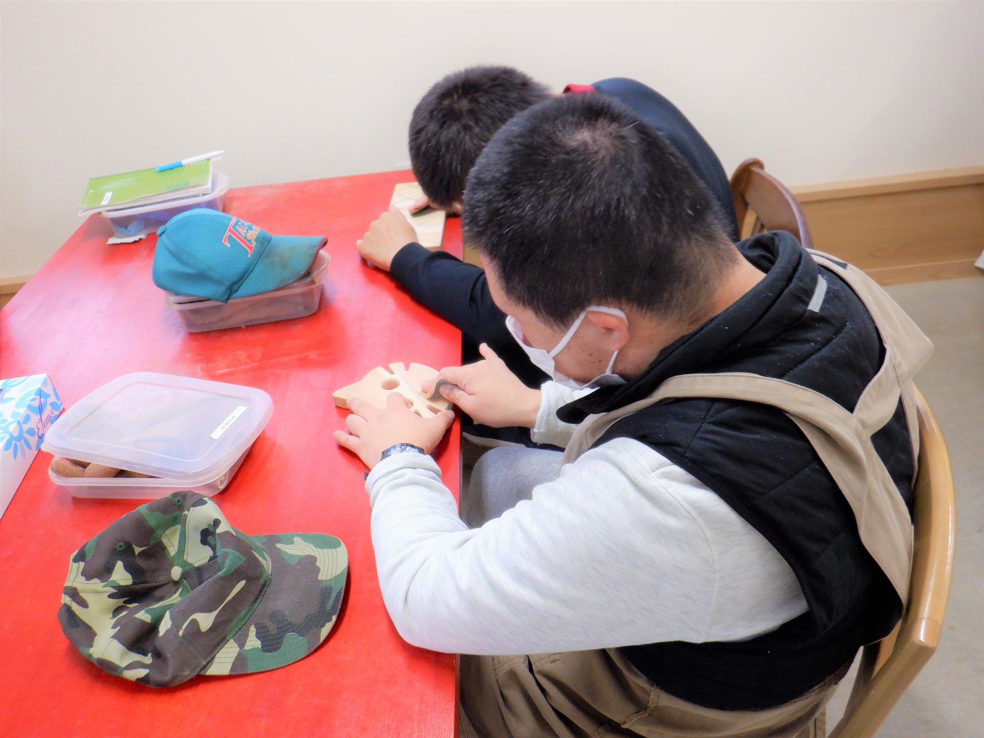 さあさあ、木工棟は…
