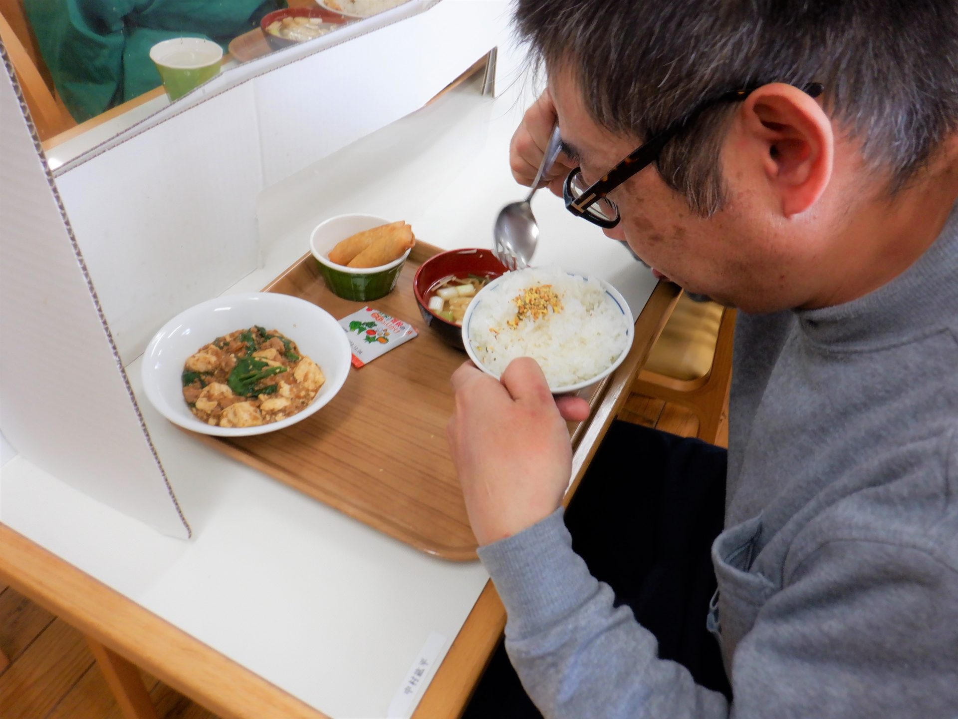 さくらが丘特製ほうれん草たっぷりマーボーですよ~( *´艸`)