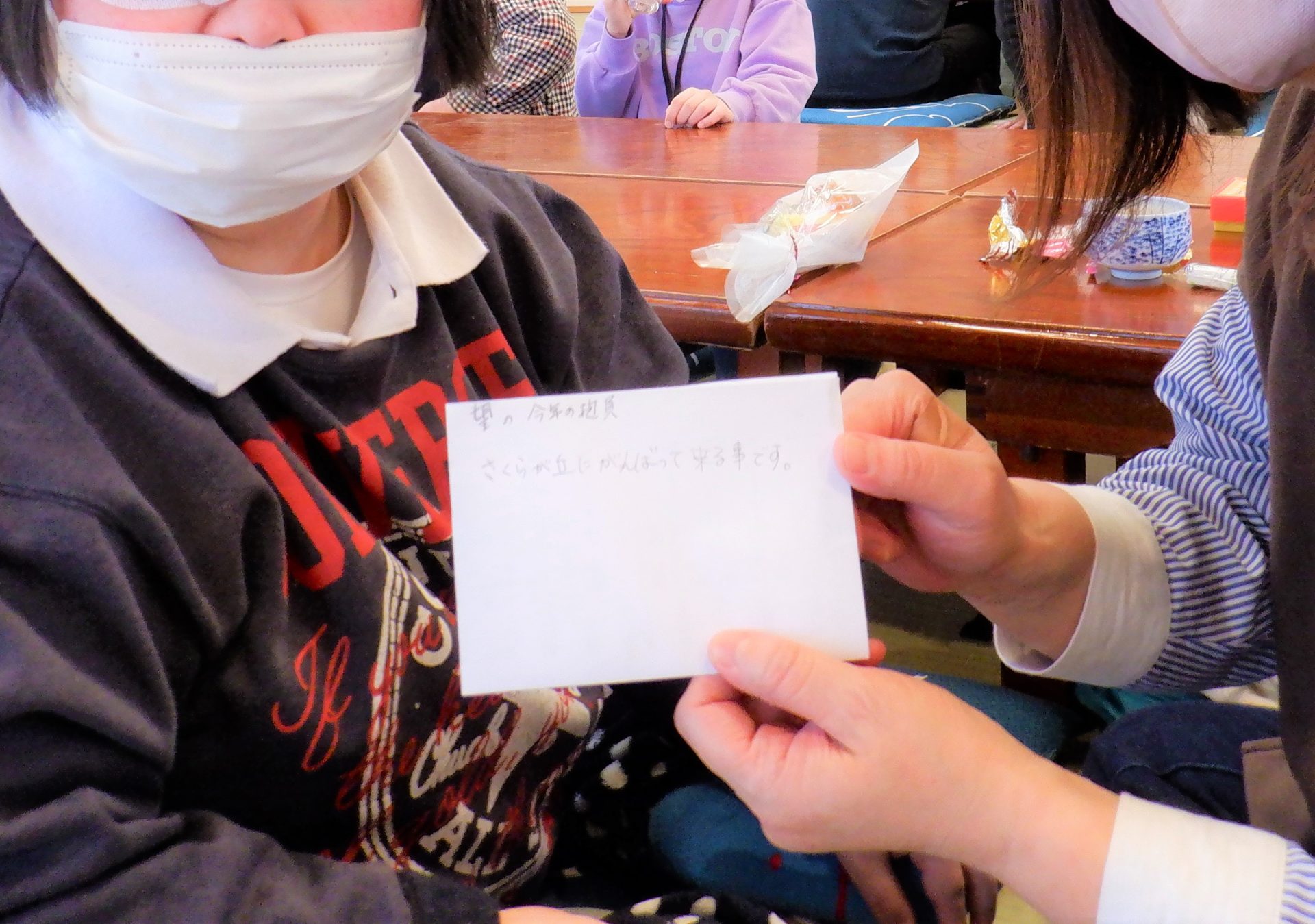 裁縫班「お仕事がんばります。休まないで毎日さくらが丘に来れるようにがんばります。」