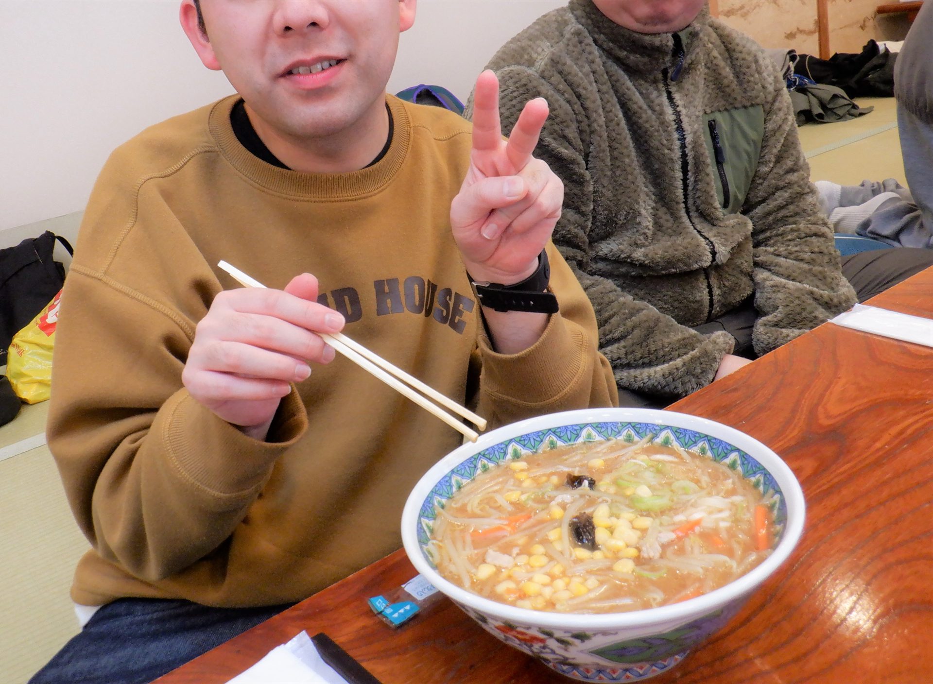 - 野菜たっぷりのラーメンでいいね!