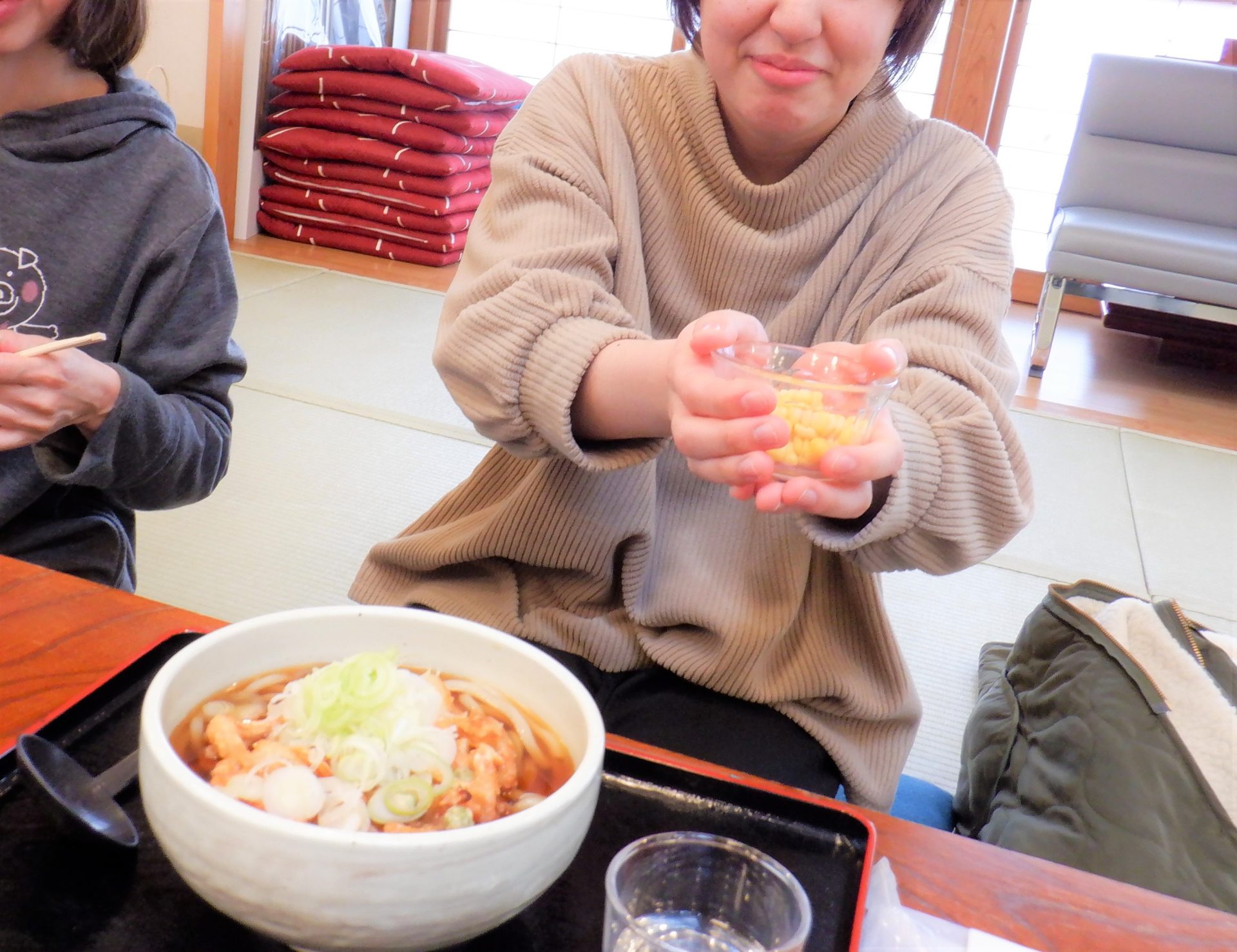 - コーン入りの肉うどん楽しみだね!