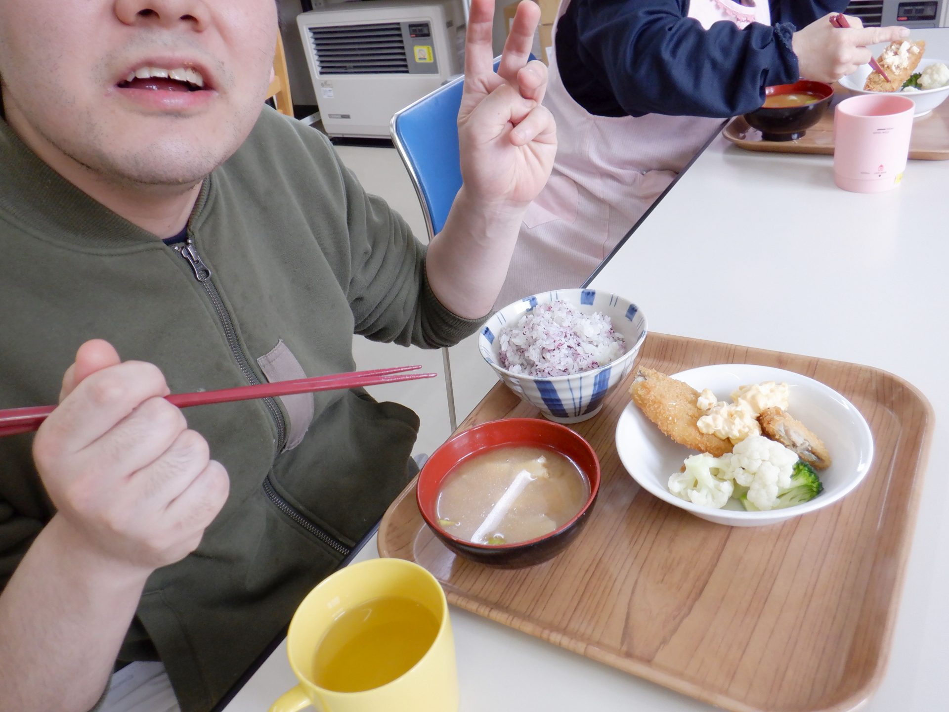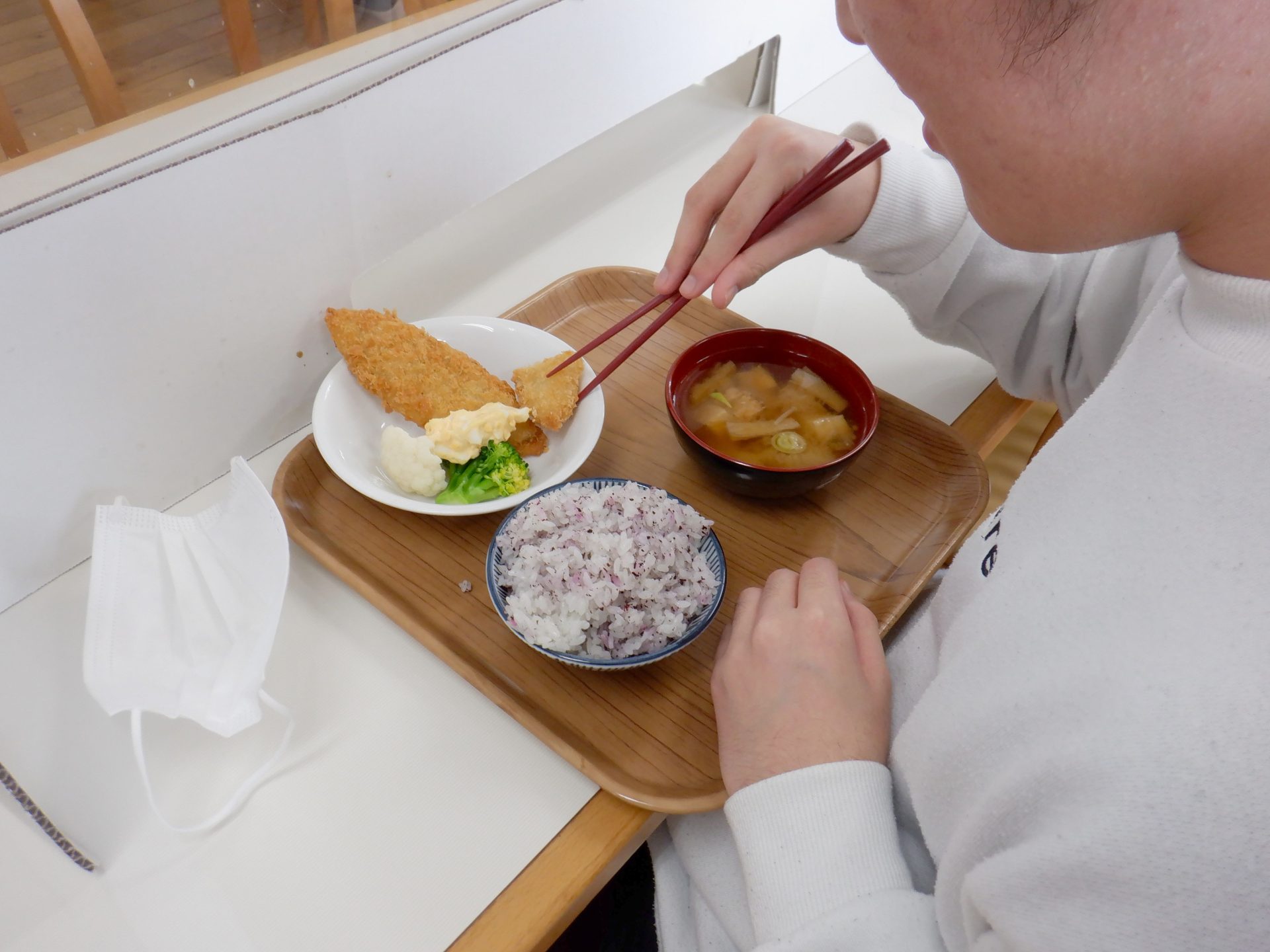 給食できましたよ~!魚のタルタルソースがけだ~!