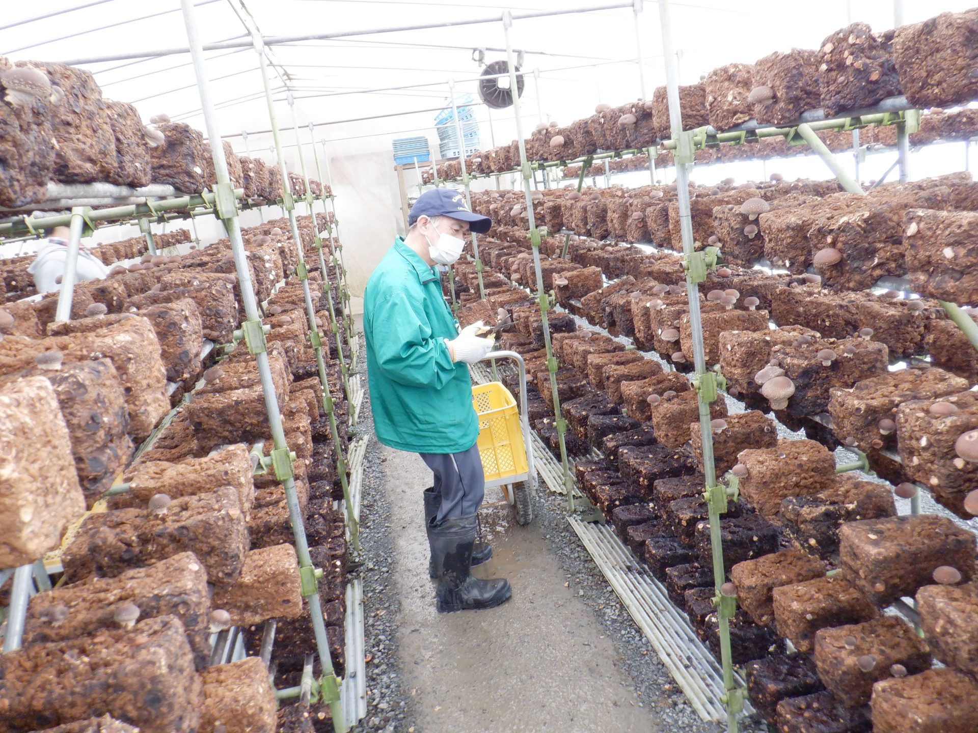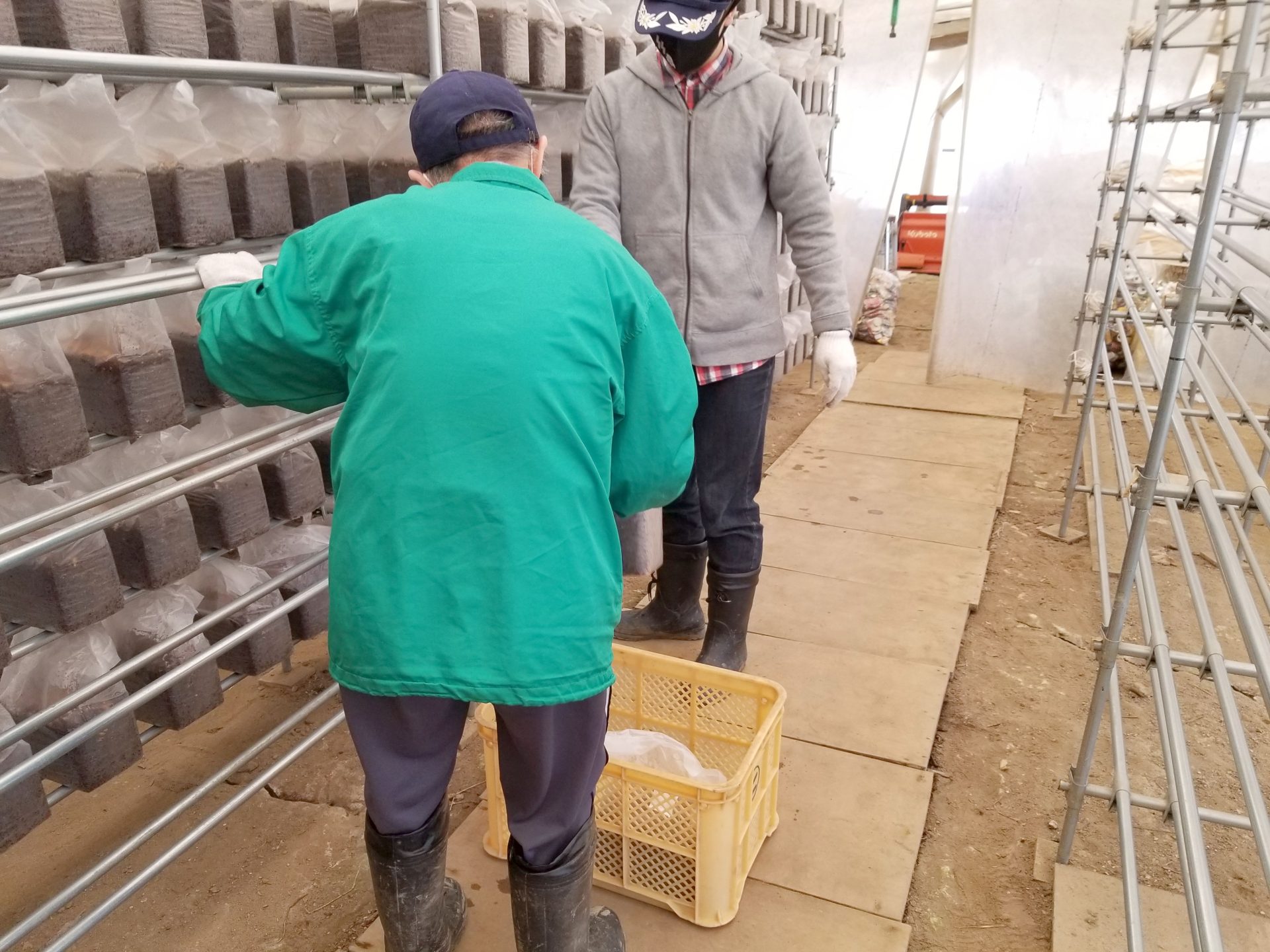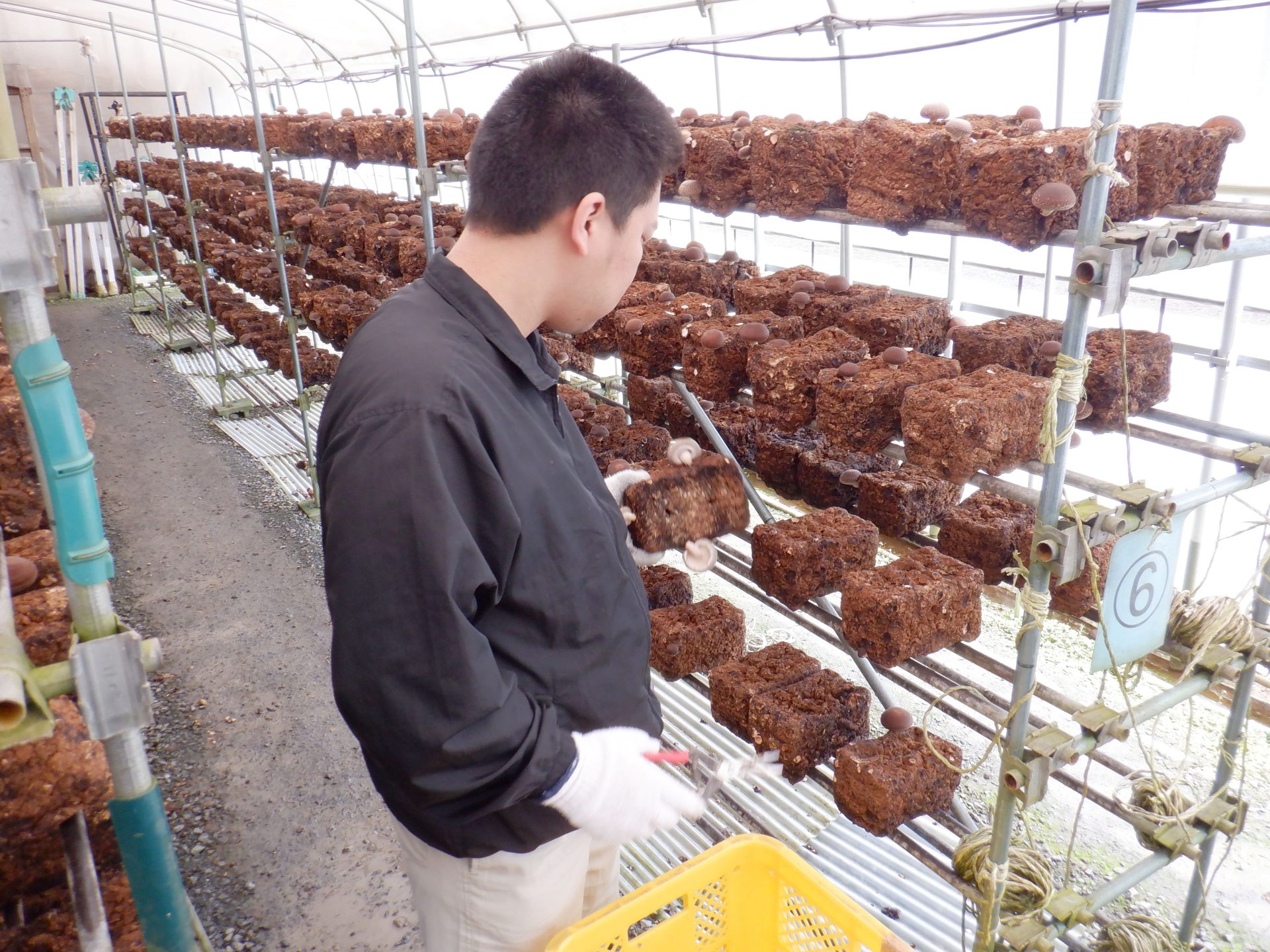 朝の1便目のトラックが菌床センターに向かっている間に、今日の分のしいたけの収穫をします(*´ω`*)