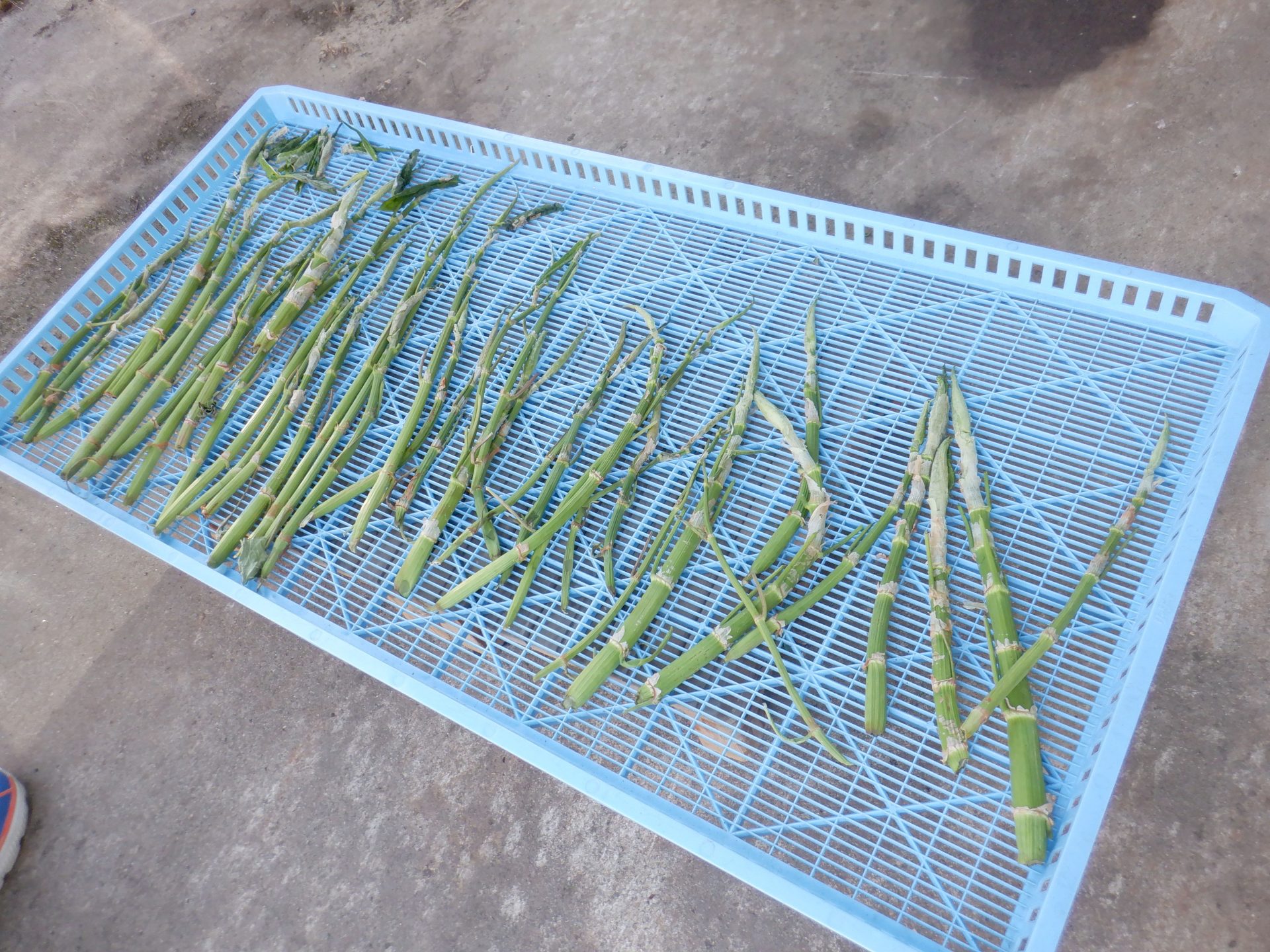 今回のお仕事は食べるのではなく、薬草茶にする材料の採取なので、茎も乾燥後に細かくカットします。加工班が中心で行っている作業なのですが、ほかにも、タンポポの根っことか、ヨモギなど色々出てくるのでこれから大忙しです。