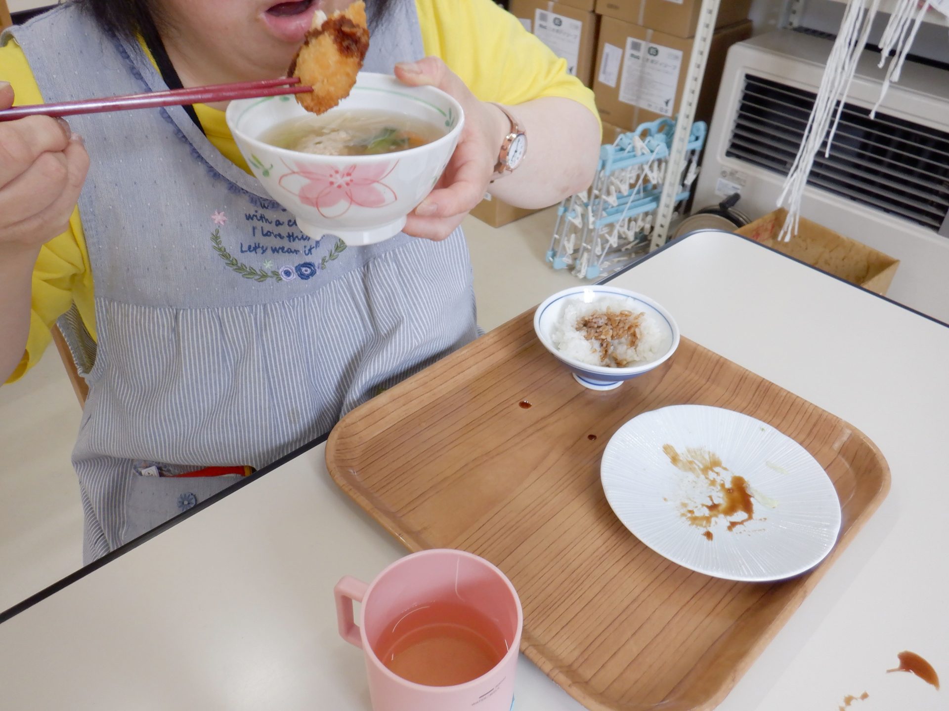 揚げ立て鶏ささみフライにはソースをたっぷりと♪