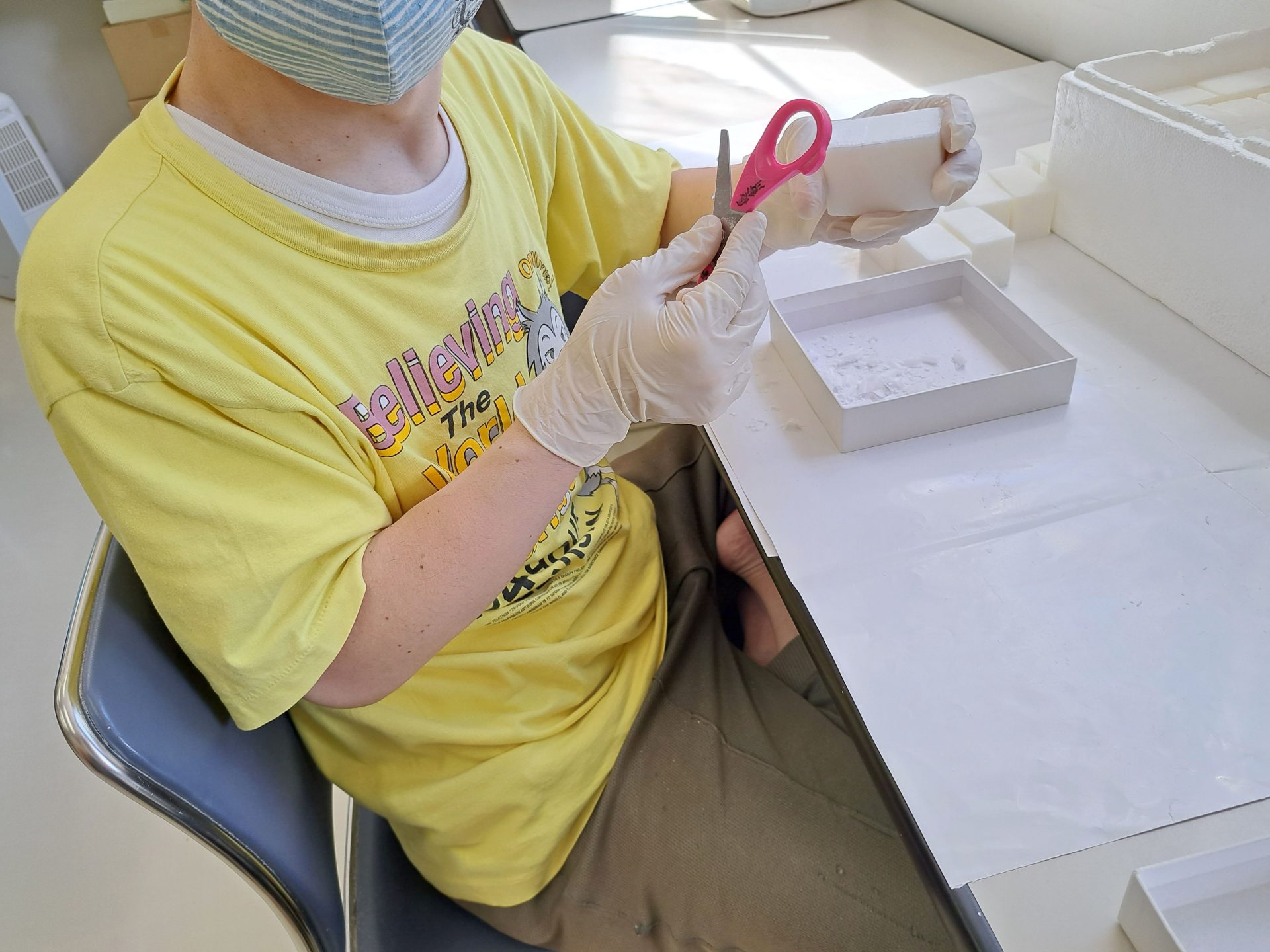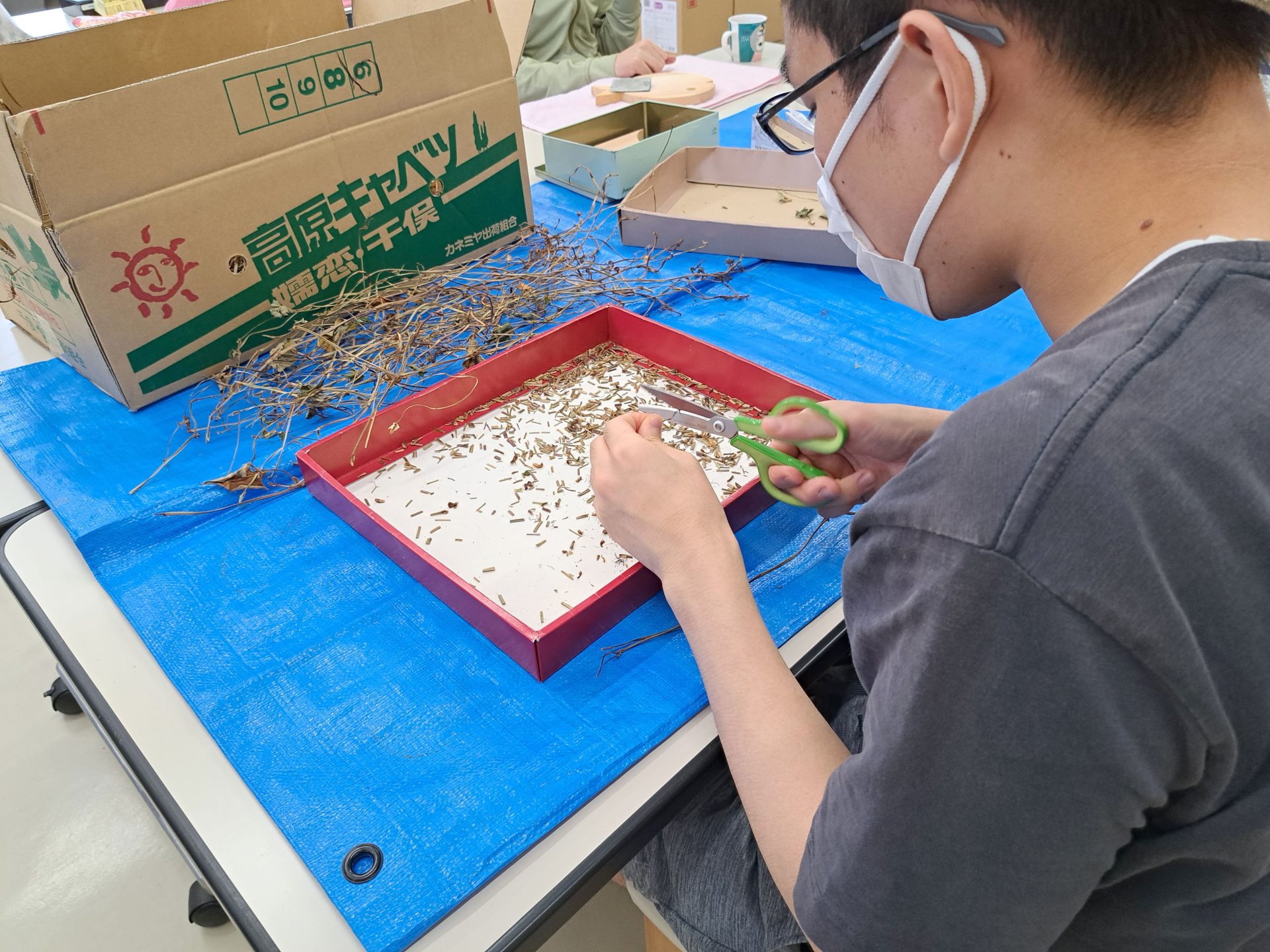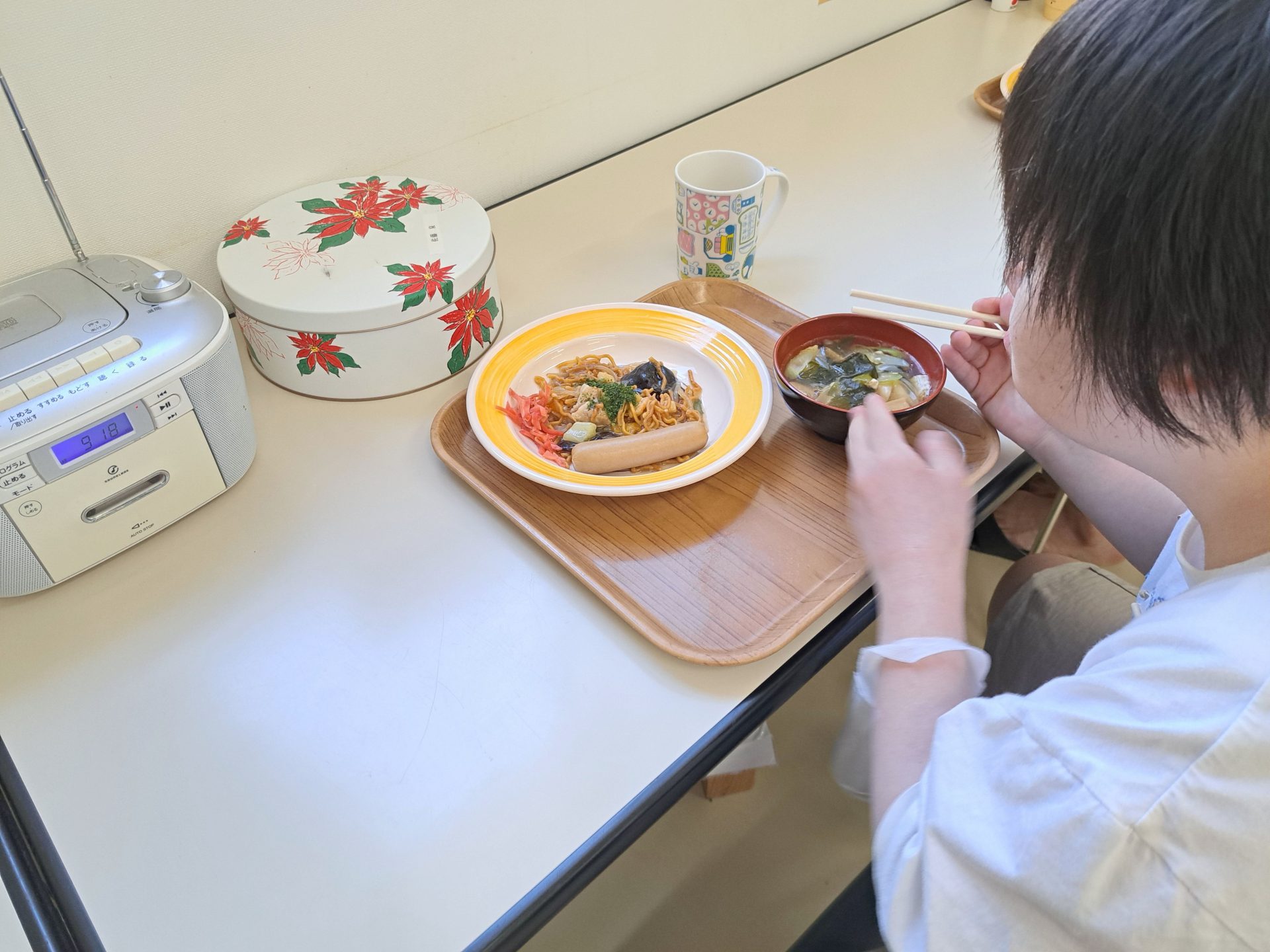 1人1人配膳です~今日は裁縫班から!