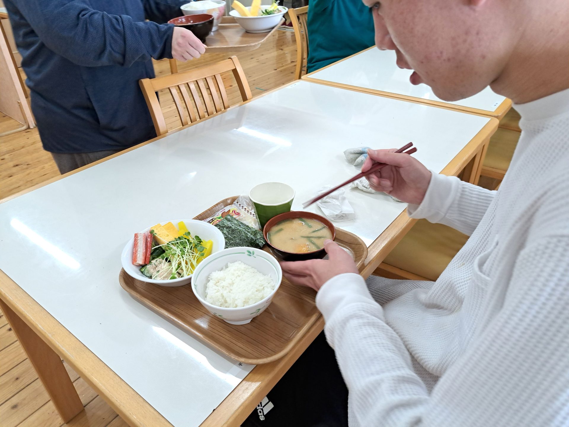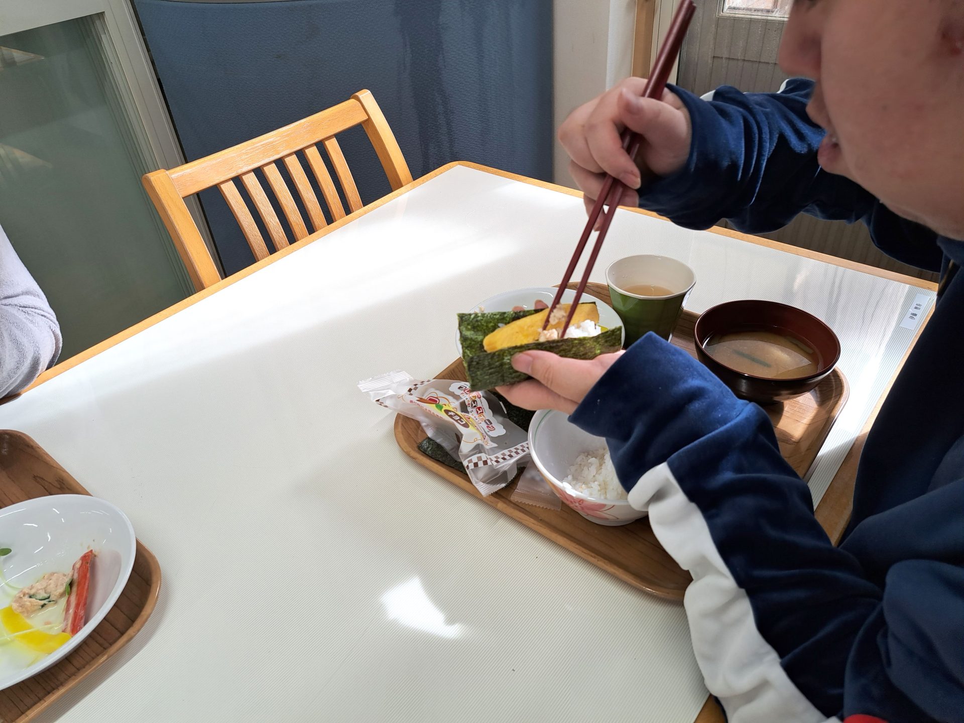 - 「まんず落ち着いて~今日の給食は何かな?」