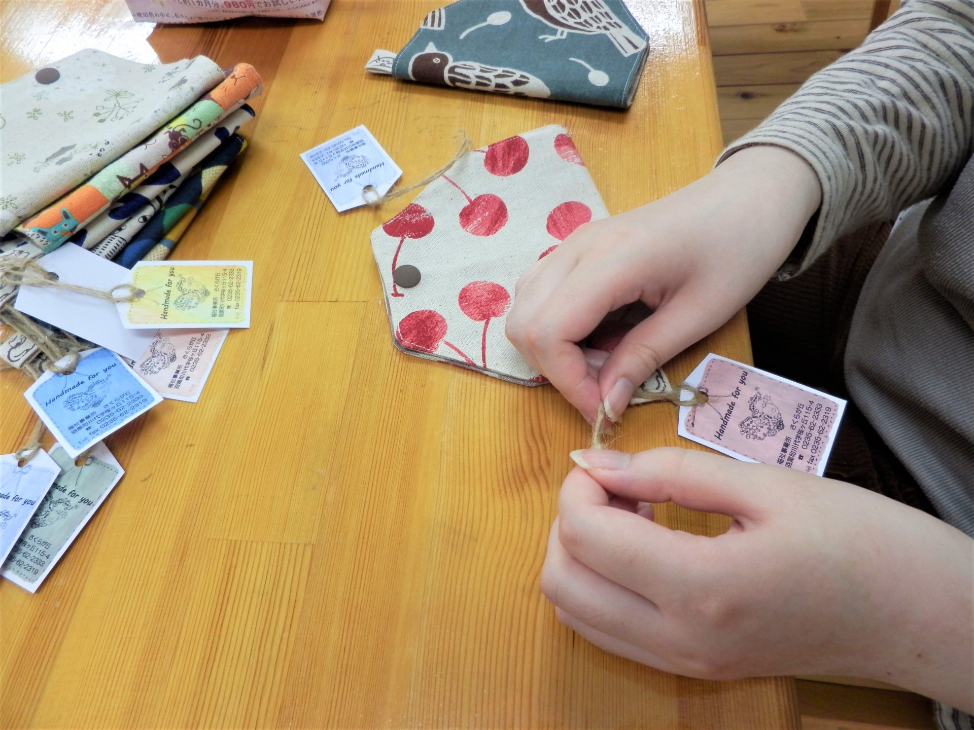 連休前はいつもお仕事バタバタですが、一つでも多くの商品を作ってお客さんに見て頂きたい… マスクケースをいっぱい作りました(´▽`*) タグを作ります 生地を選んで~ まち針でとめて~ 印をつけて~ ダーッとミシンで縫いま~す 値札つけて、はい完成! 工程かなり飛びましたが、それくらい必死で縫ってくれました!ごくろうさまでした! 完成した作品は「産直グー」に並んでいますので、連休中ぜひどうぞ~♪