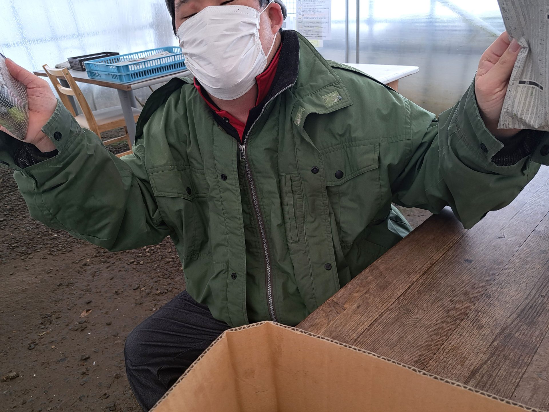 - ハウスの中はけっこう温かいね♪