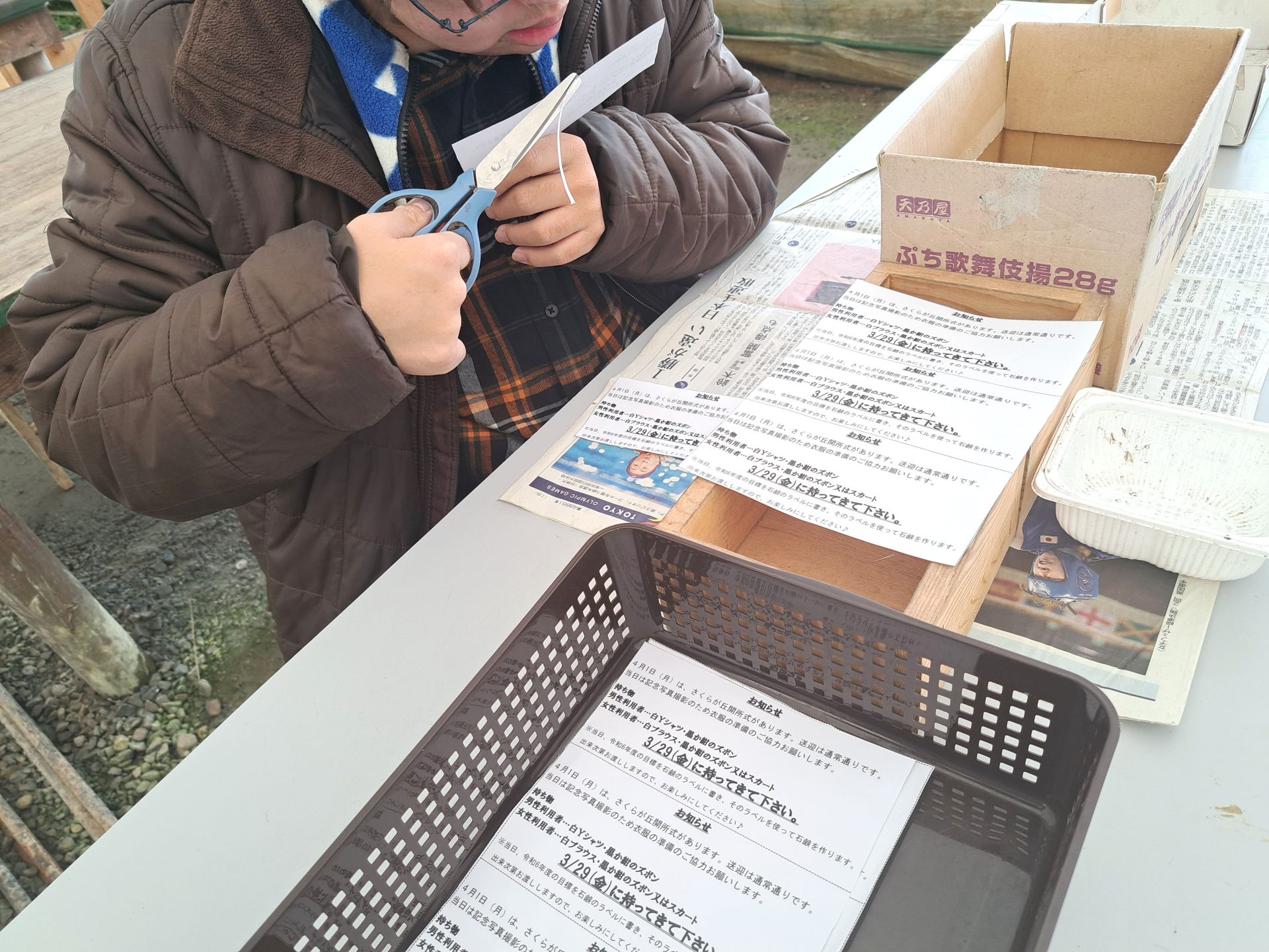 - 「今日も紐カット60本がんばるぞ!」