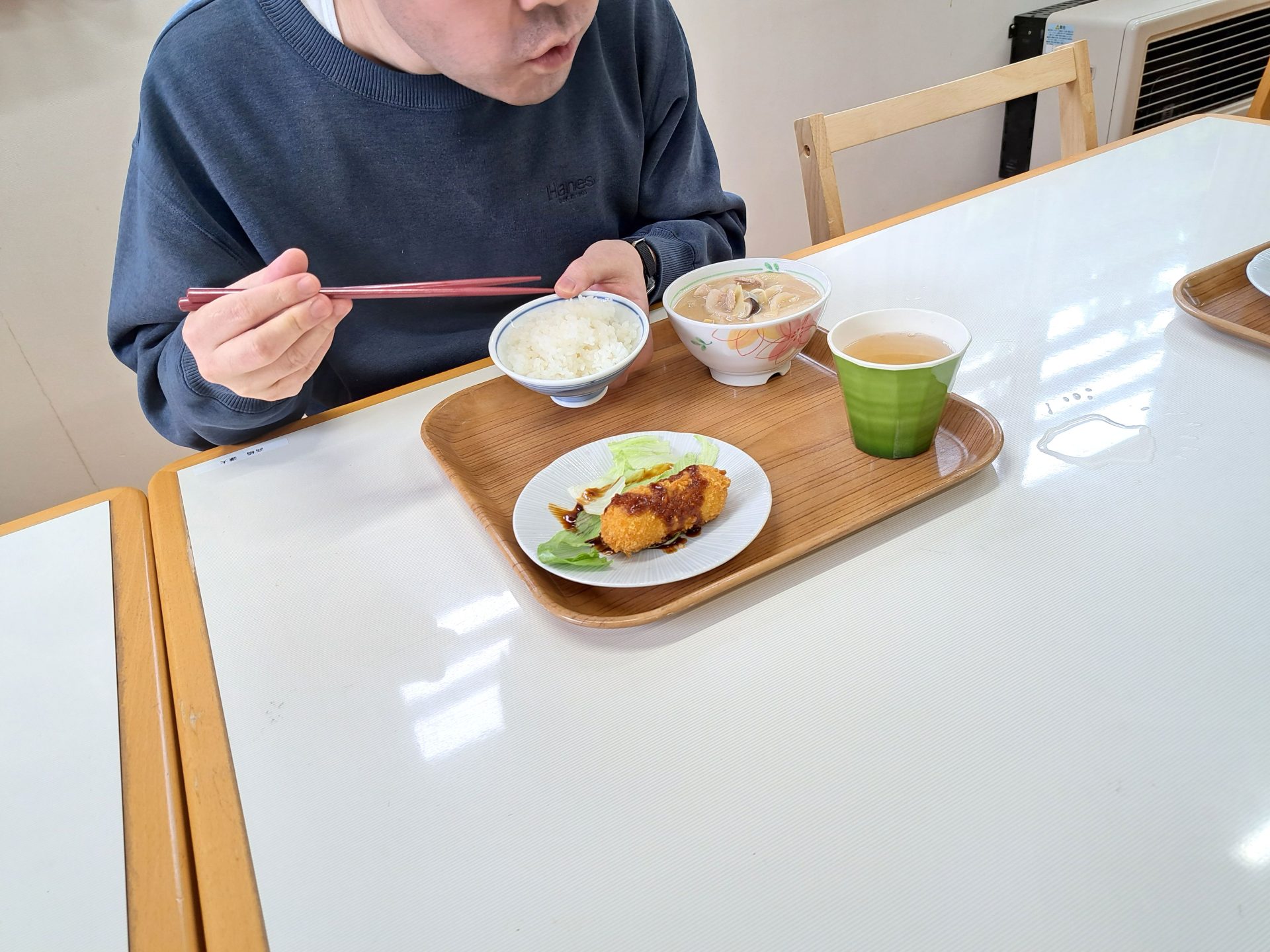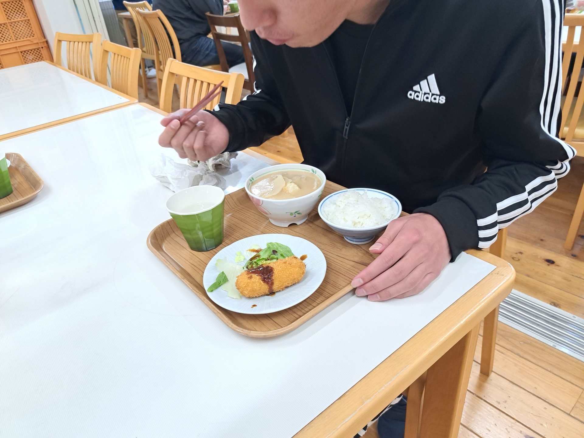 久しぶりの給食にテンション上がります~♪揚げ立てのクリームコロッケにホカホカ白飯~♡