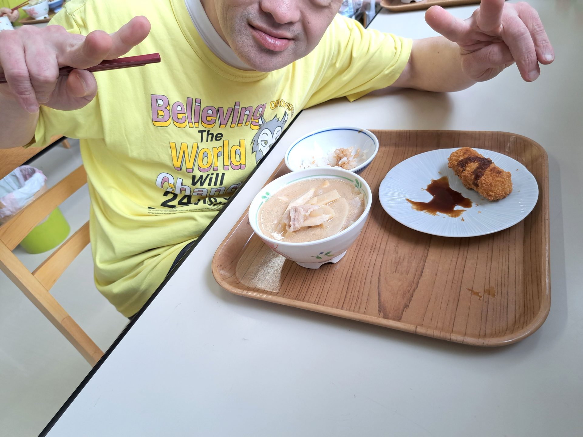 「はーい!今日の給食は孟宗汁ですよ~!」