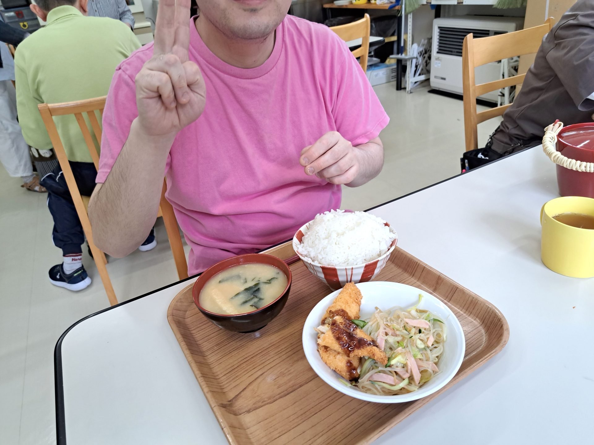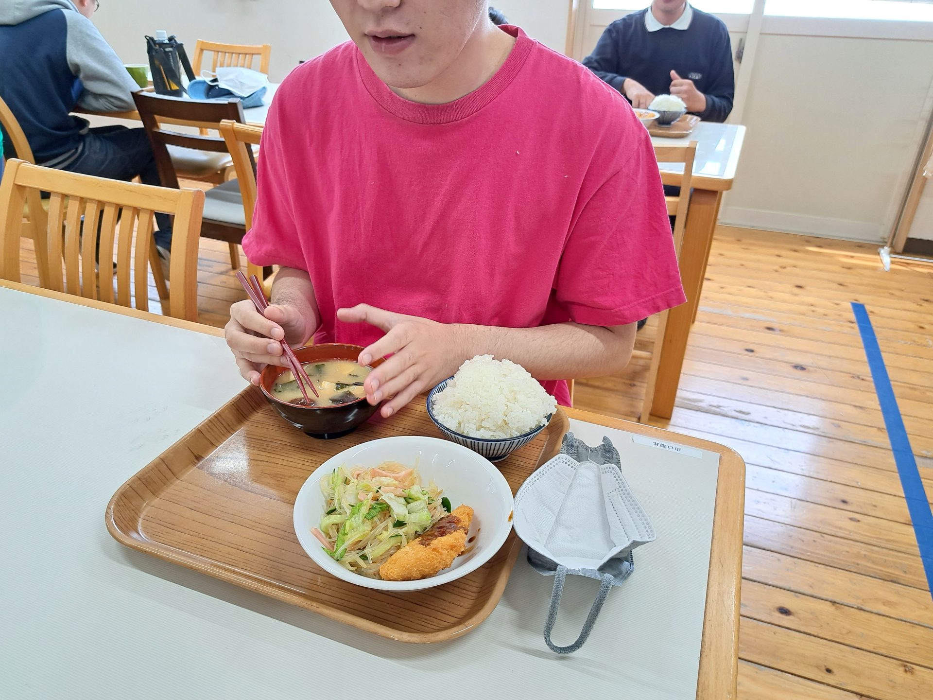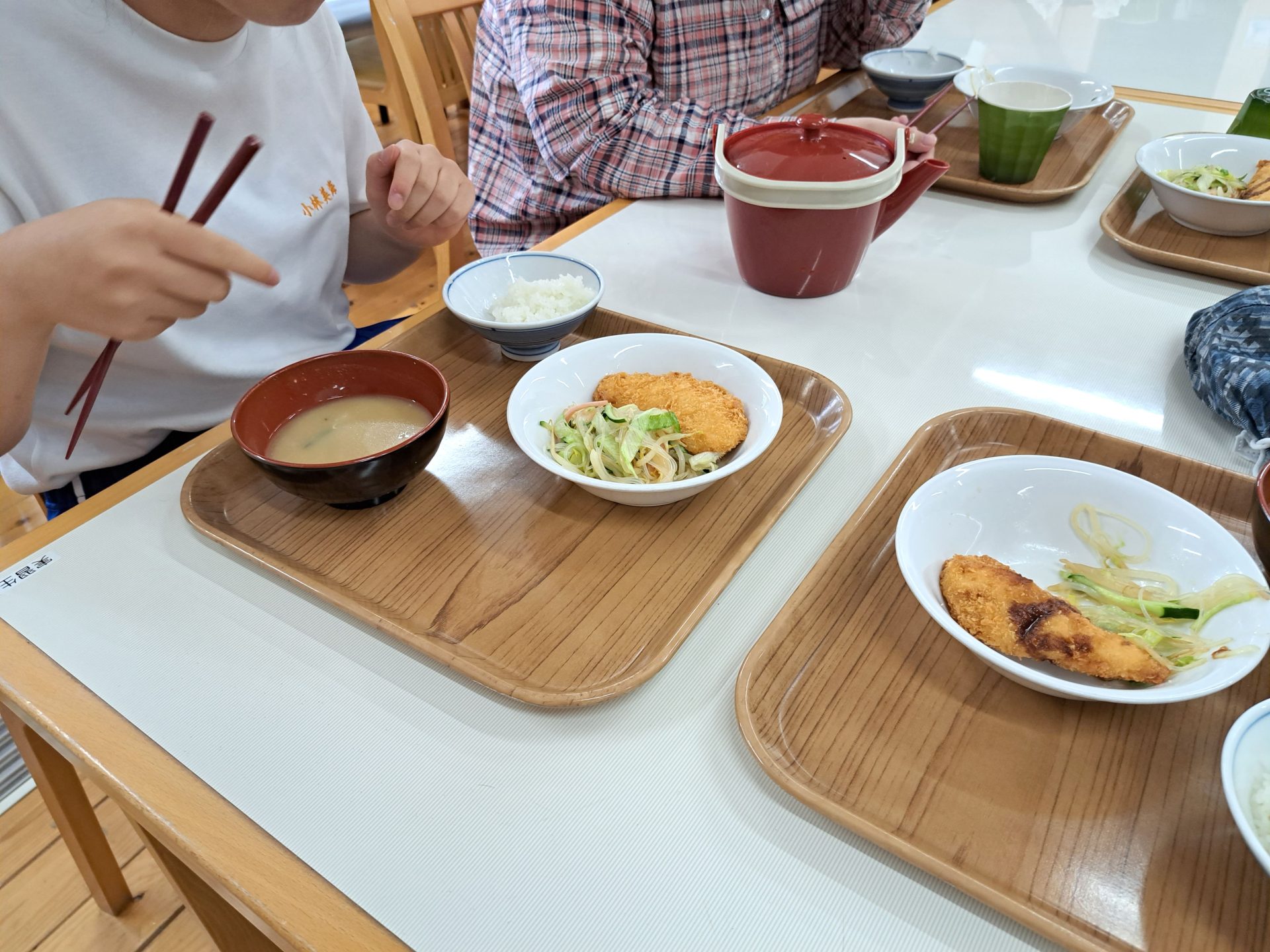 実習生さんも美味しそうに食べてます~さくらが丘の給食えっぺけ~(´▽`*)