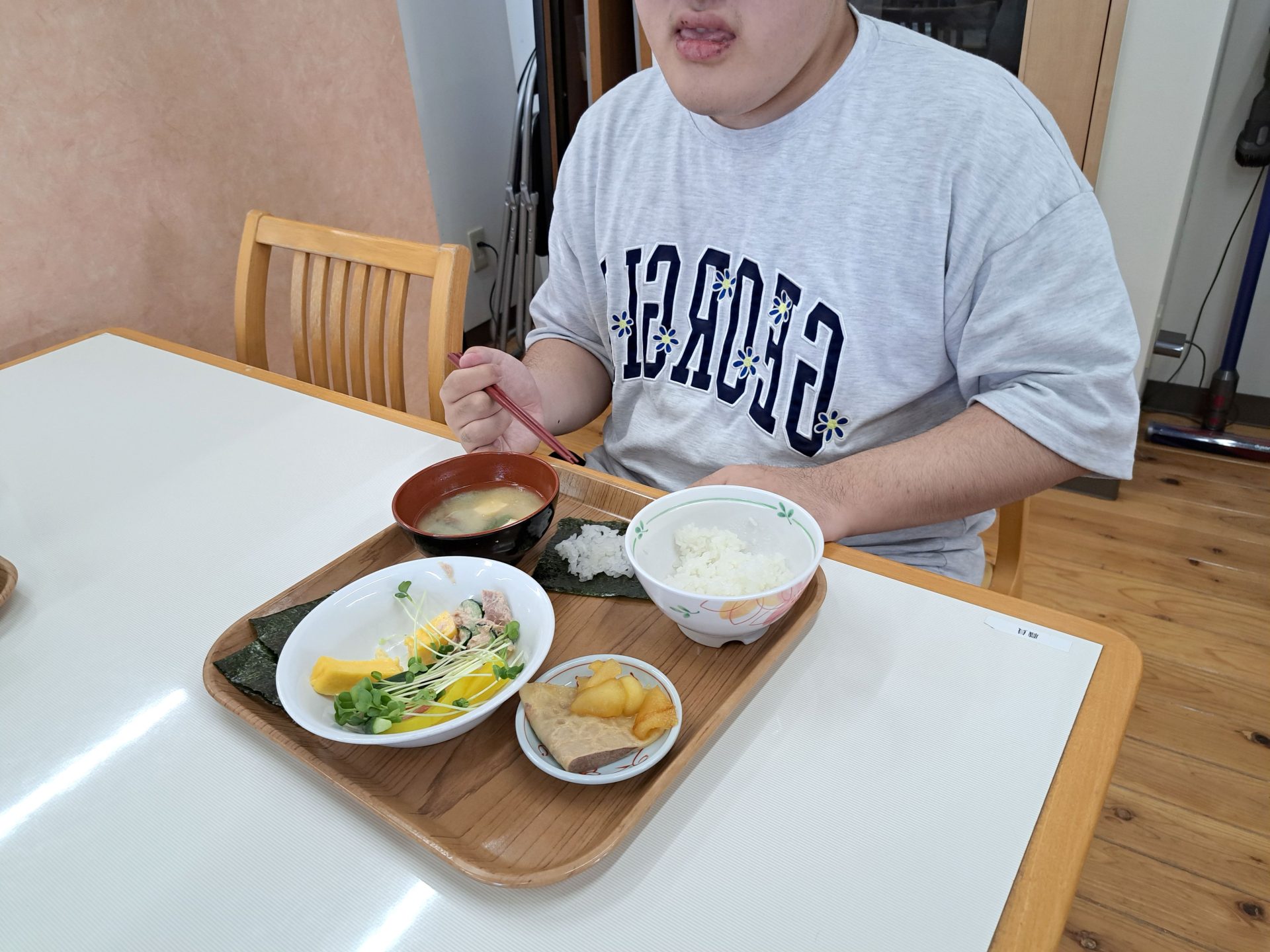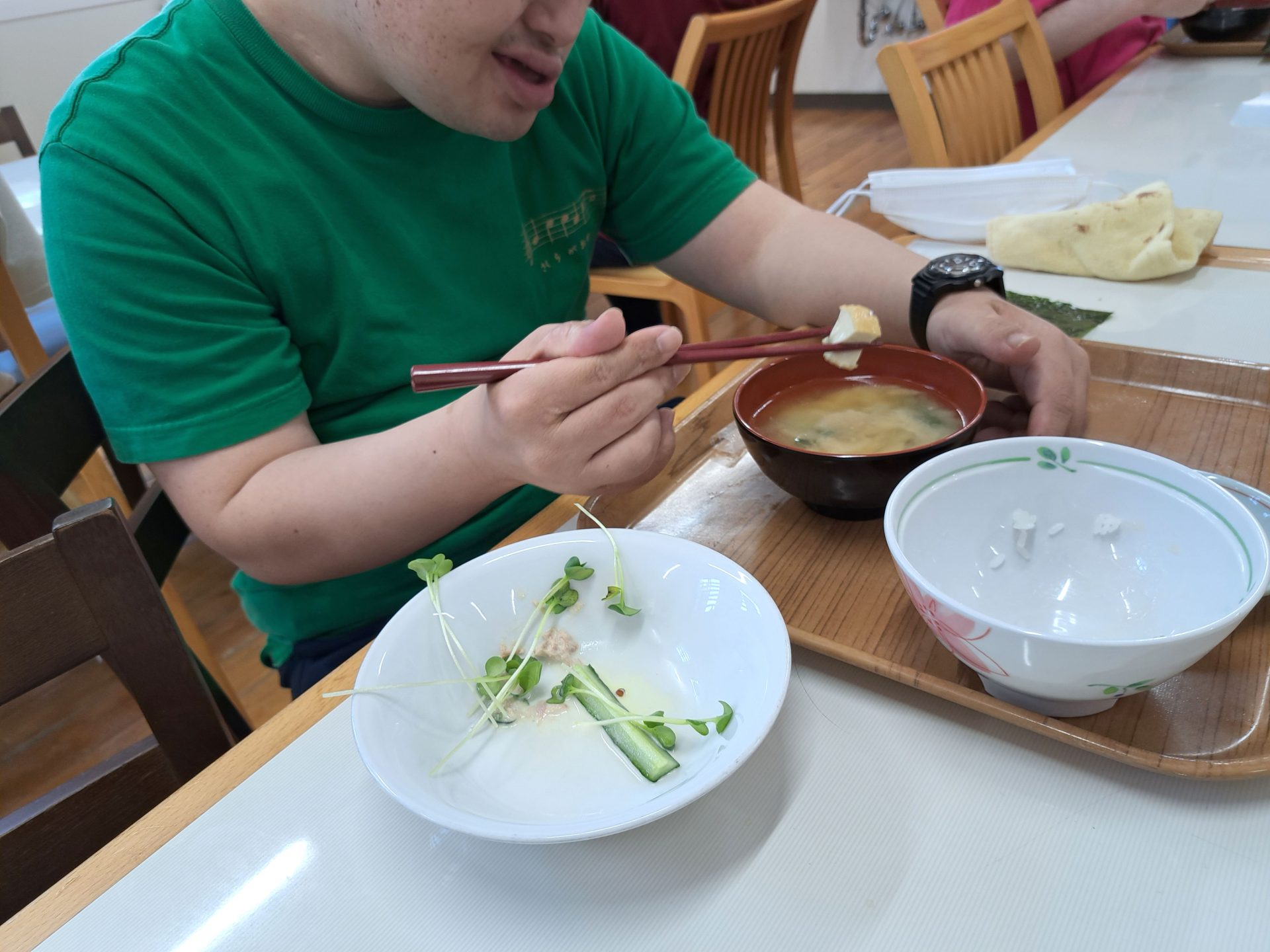さくらが丘に一番で到着する利用者さん!購入したばかりという洋服なんだかとっても涼し気で素敵です~(´▽`*)