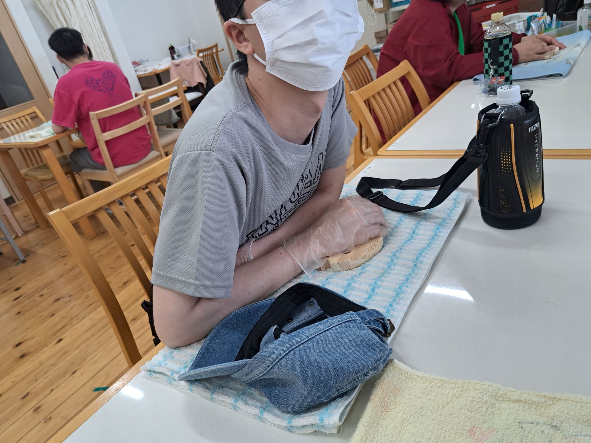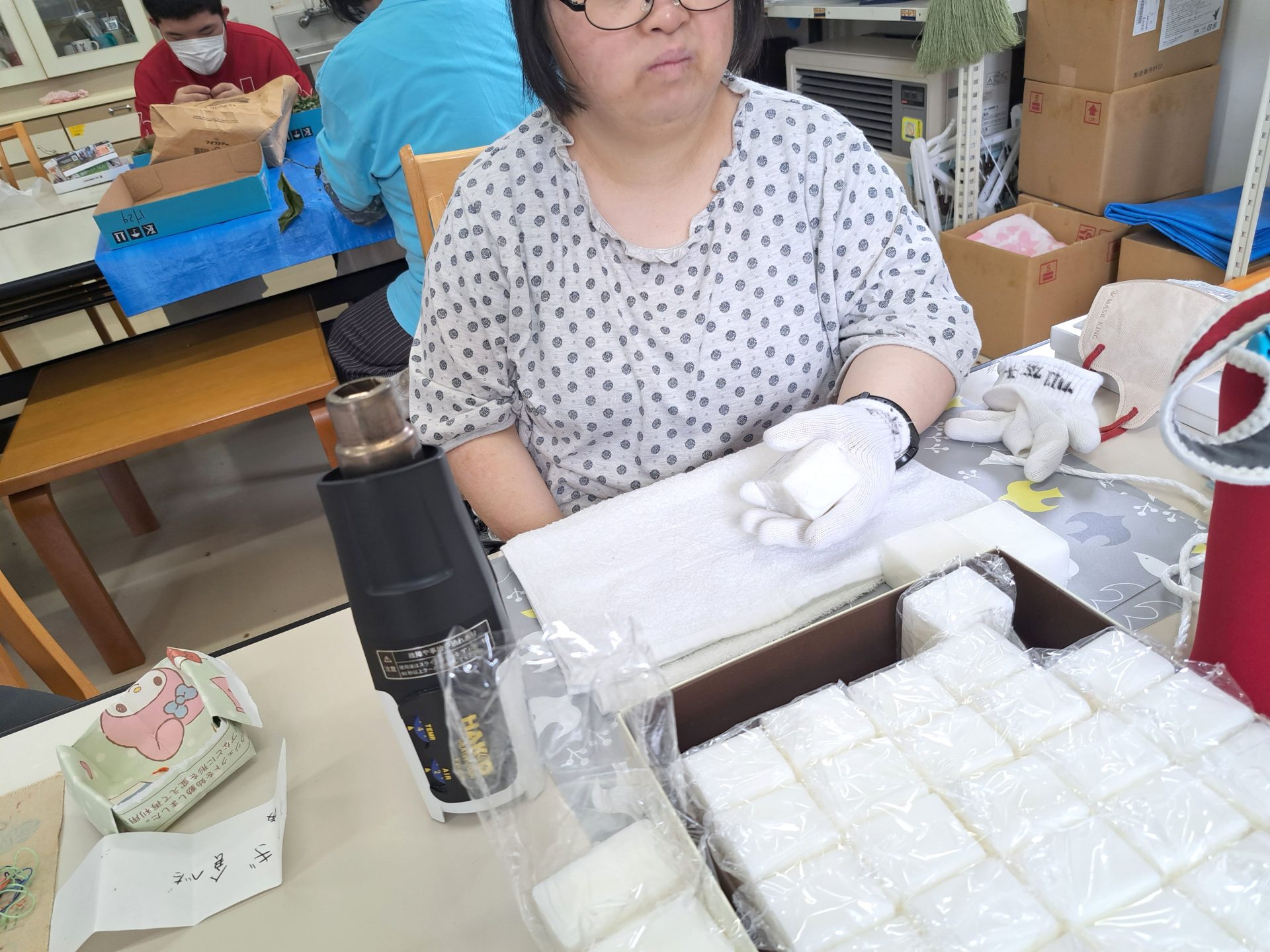 こちらは石けんのシュリンク作業中~(´▽`*)