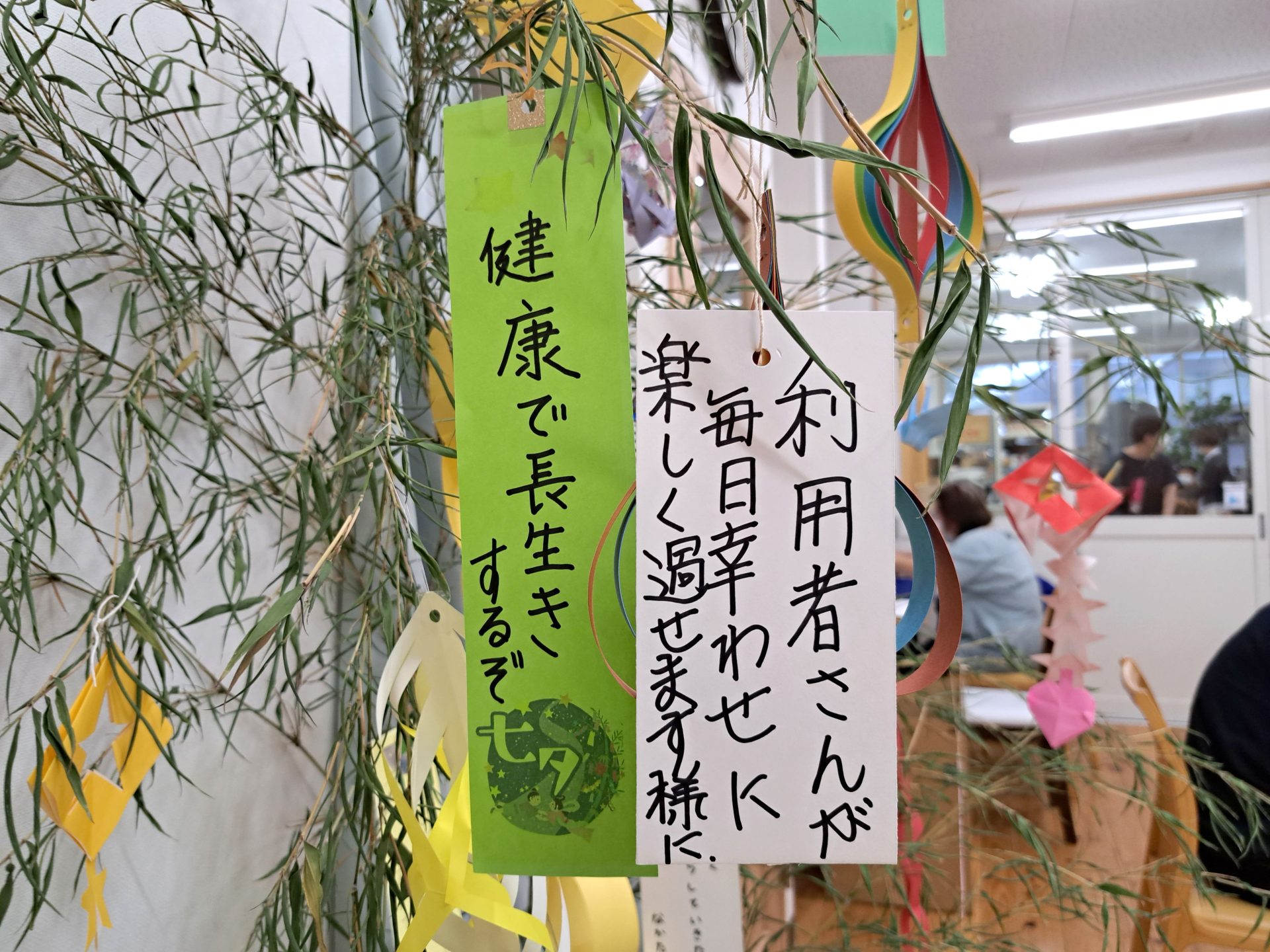利用者さんから「この間の七夕会の写真載ってねーっけの!?」と言われ、土日挟んじゃったからさ~とか言い訳を言ってスルーしようとしましたが、改めて写真を見たらみんな楽しそうで…やっぱり載せたいな~ということで~(*^-^*)