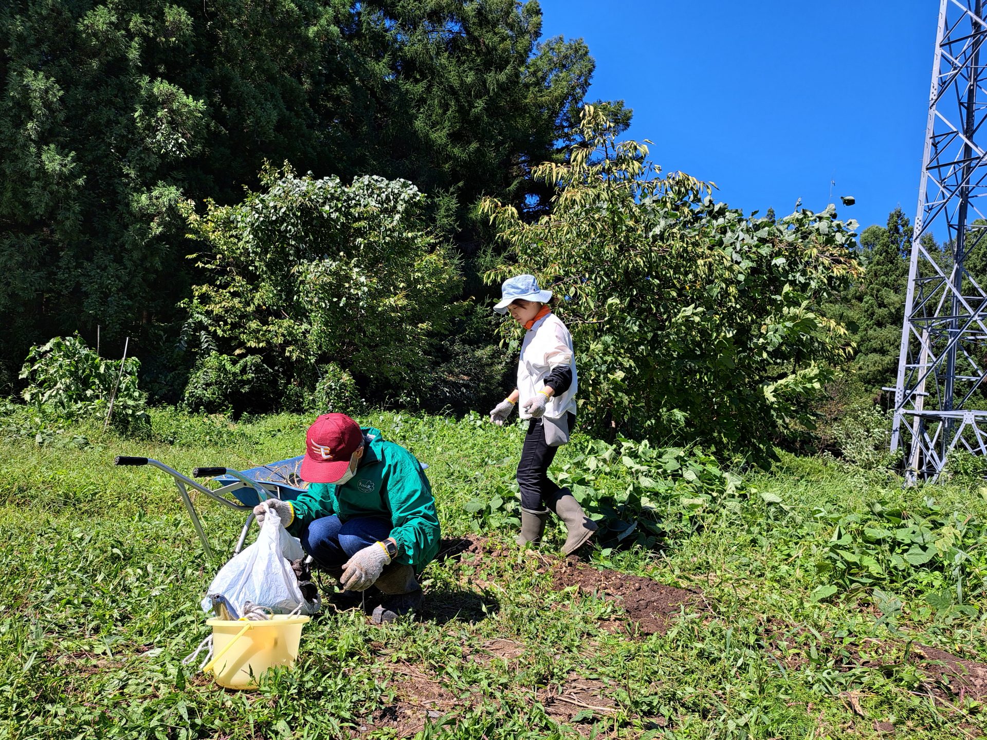 畑では農芸班の新人職員&ベテラン利用者さんが仲良く畑の片付け作業中~(´▽`*)
