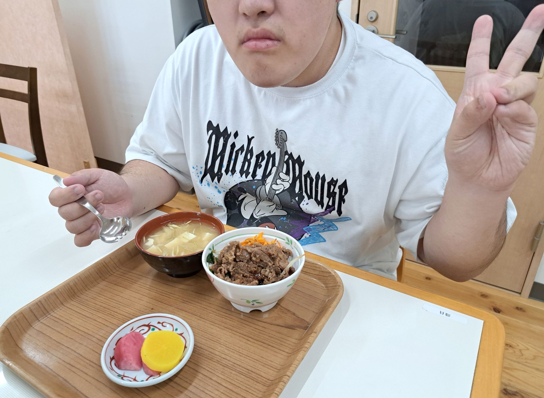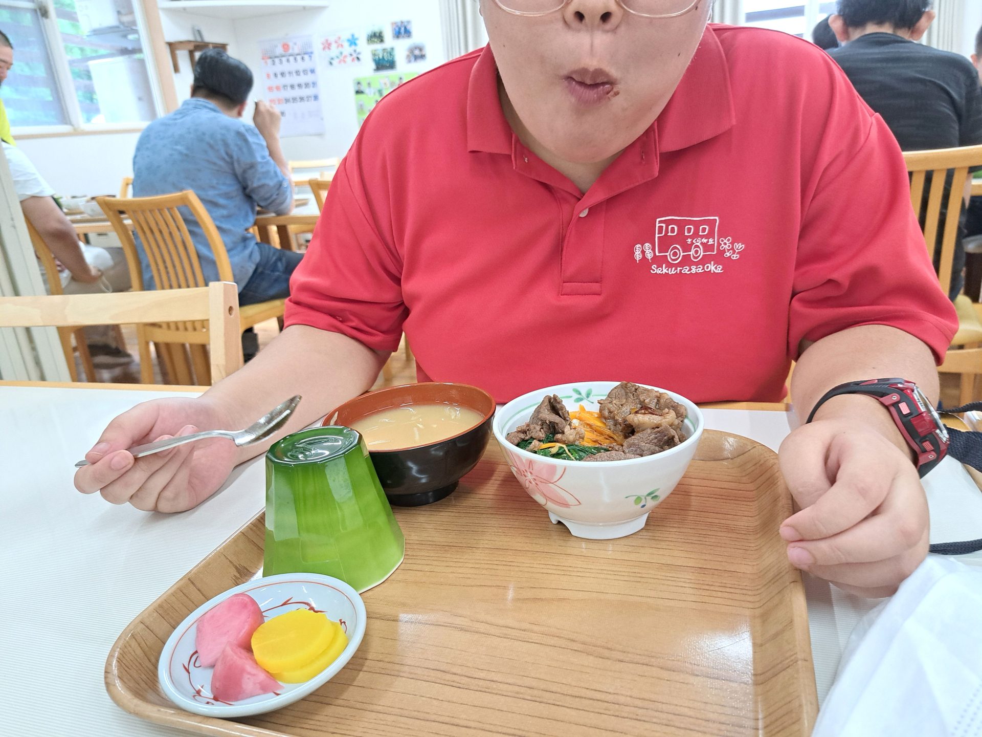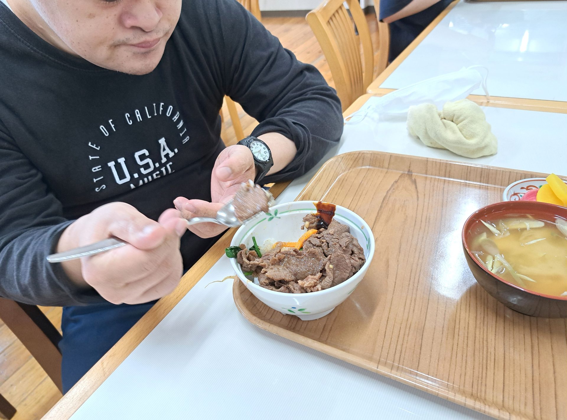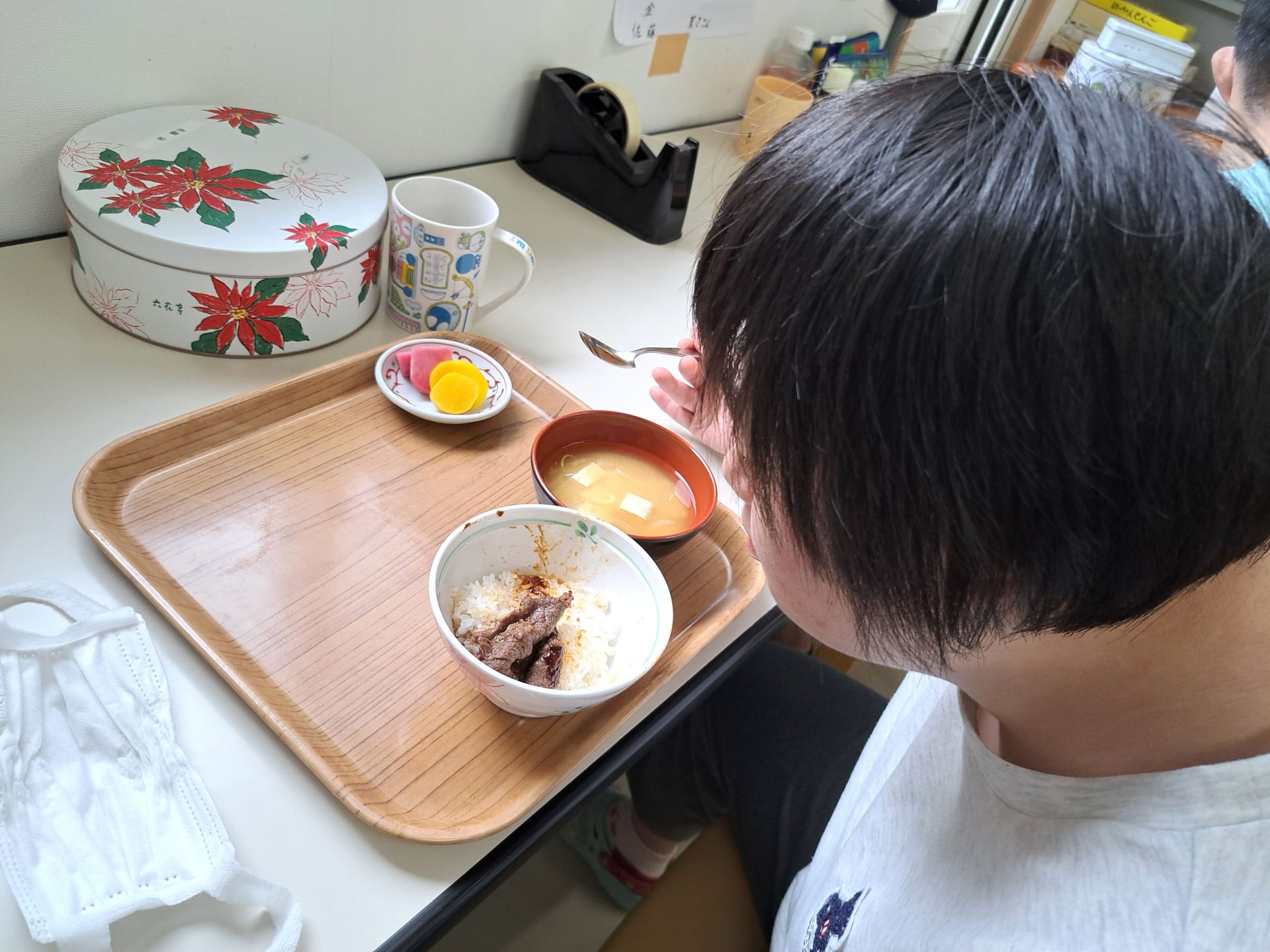 汗だくでそれぞれ働いた後に、みんなで食べる給食は最高ですね~!