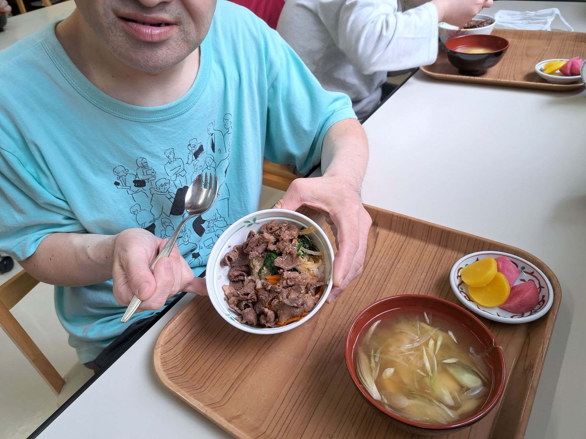 さてさてお楽しみの今日の給食です~やった牛肉だーーー!!