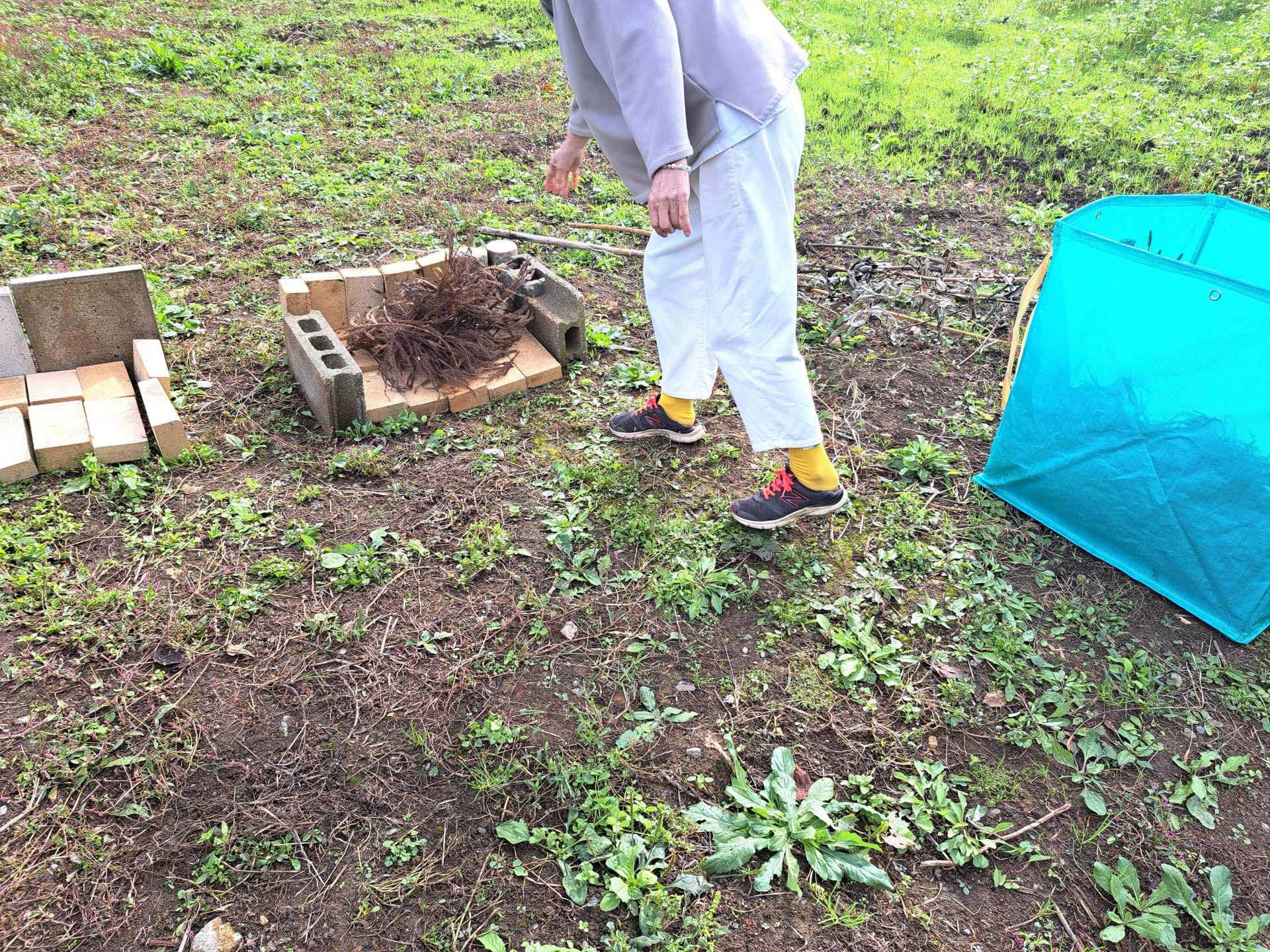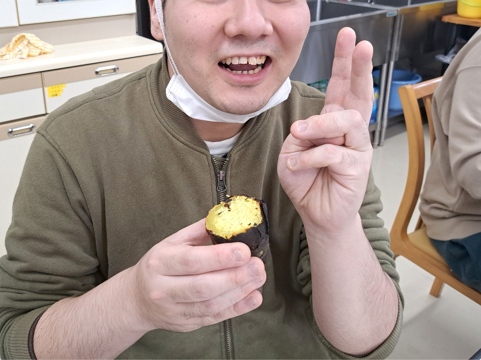 サツマイモを育てて収穫した新人職員さん、まさか焼き芋までしようとは!後ろ姿がたくましい!!
