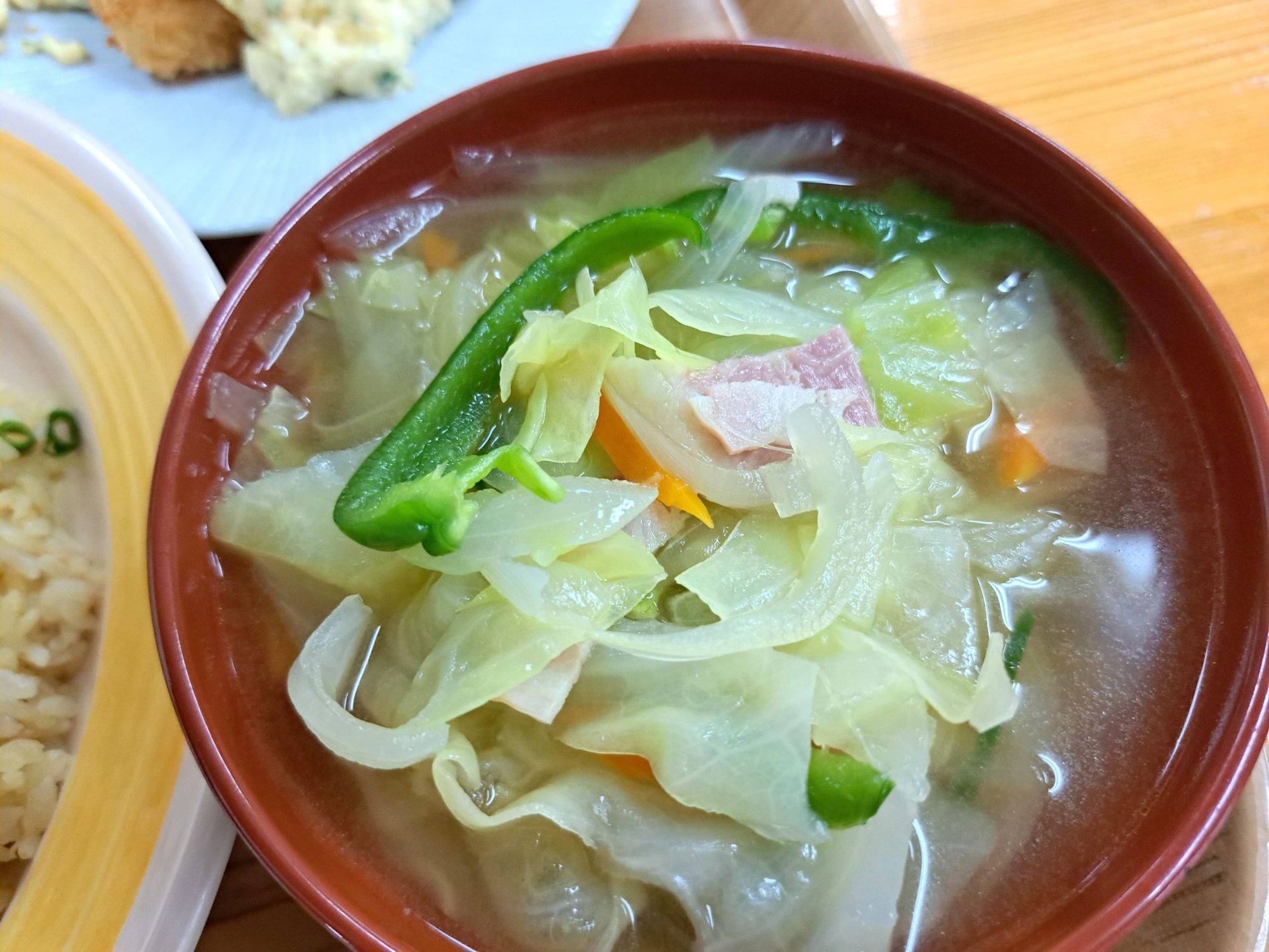 - 具沢山野菜スープ!コショーが効いててピラフが進む♡