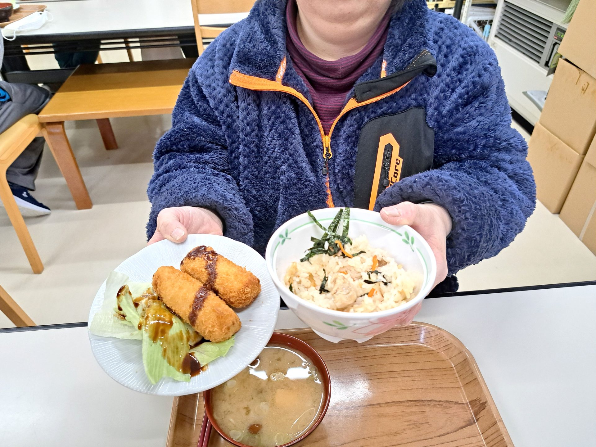 実は昨日は急きょお弁当になったので、今日のメニューは…昨日のメニューだそうですよ~!五目御飯だ!!(´▽`*)