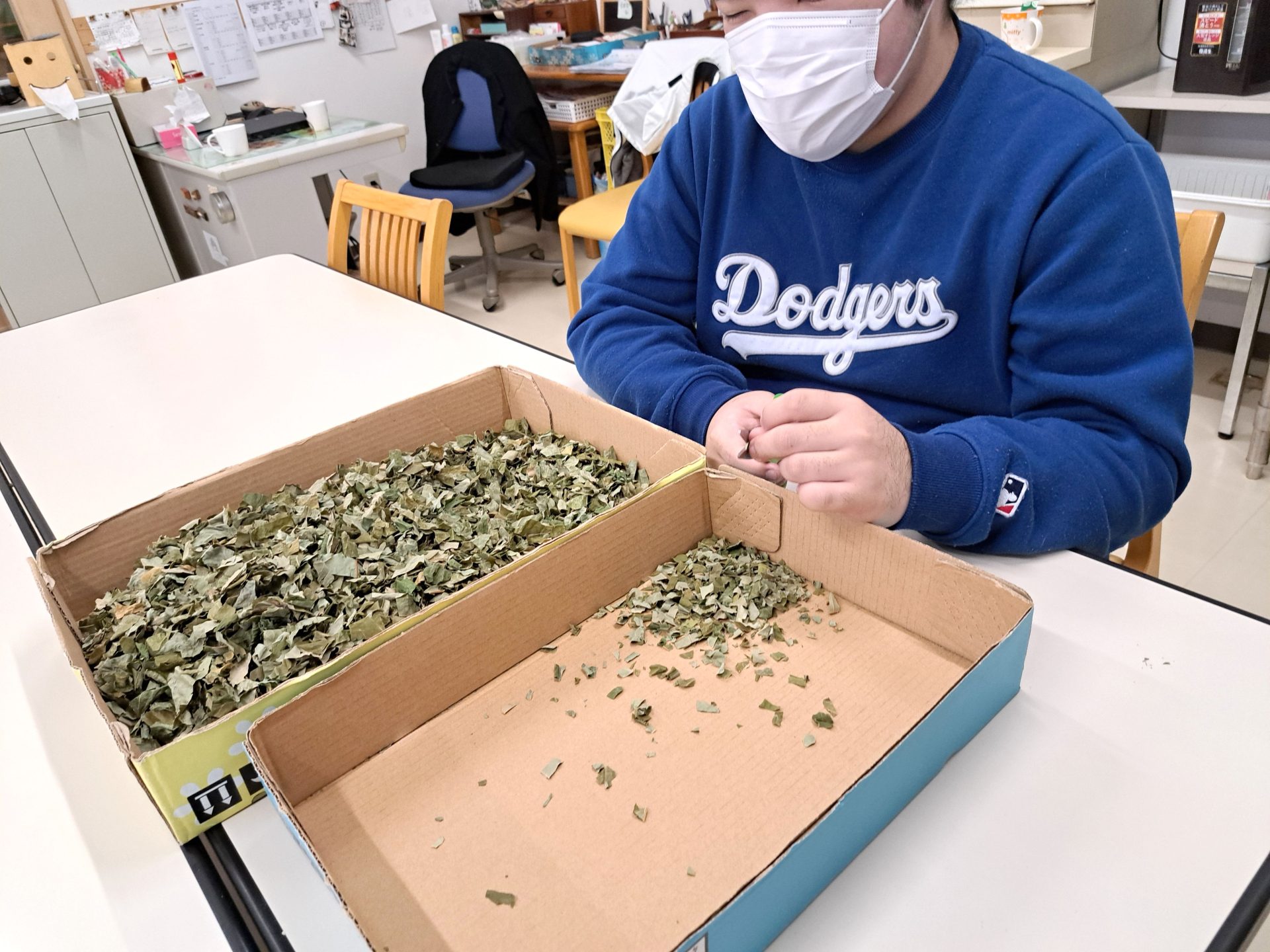 裁縫班の朝の風景~血圧測定?!