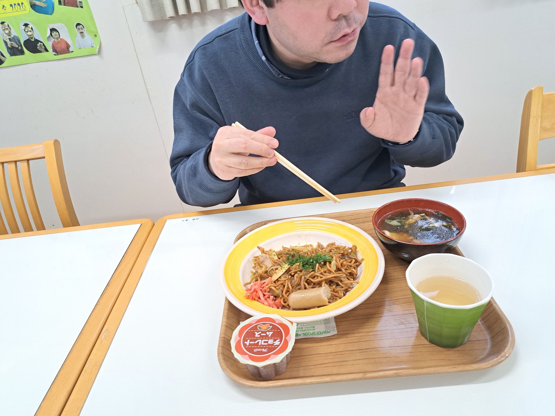 今日の給食は何かな~?!熱狂的ファンがいる揚げ焼きそばではないですか~( ´艸`)