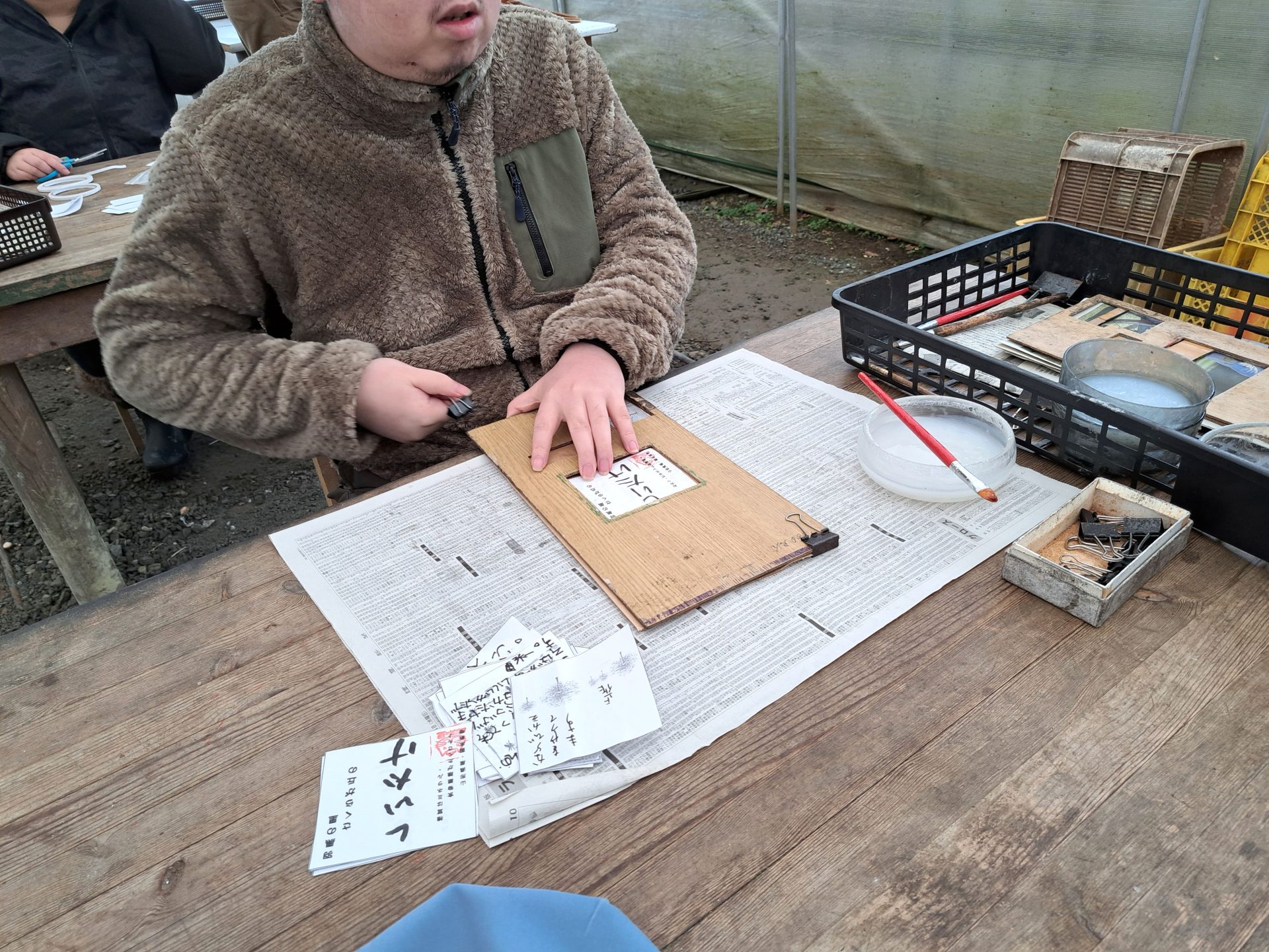 入れ替わりに木工班が中に入ってきました~今日空き缶の日だもんね!