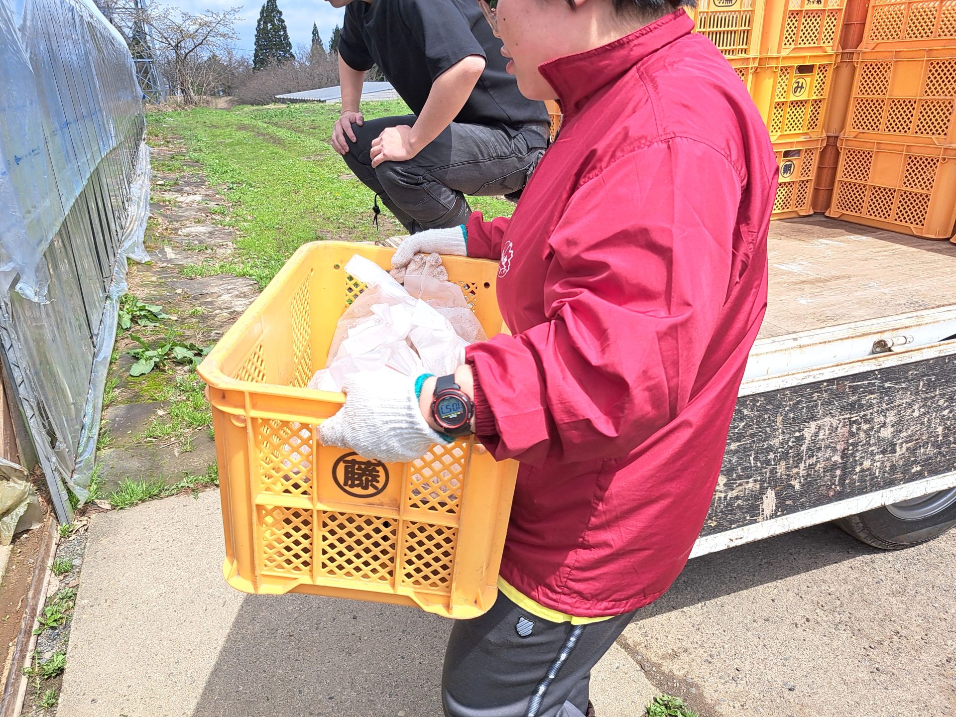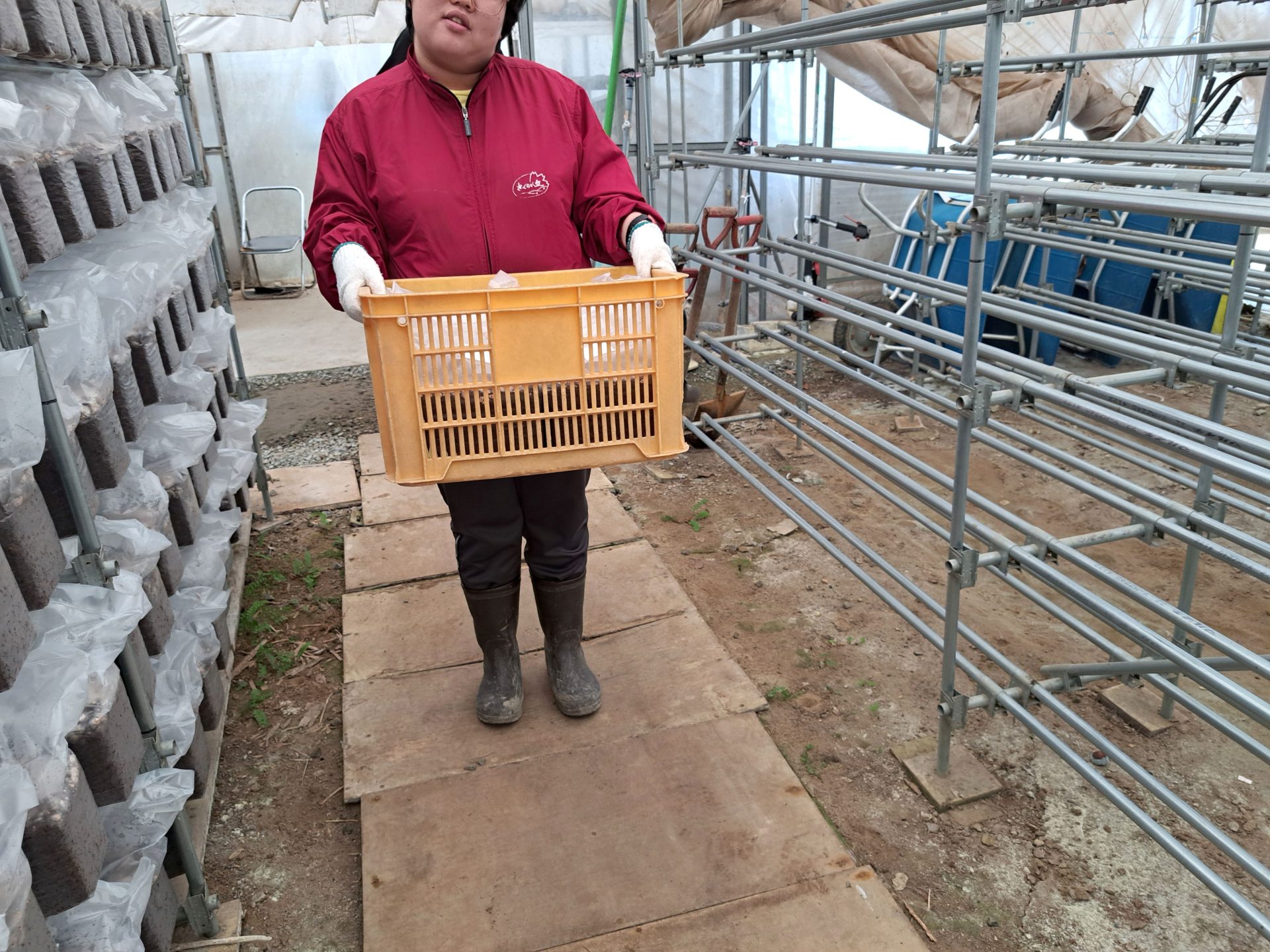- 菌床のケースを運んでいくと…