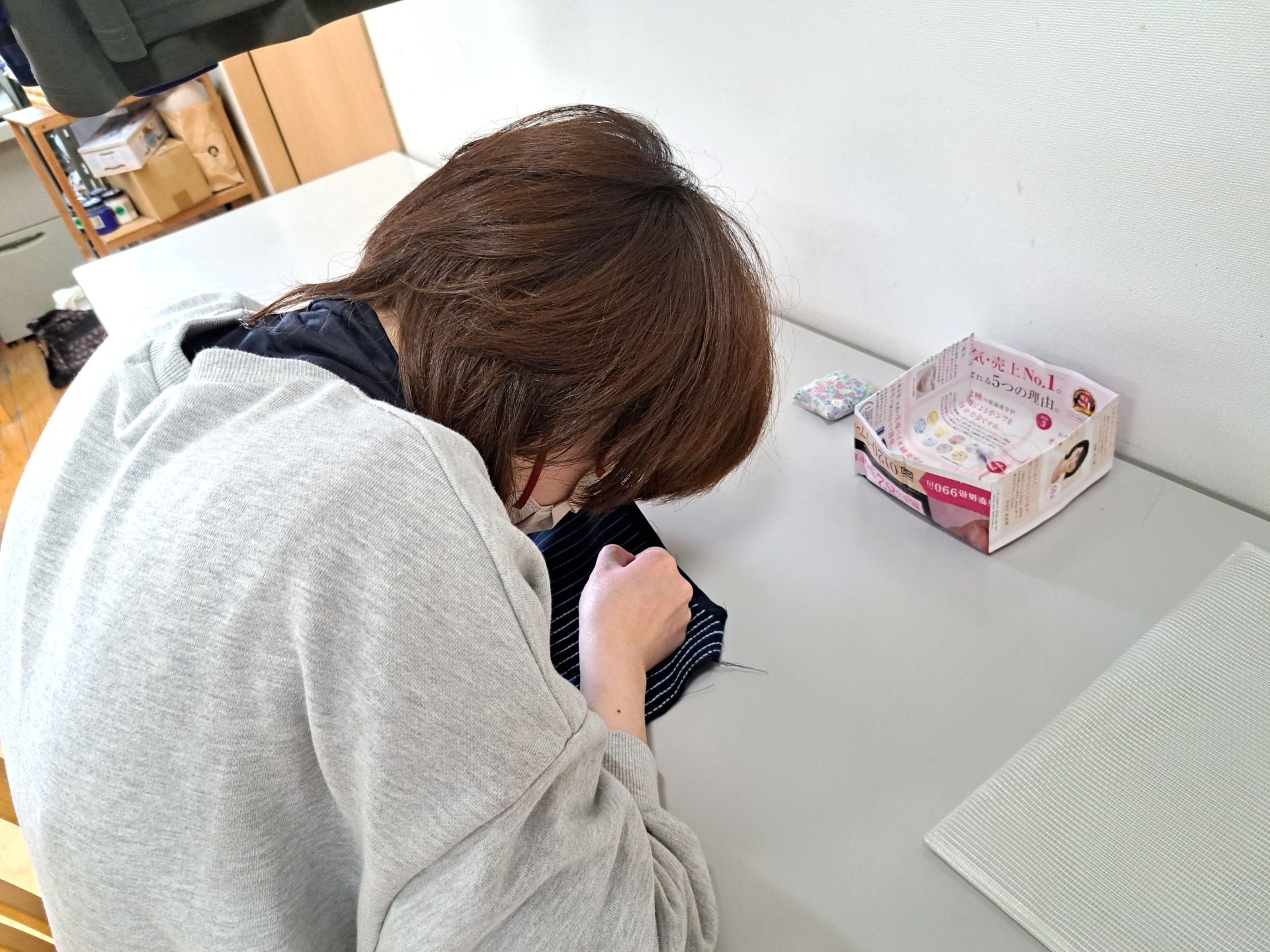 - 棚に並べる役の人に渡します~