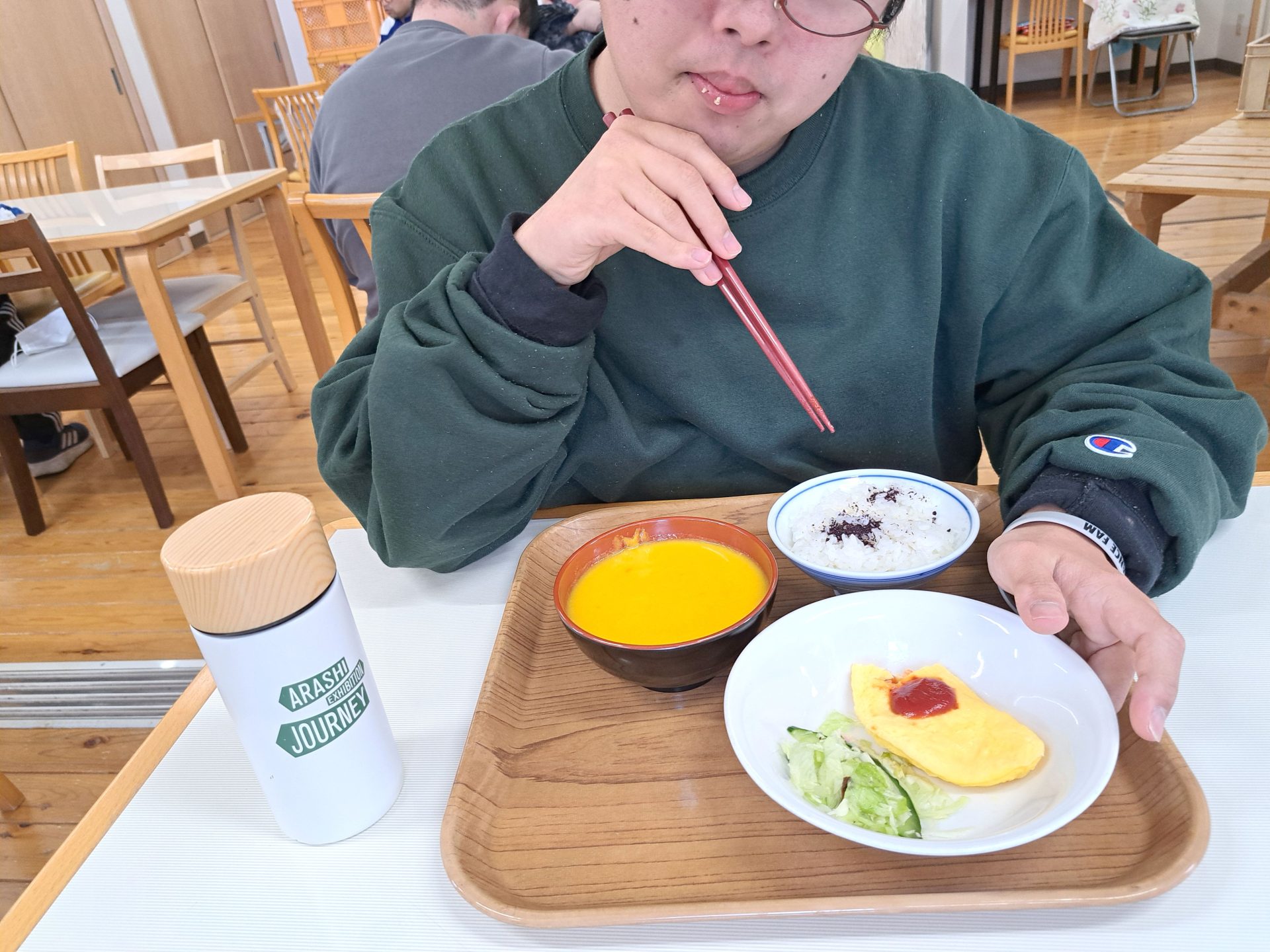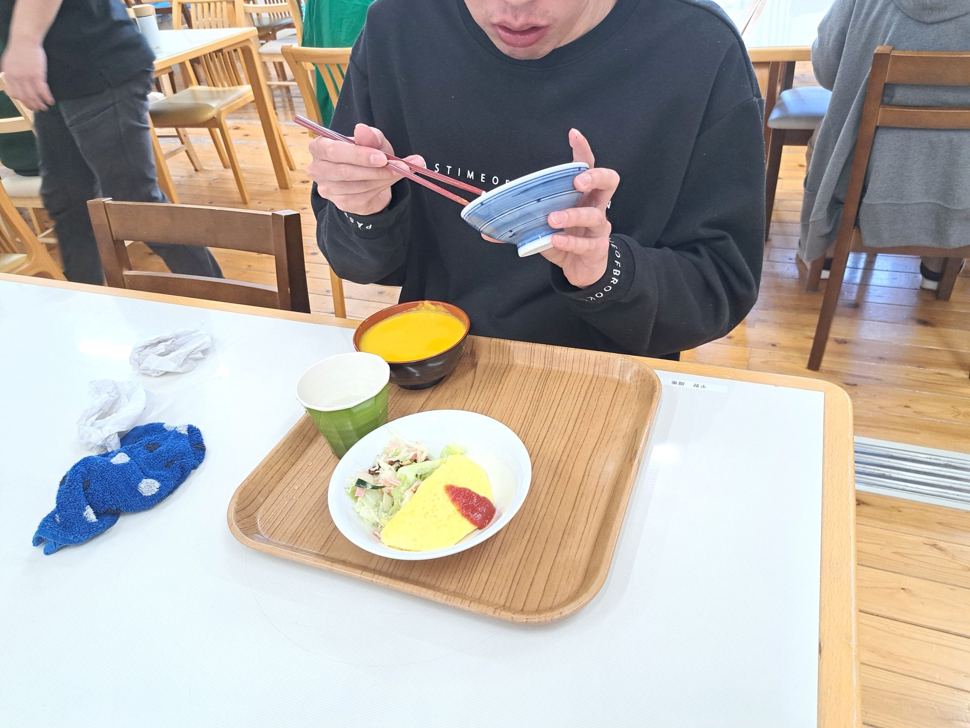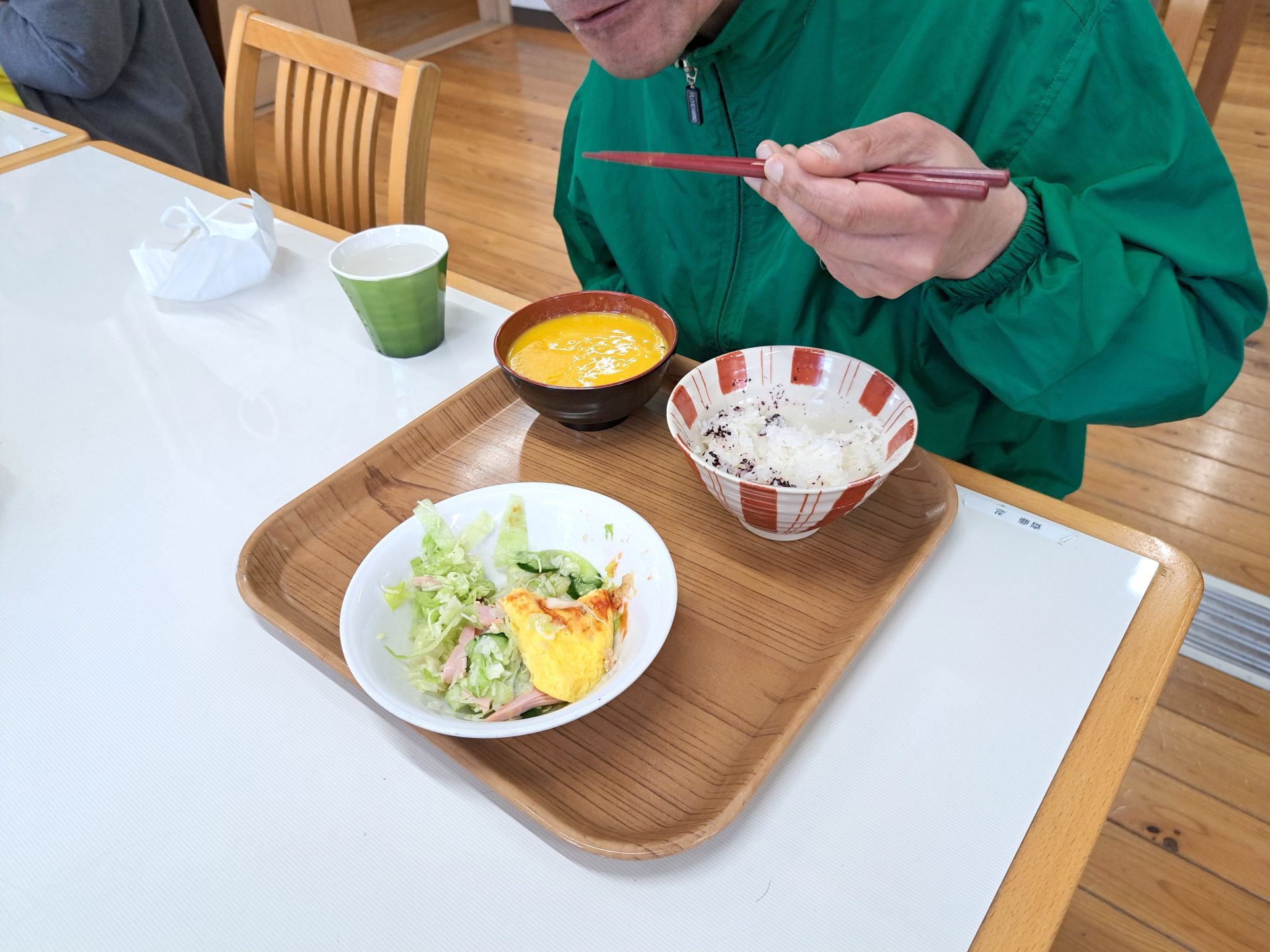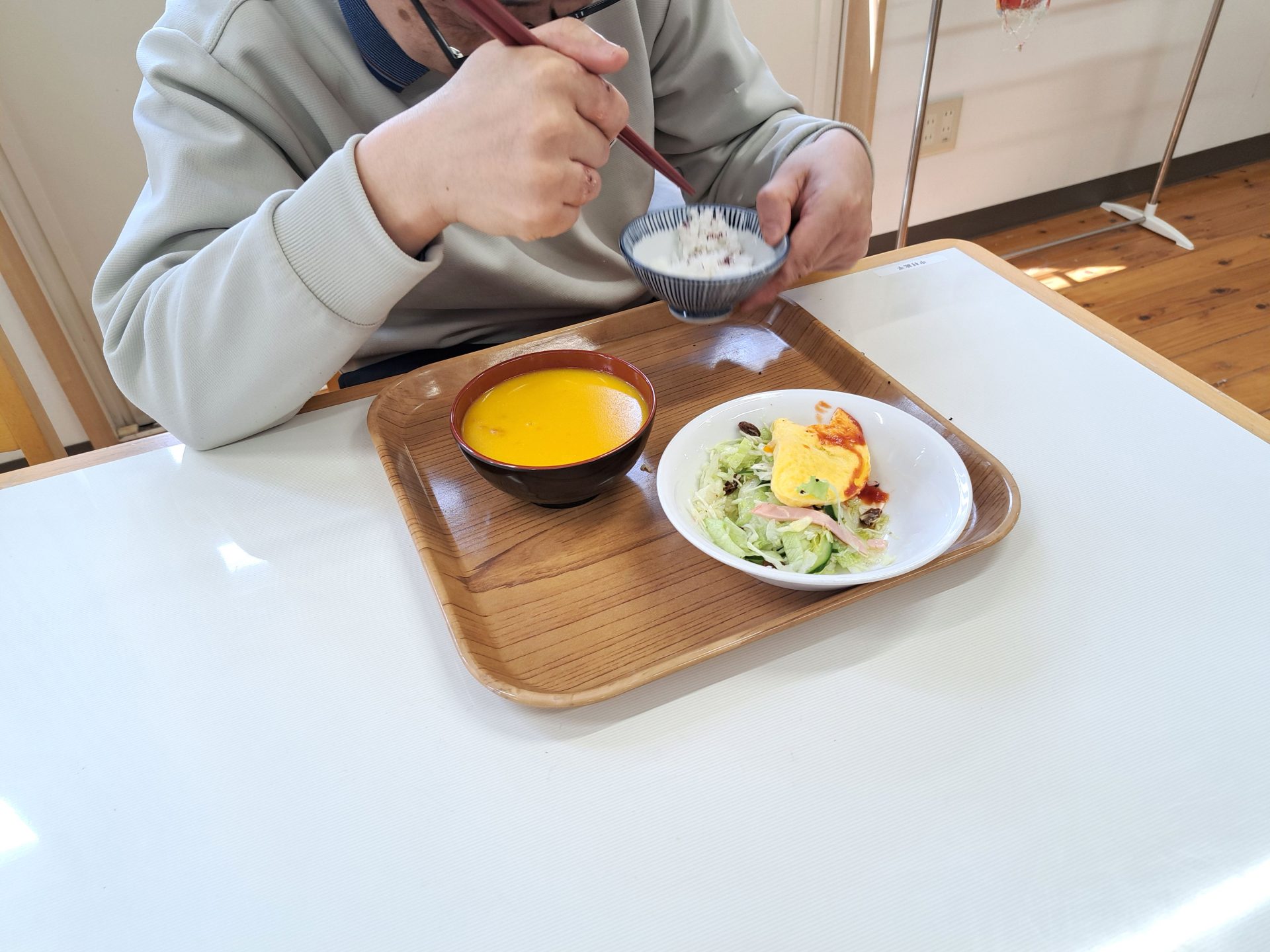 今日はオムレツとサラダ、パンプキンスープ♪