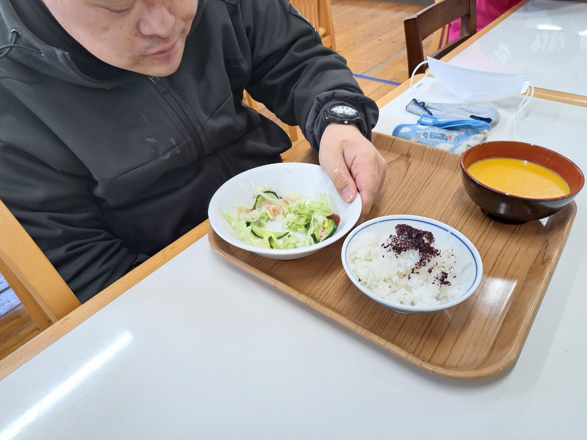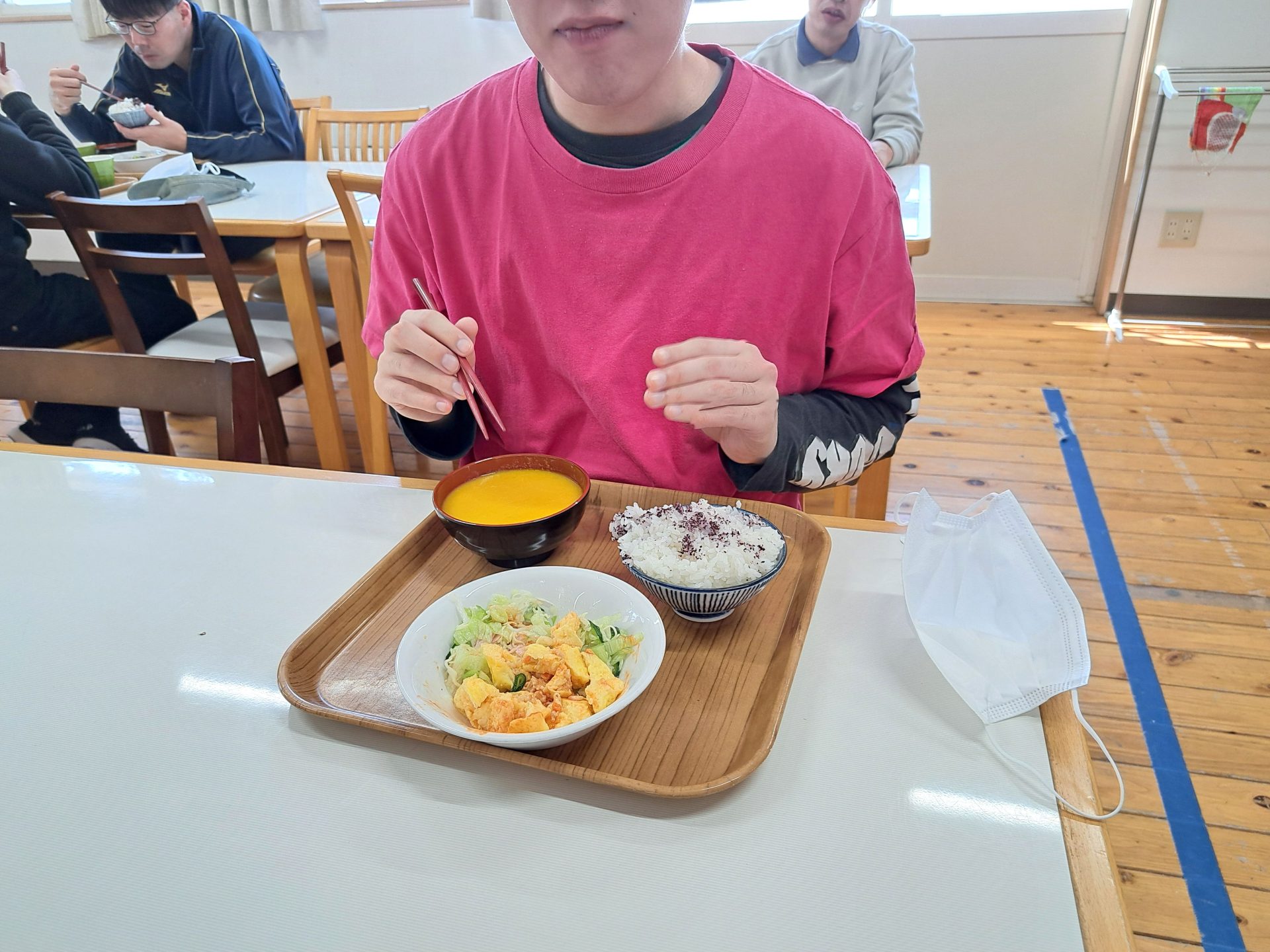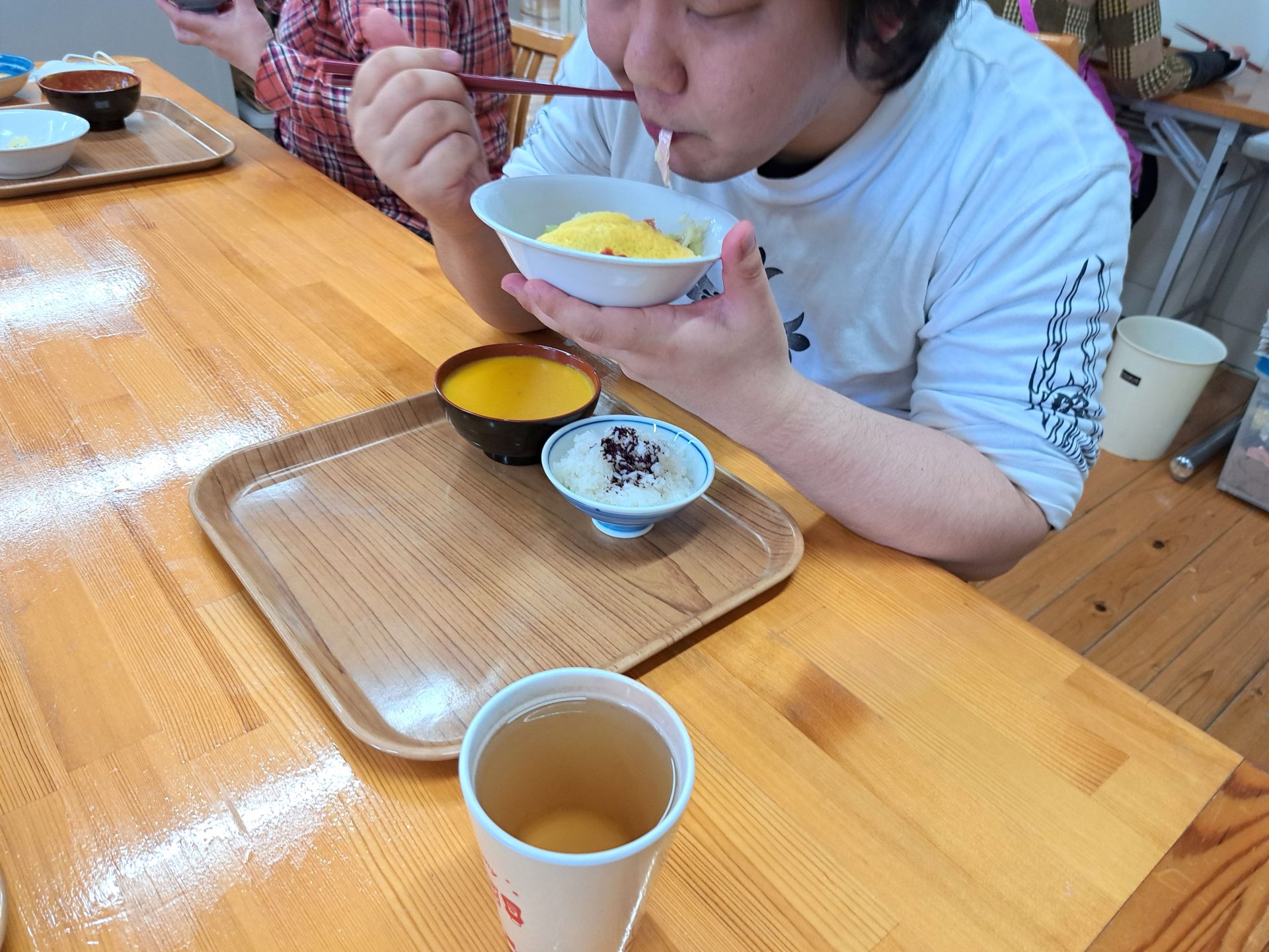 「は~い、給食デキマシタヨ~!」