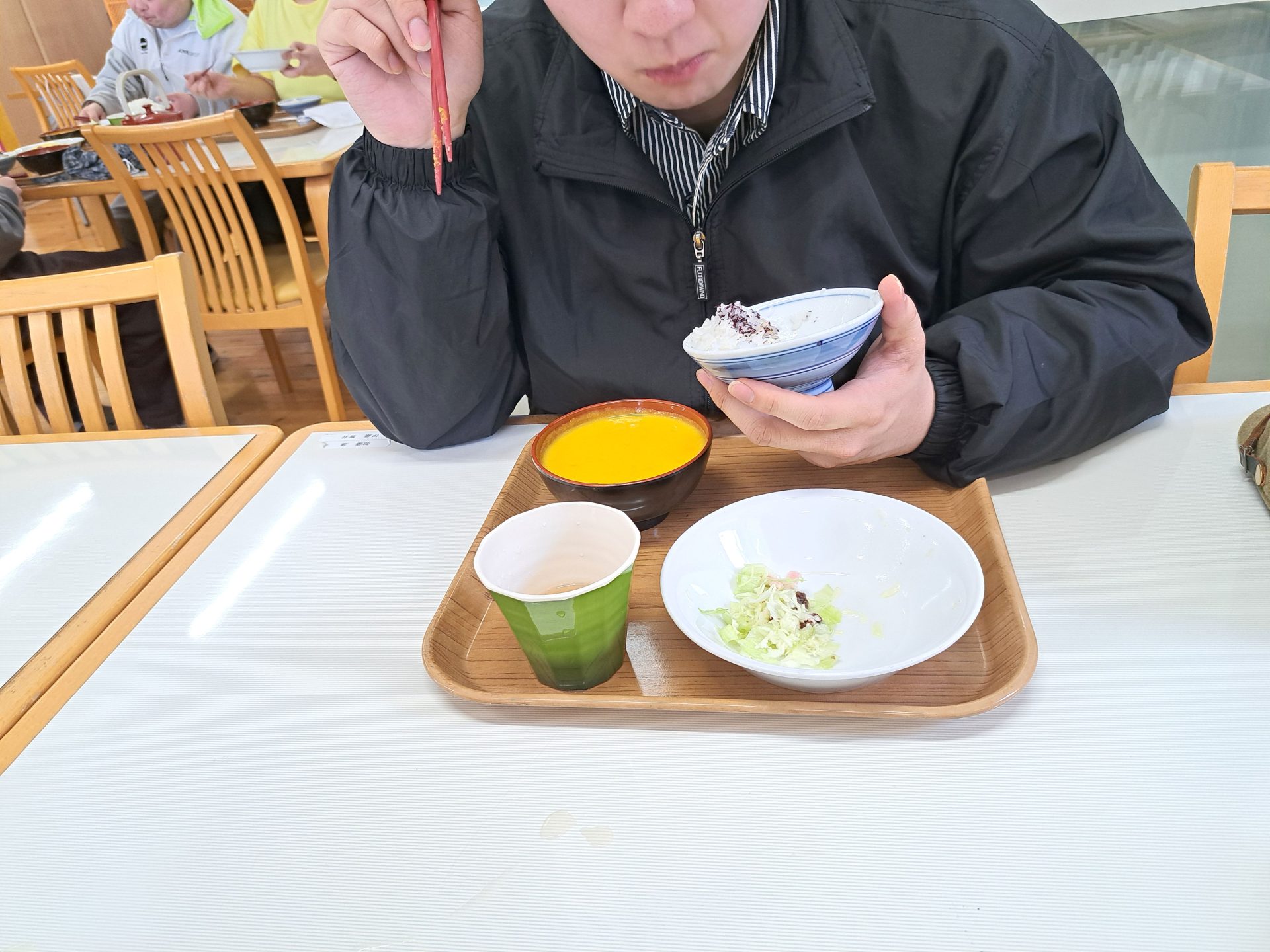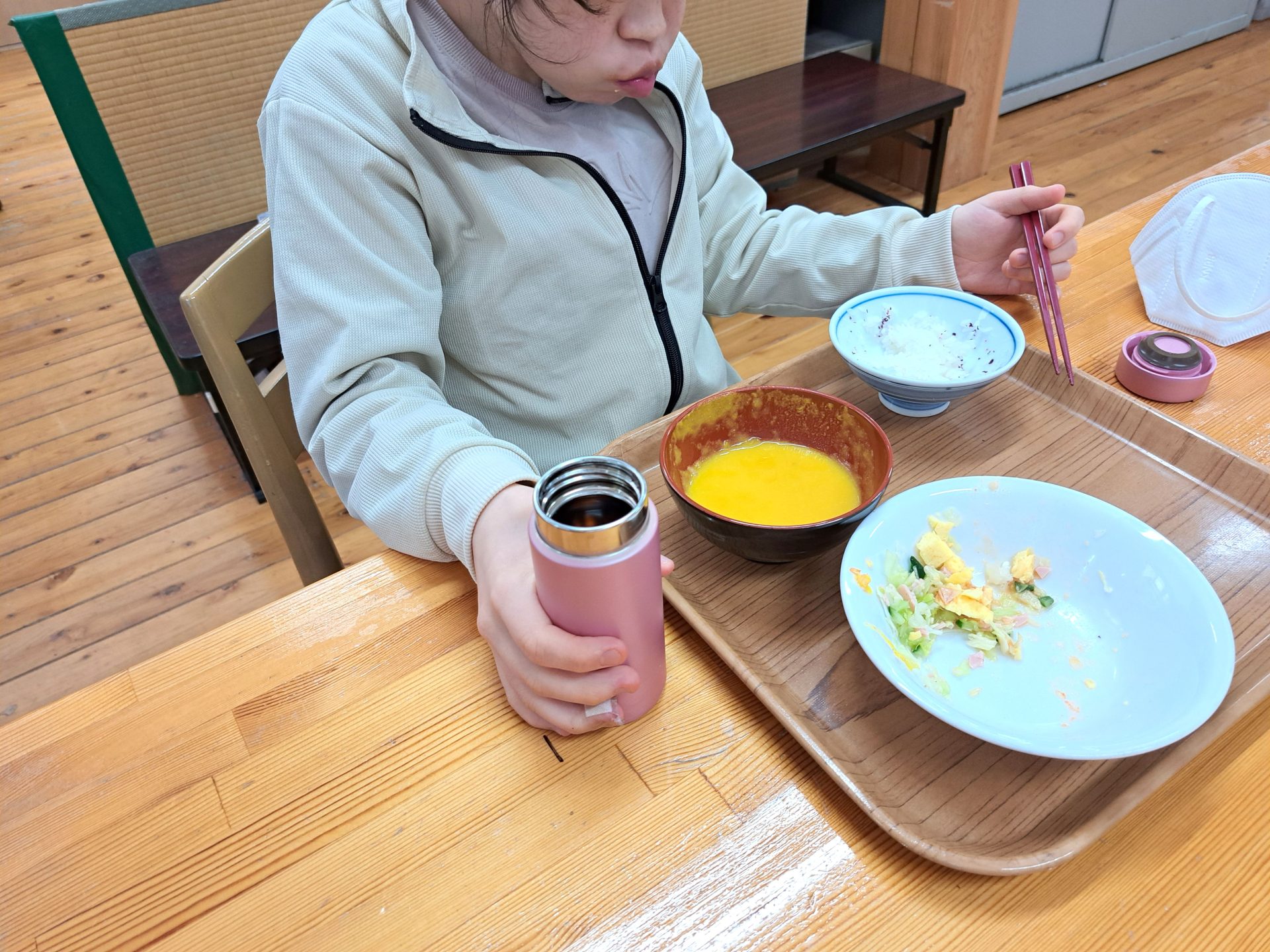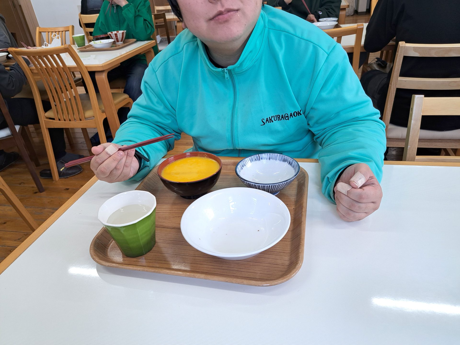 「は~い、給食デキマシタヨ~!」