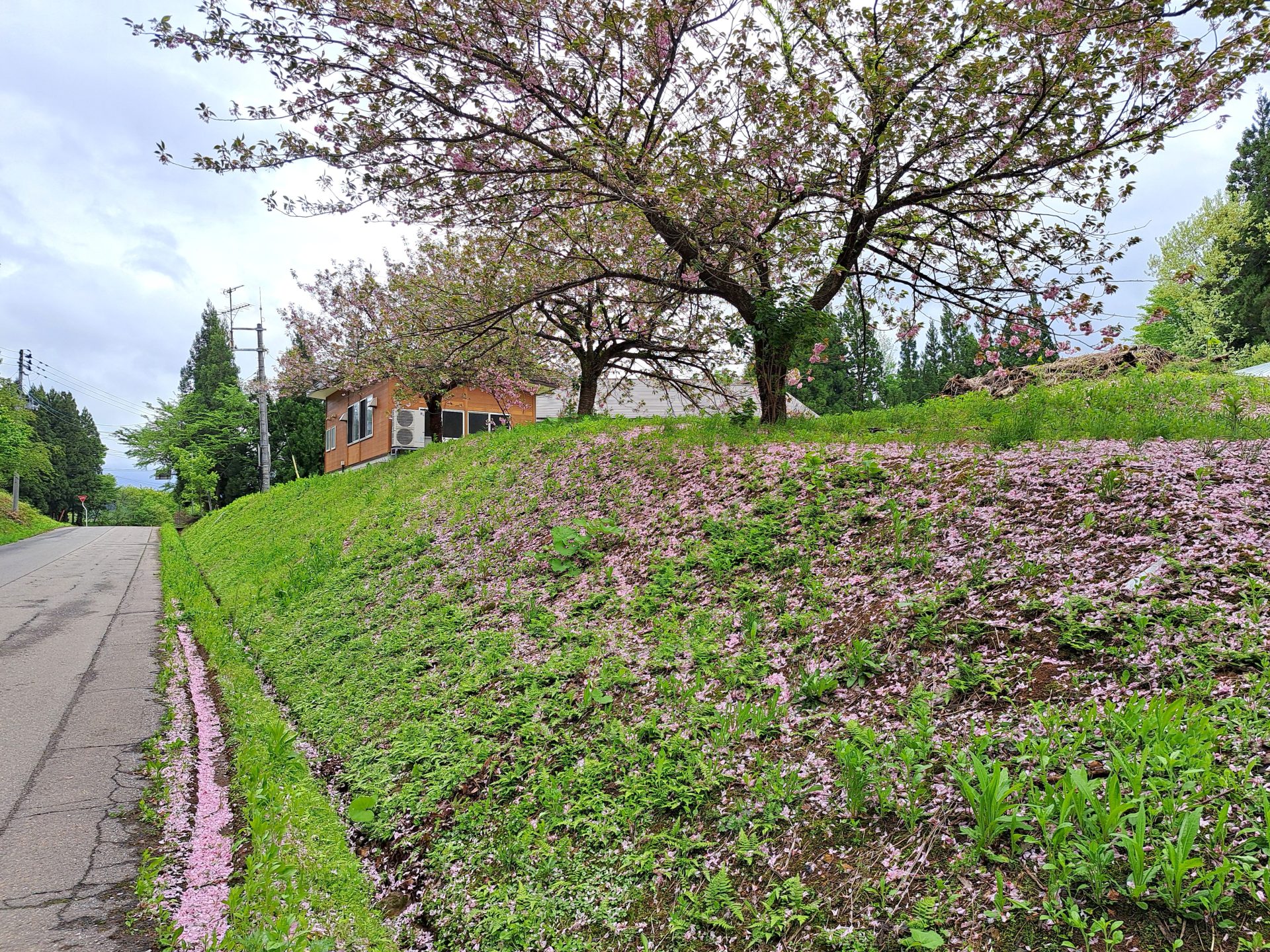 こちらは先週(金)のさくらが丘木工棟裏の八重桜です♪