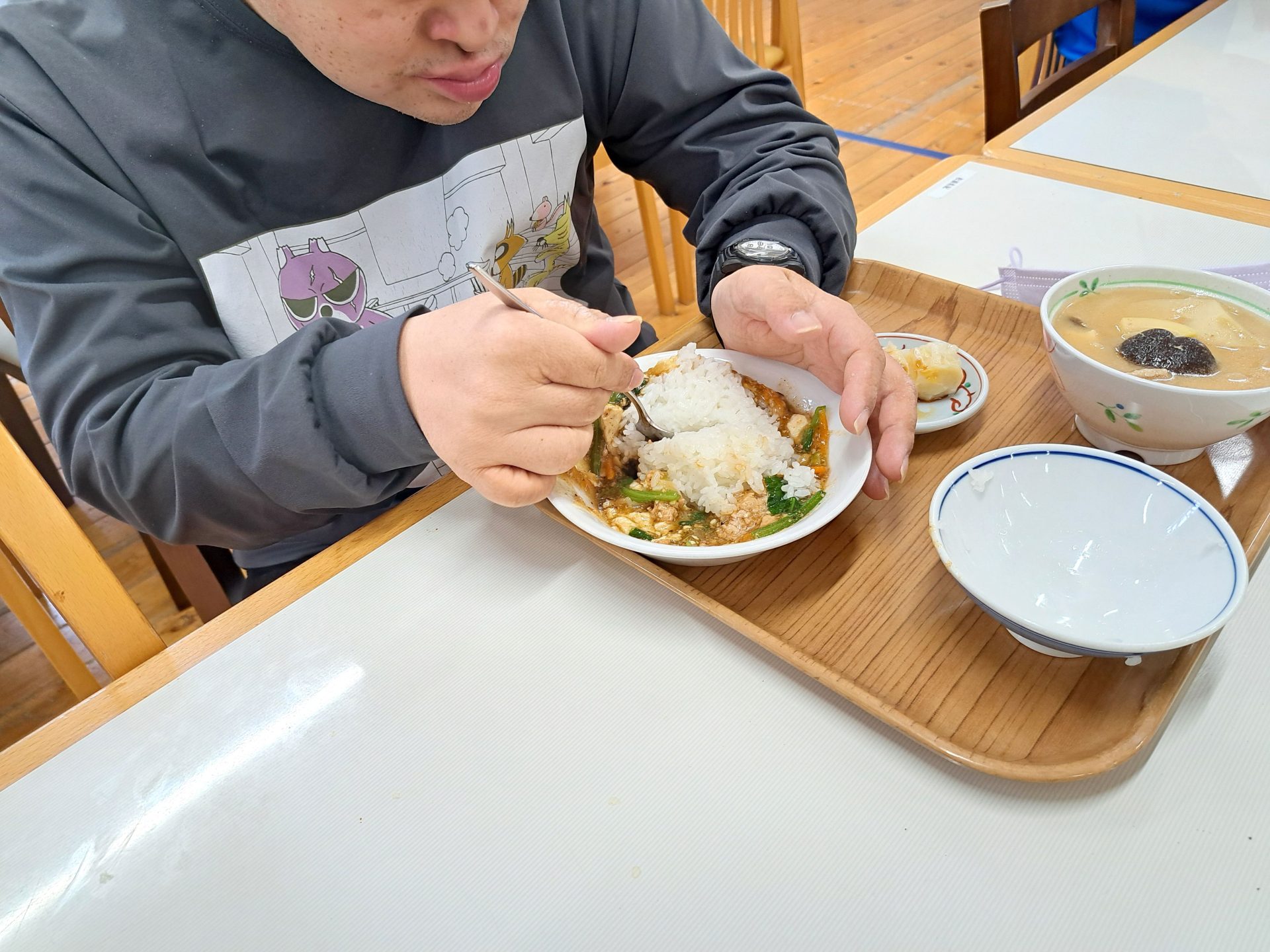 マーボー豆腐に孟宗汁とシュウマイって、すごいボリューミー!!