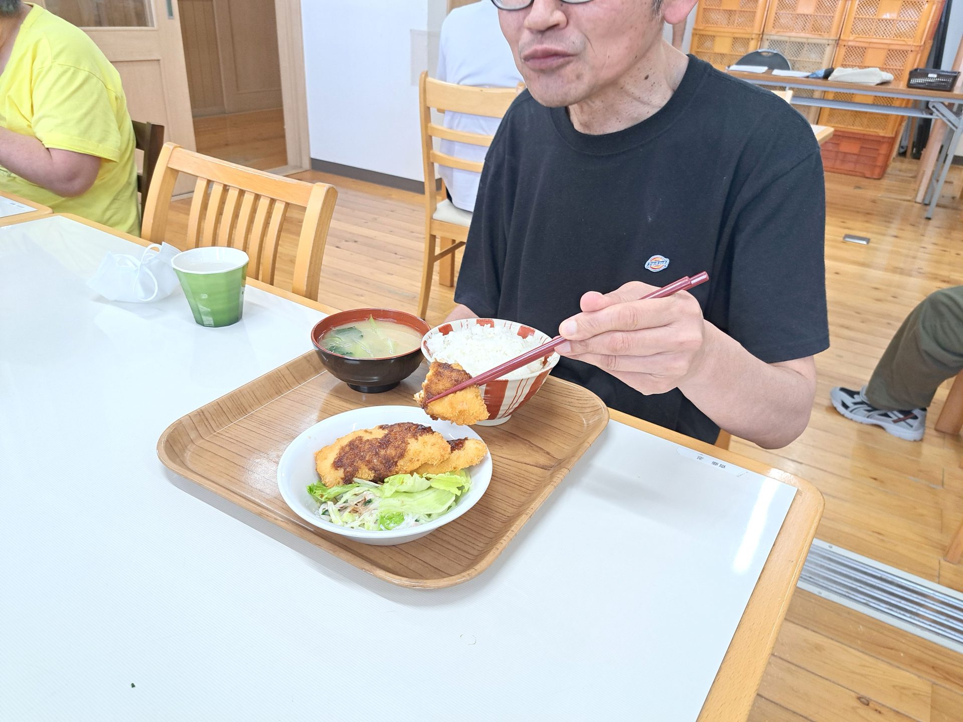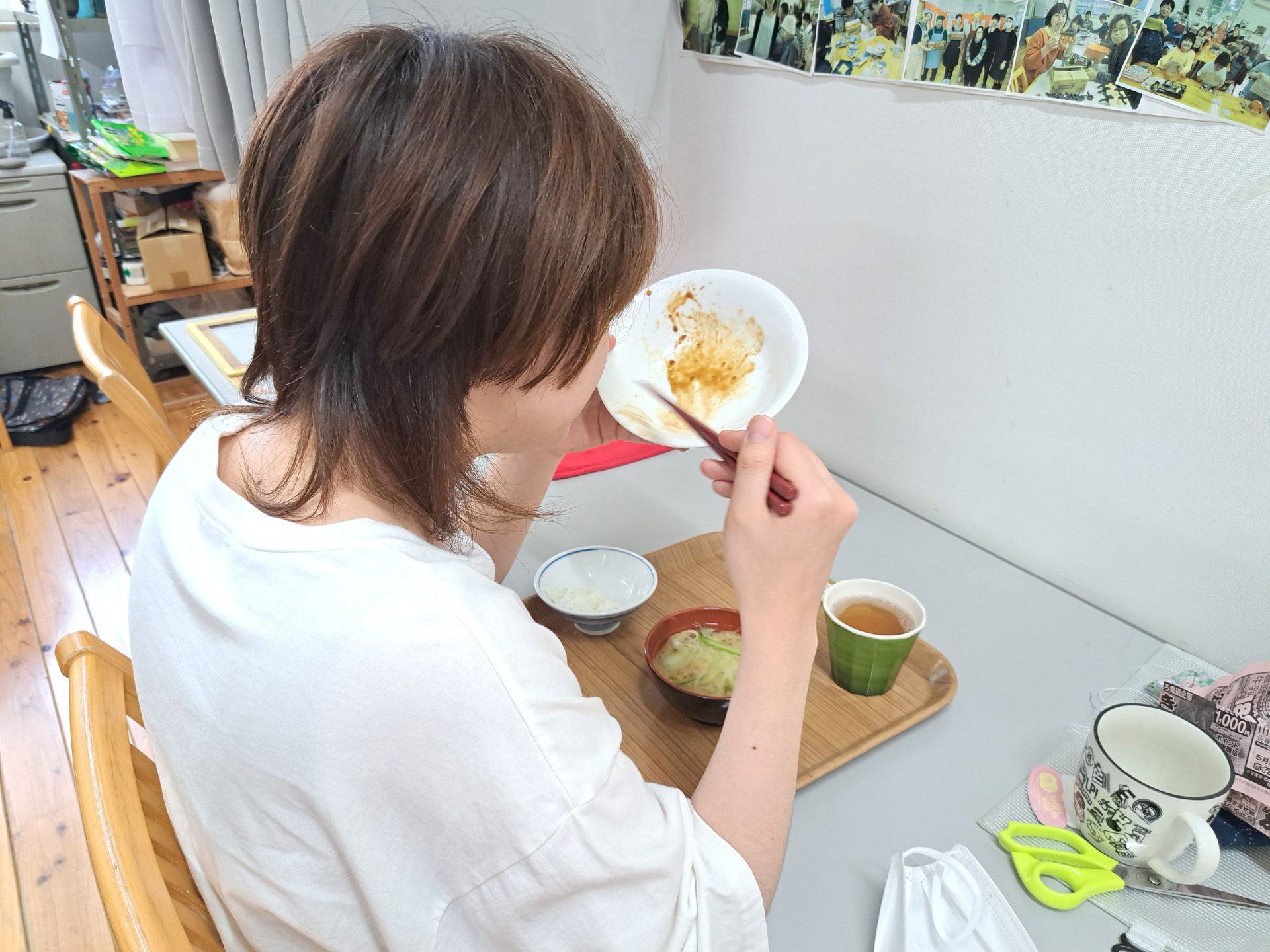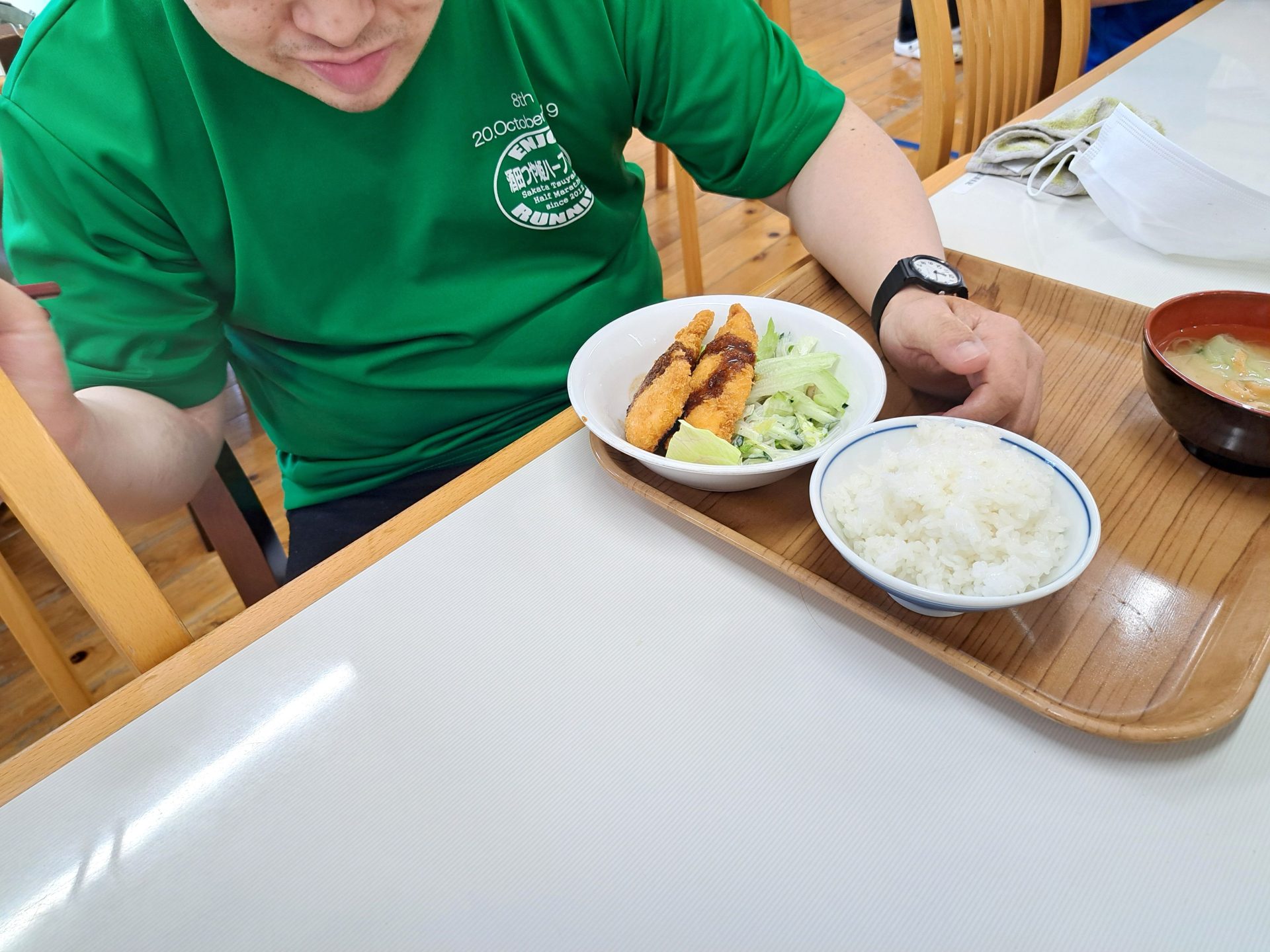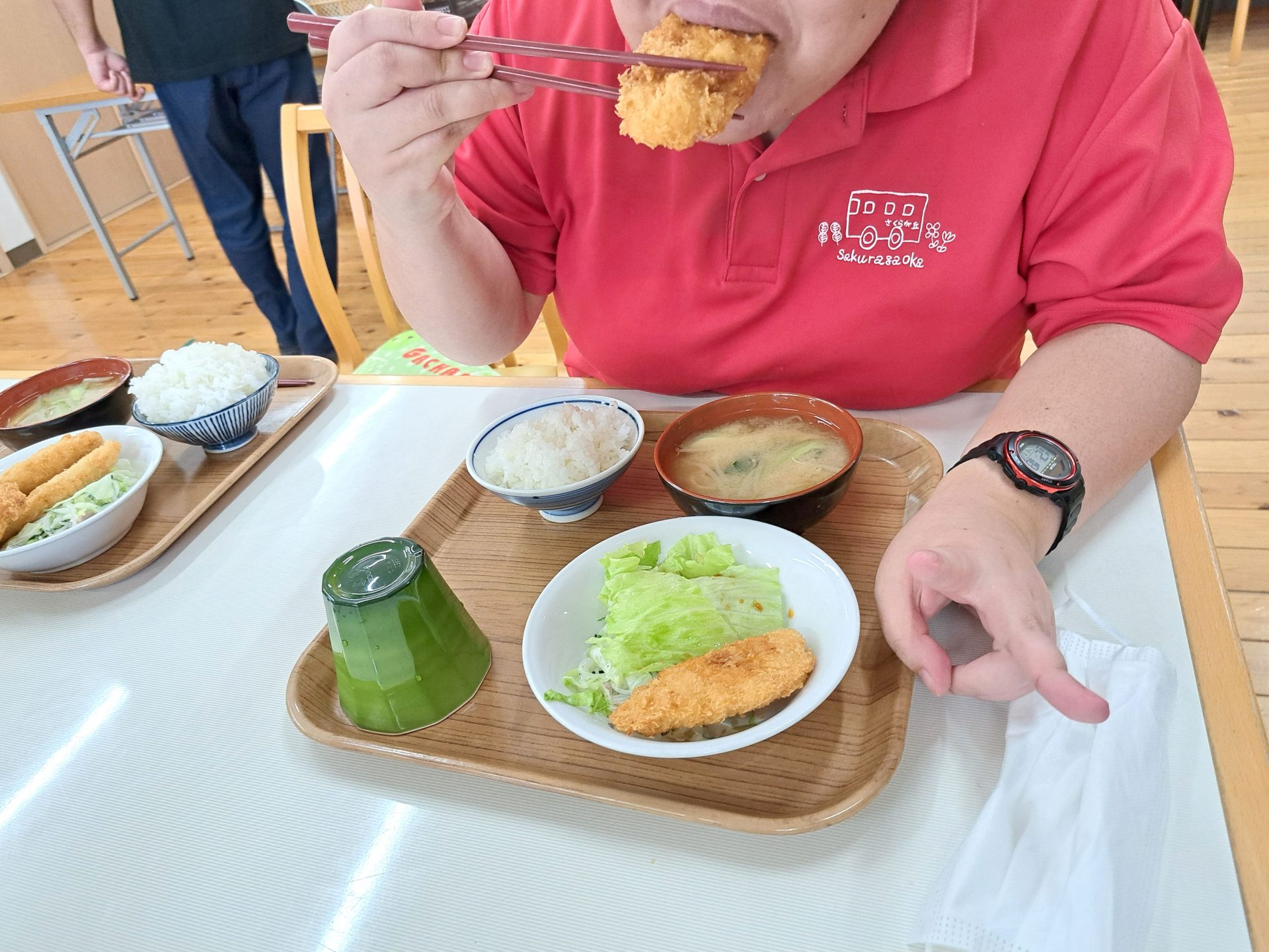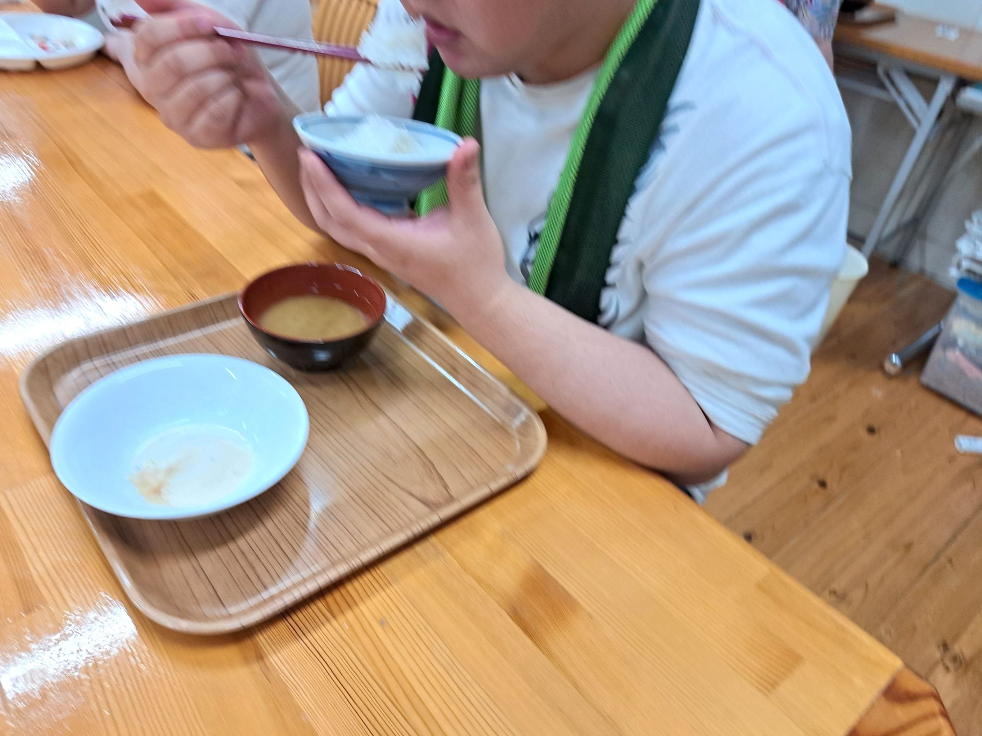 まだ緊張気味の実習生さん~給食いっぱい食べてね!