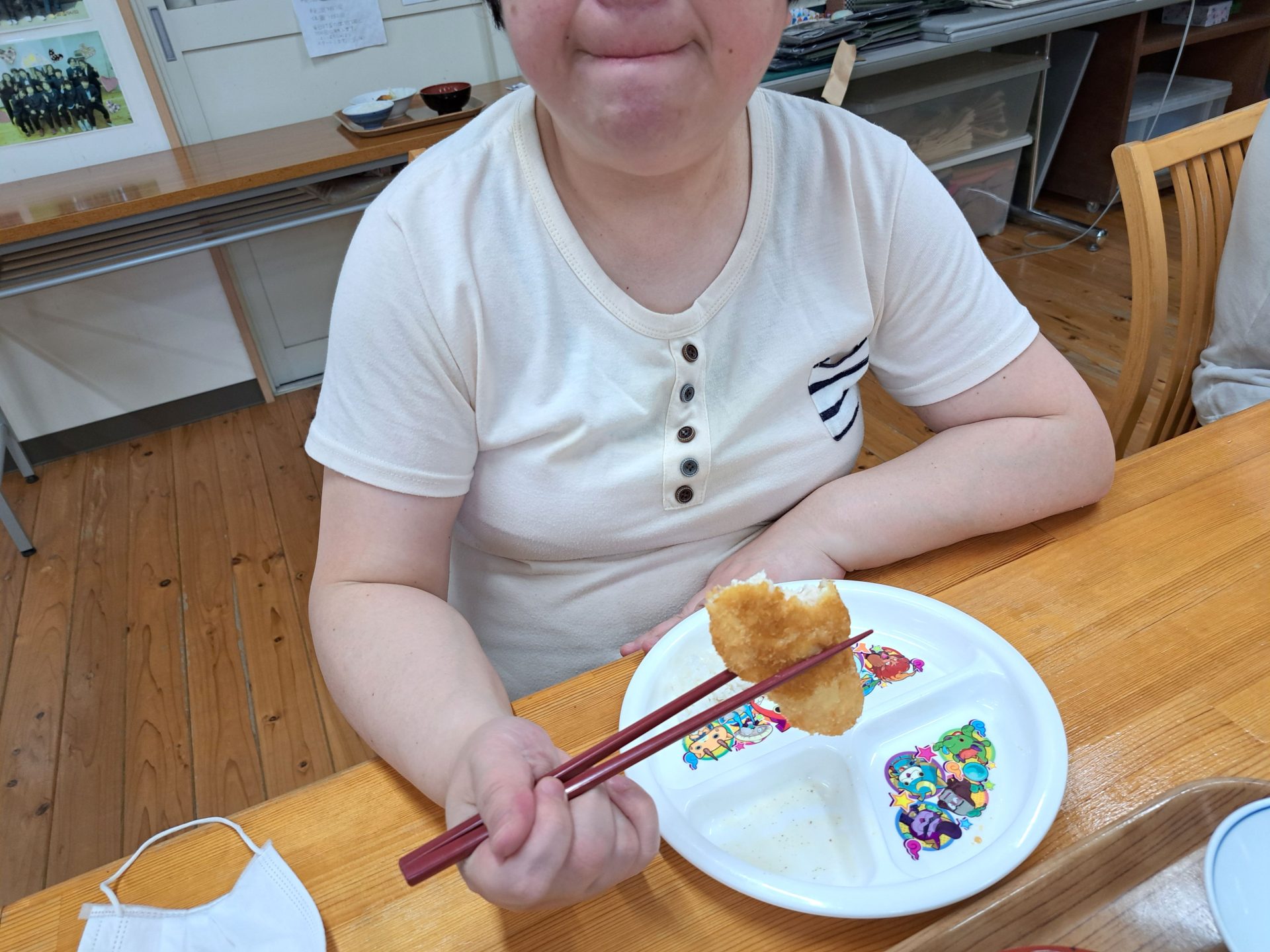 揚げ物のいい匂い~給食できましたよ~(´▽`*)