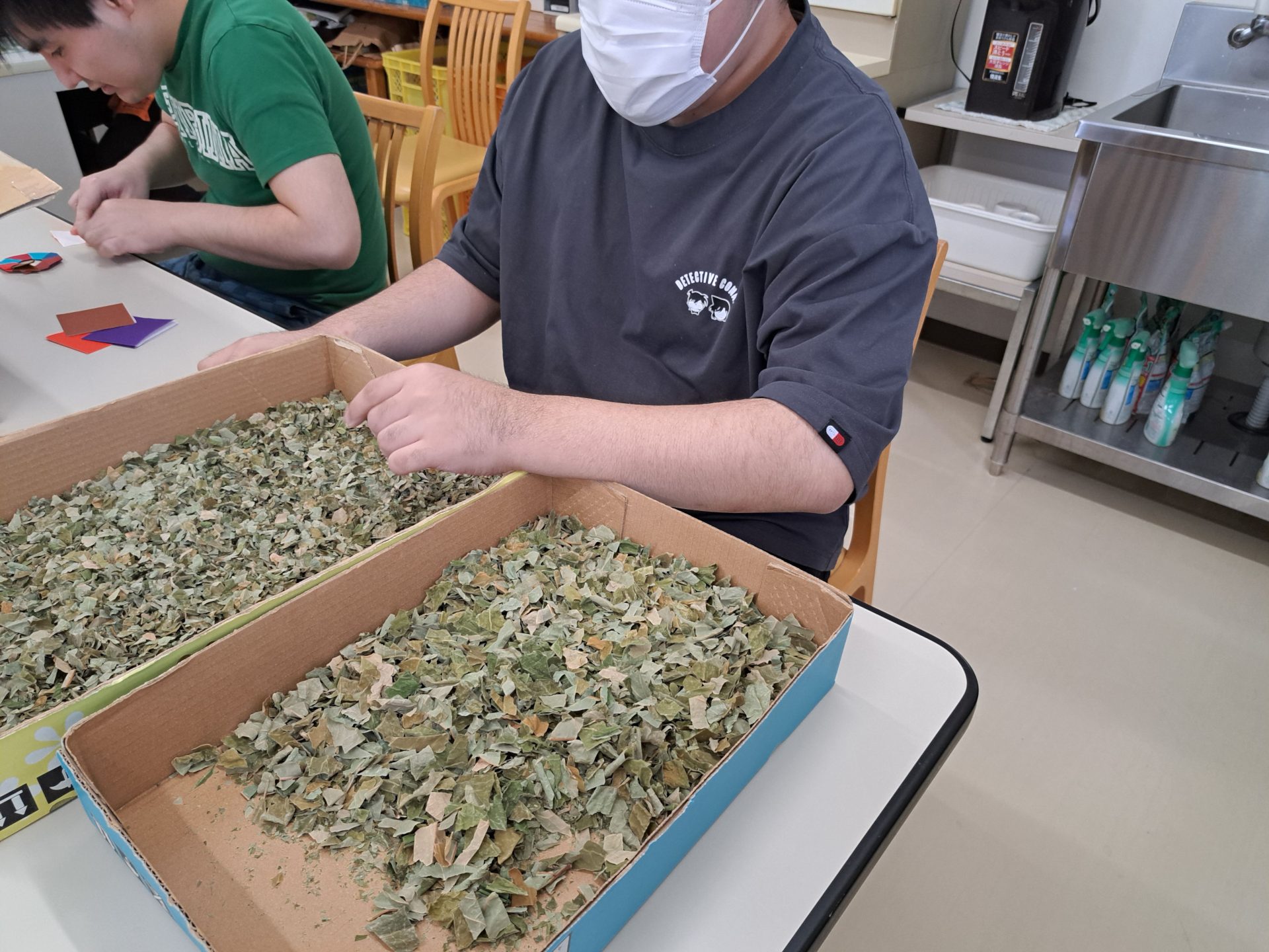 農芸班は枝豆ときくらげの同時作業~