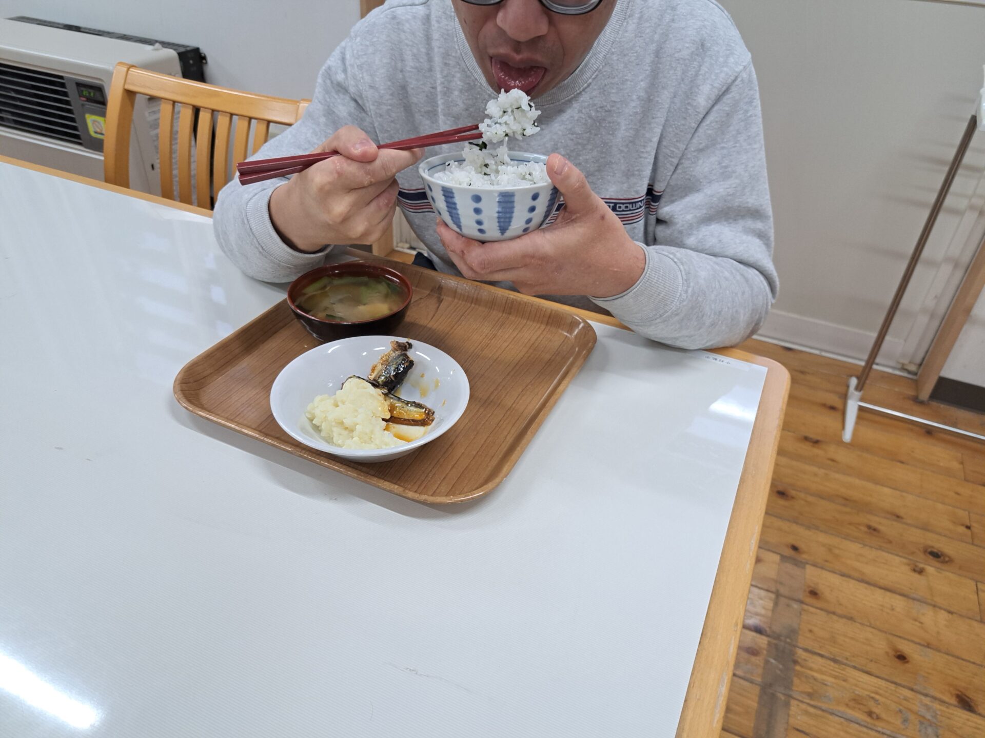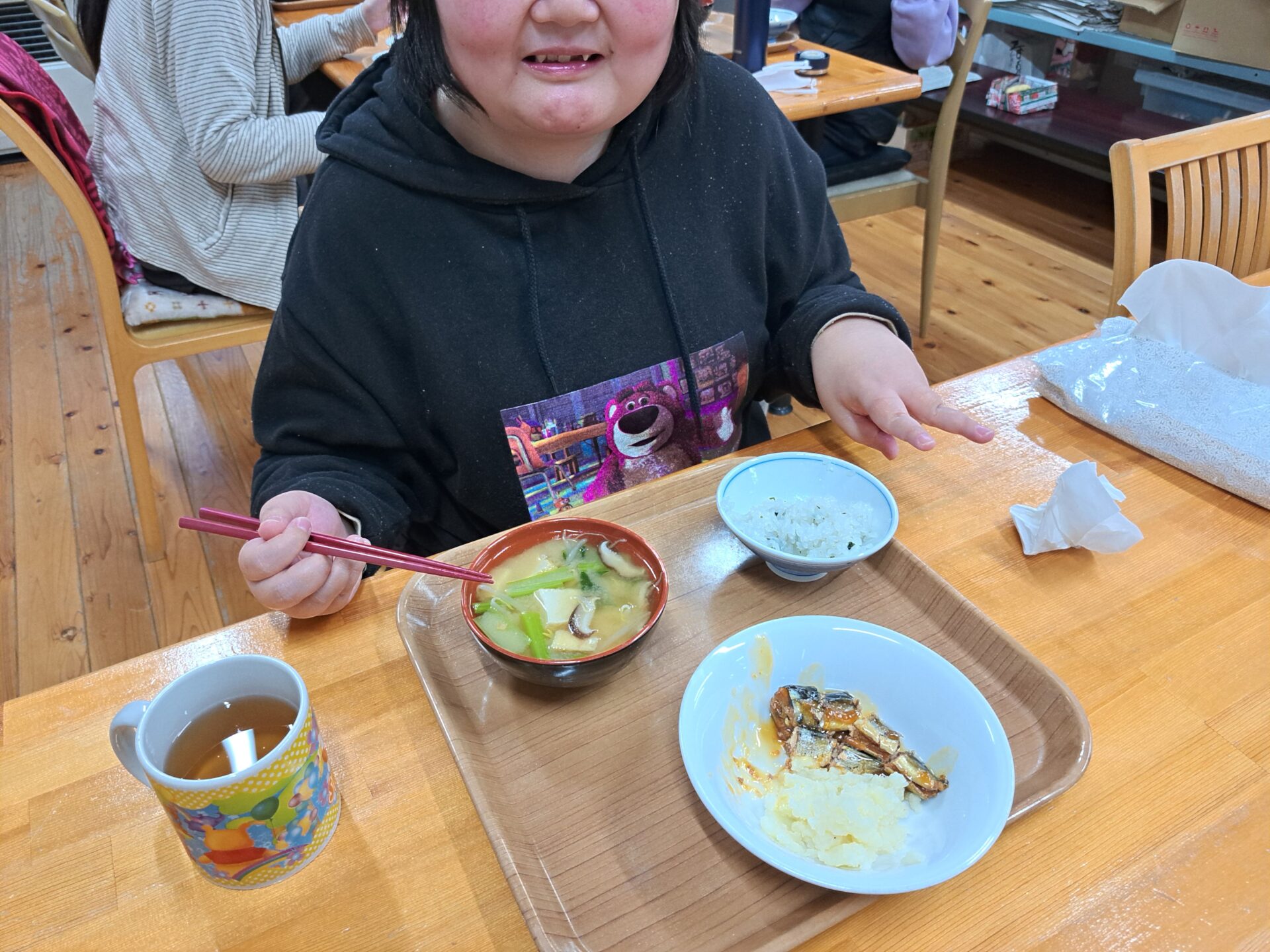 今日の給食は~魚の甘露煮でわかめご飯パクパク~♪
