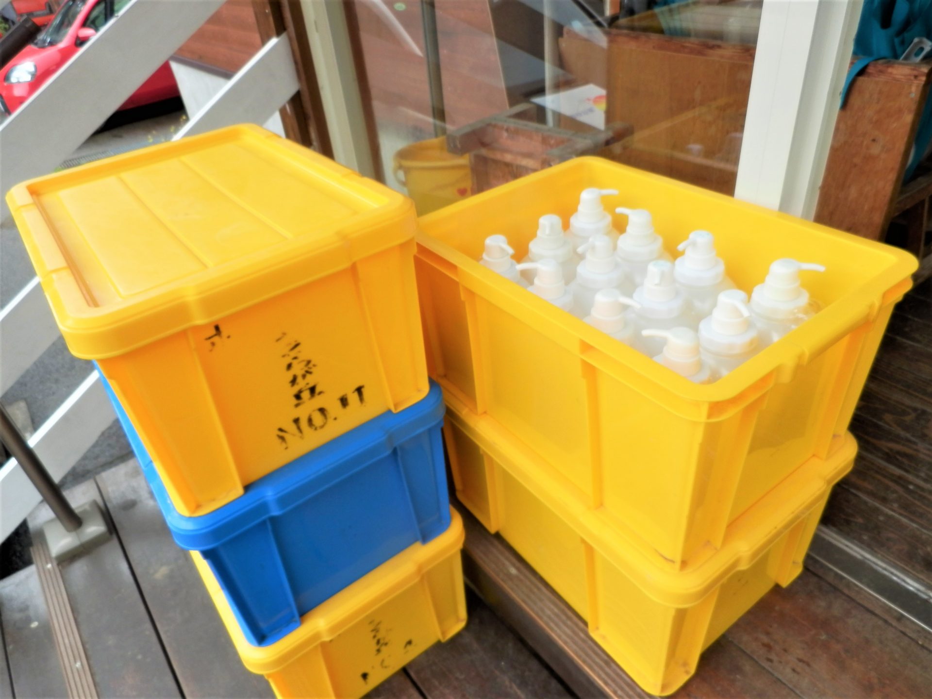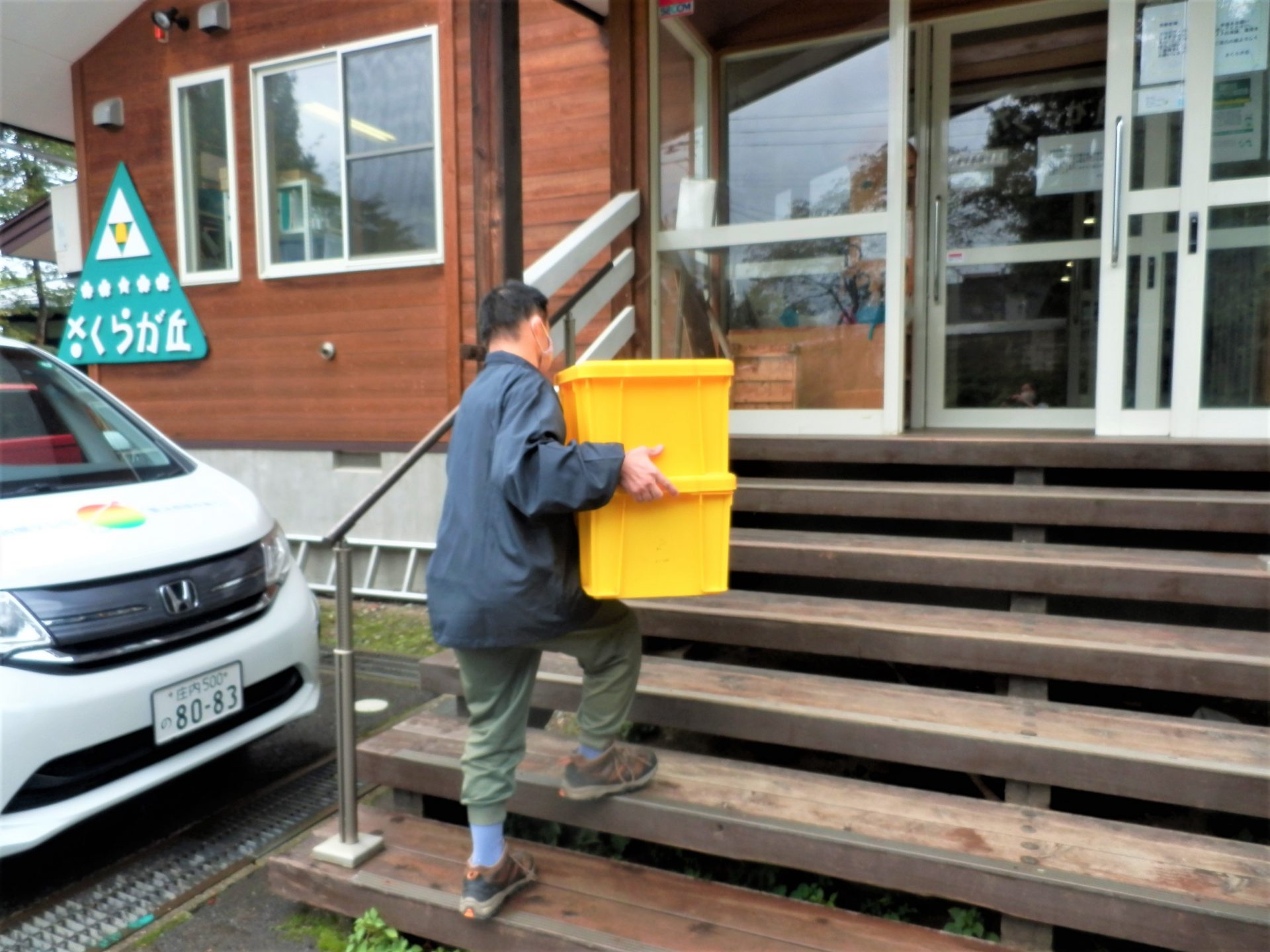 館内に戻る所で、「ゆぽか」さんへシャンプー納品の帰りの加工班と遭遇。