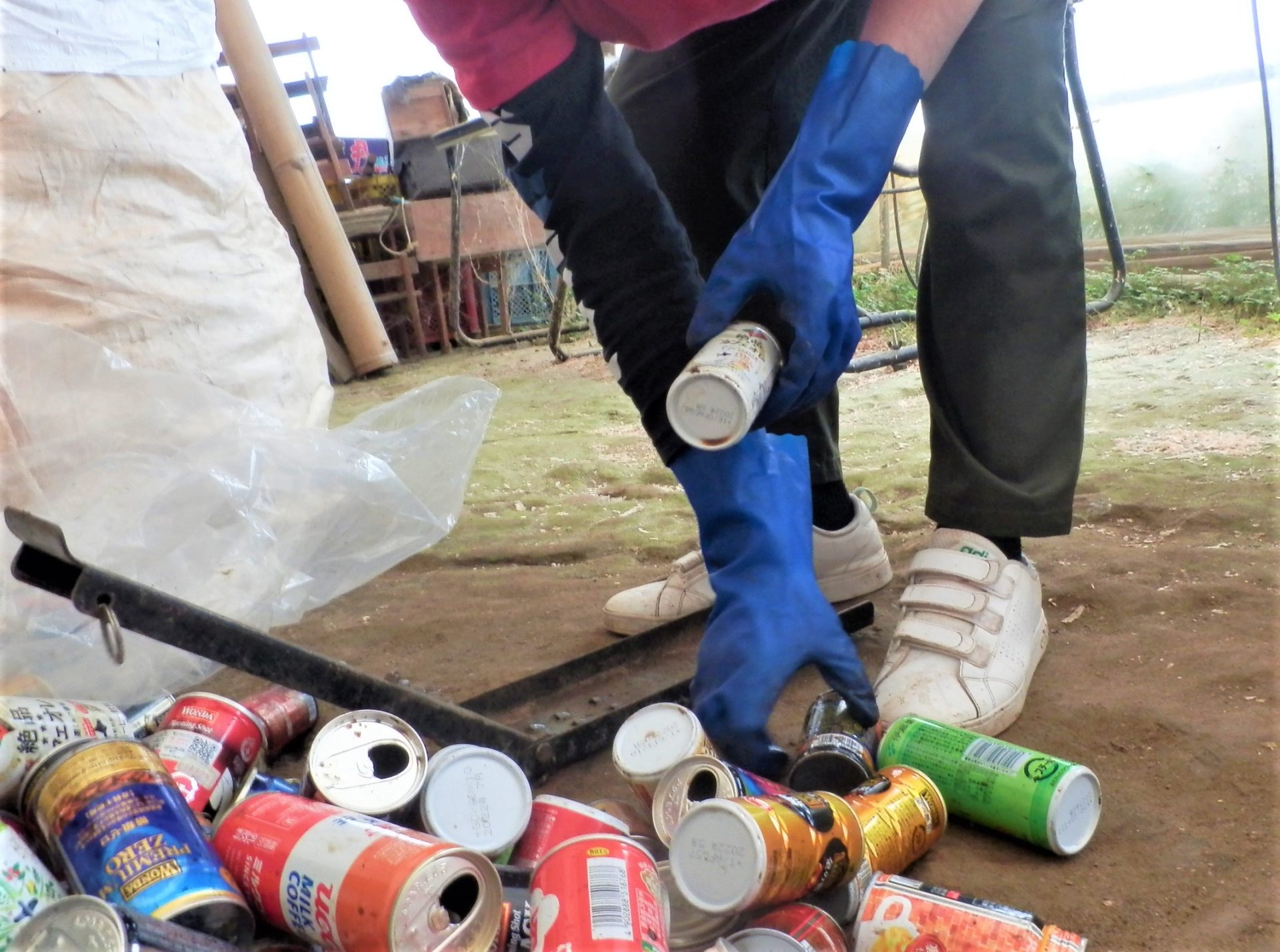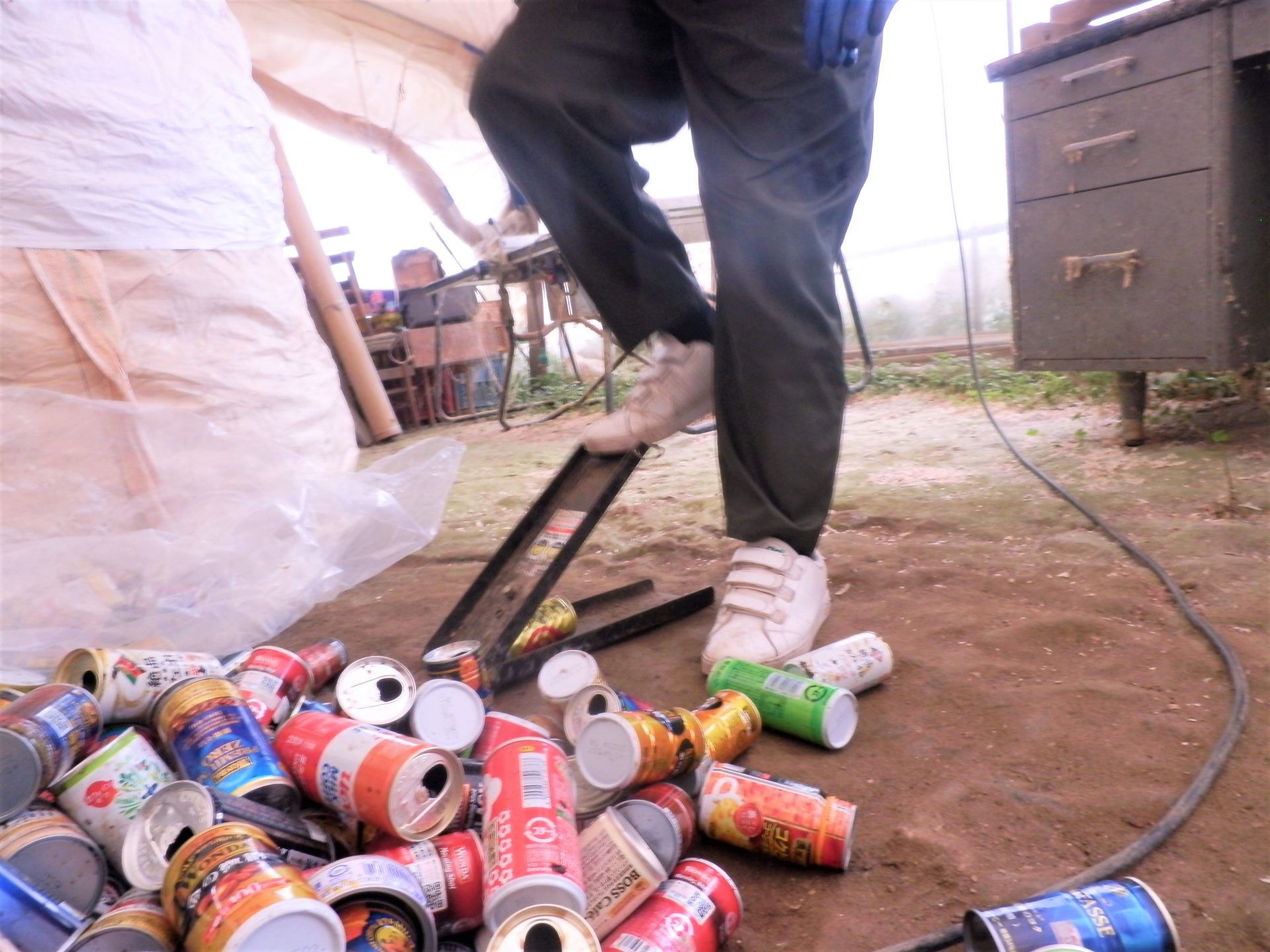 反対のハウスからは空き缶をつぶす音がしますね~(´▽`*)