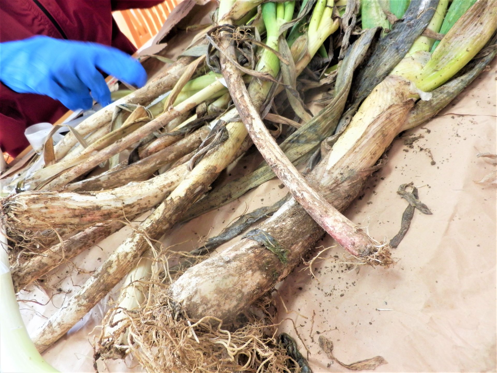 加工班と裁縫班の精鋭部隊がワツワツとネギの皮むきをがんばっています~!