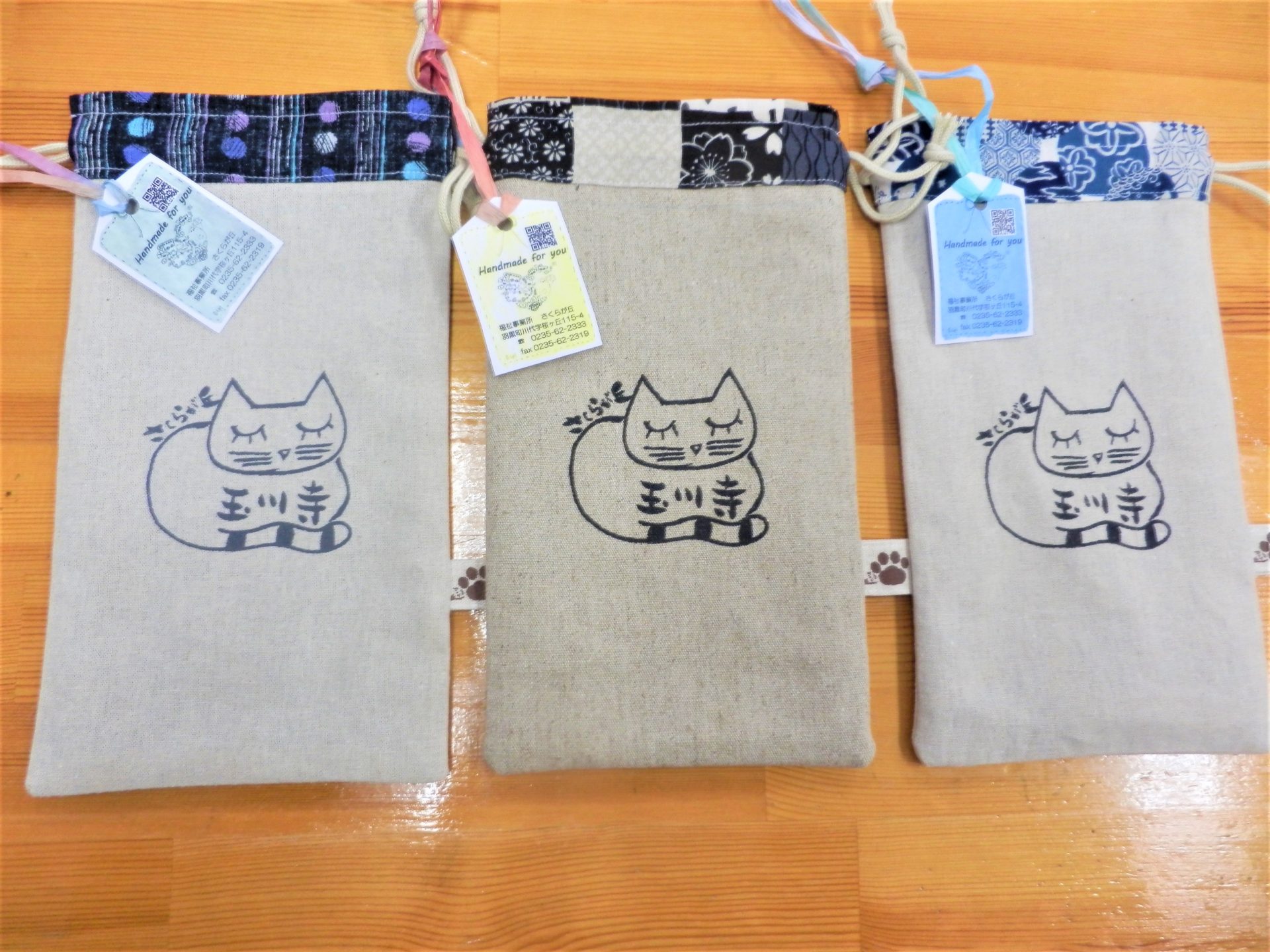 実は裁縫班の商品は1000円以下の商品がない!ということで、生産研修のアドバイザーの意見を取り入れて、手軽にお土産物として購入していただける低価格商品を開発したのです!その第1号がこちらの「てこちゃん巾着」(´▽`*)