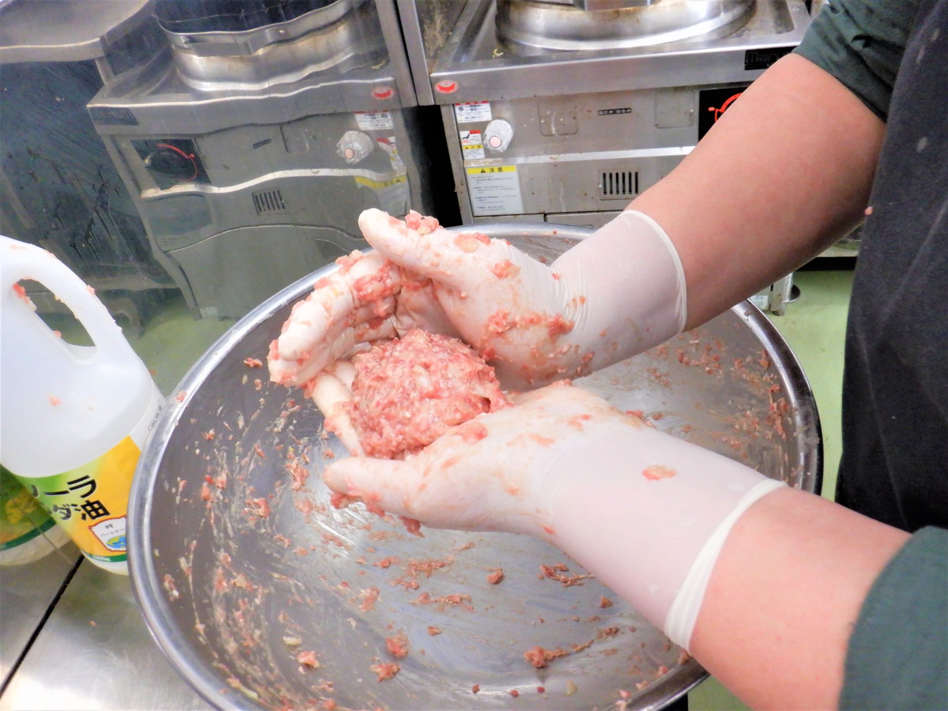 「パン粉とか入れると、カサ増しにはなるけど、モソモソとなるじゃん!お肉だけの方が美味しいんだよ!」