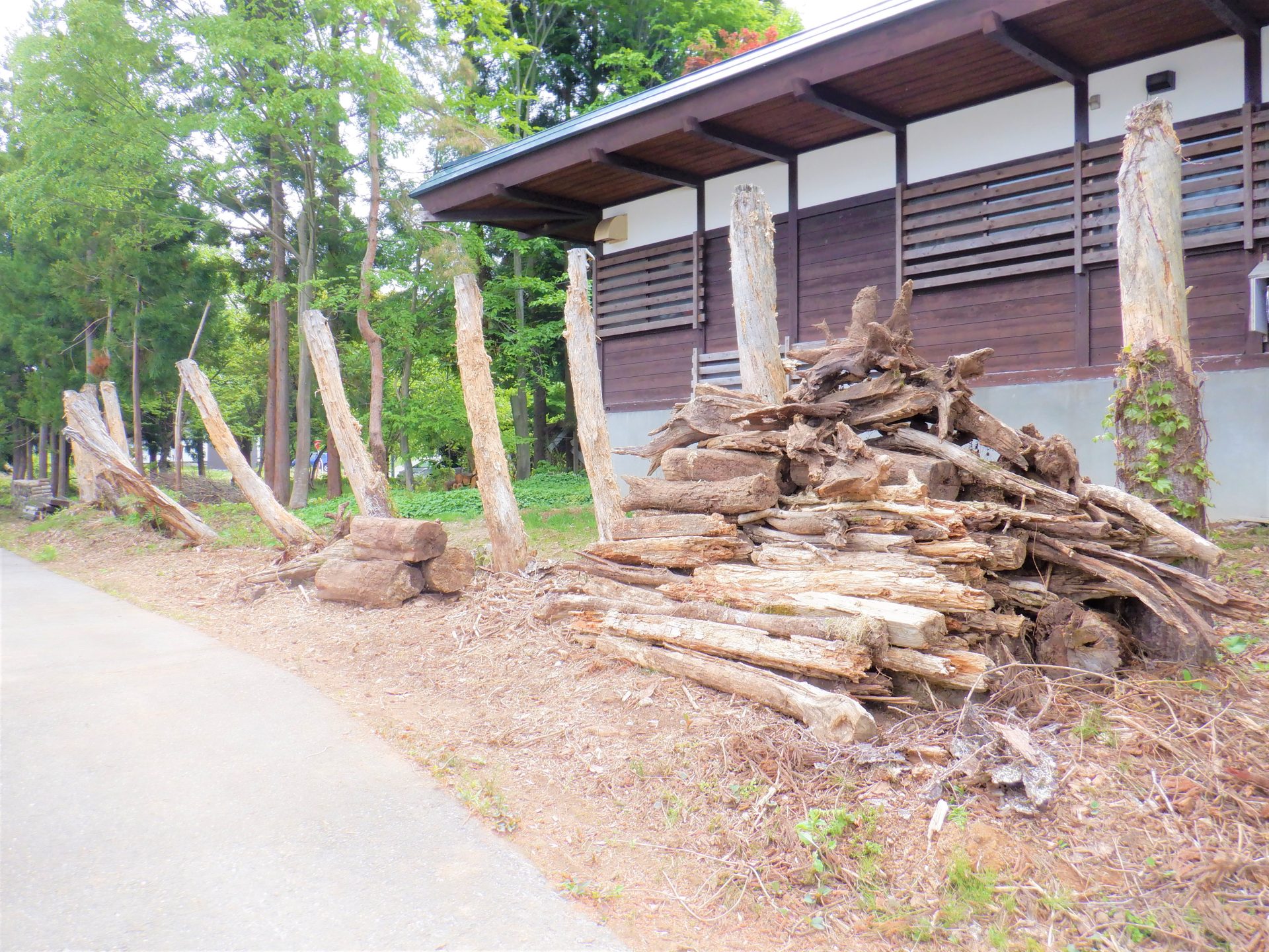 午後、外に出てみると…サヨナラした菌床が積まれた向こう側で…