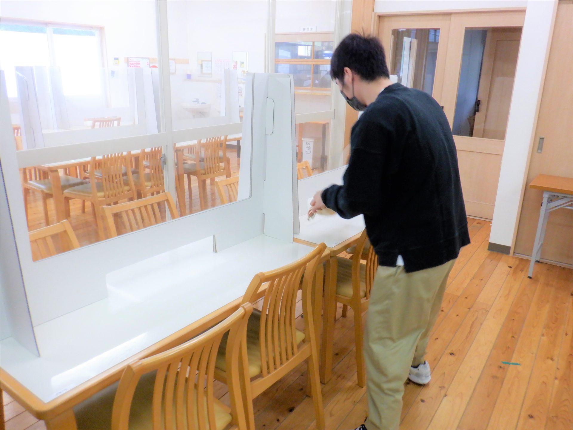 ちょっと早めに食堂の台ふき当番さんがやってきました~ごくろうさま!