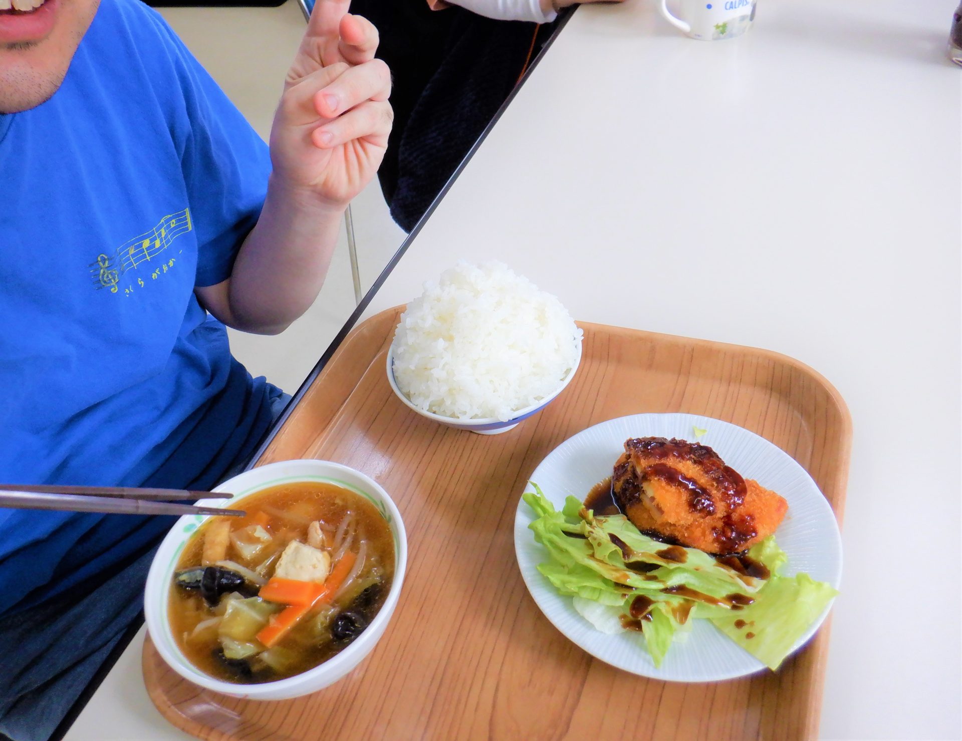 じゃ~ん!今日はハムカツけんちん汁のセットです~♡